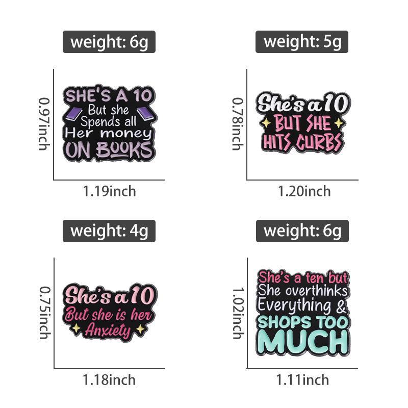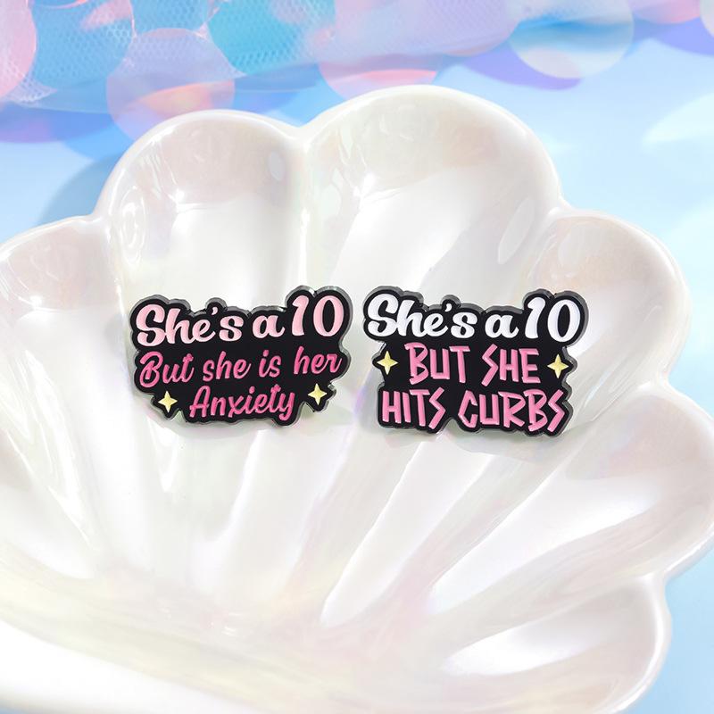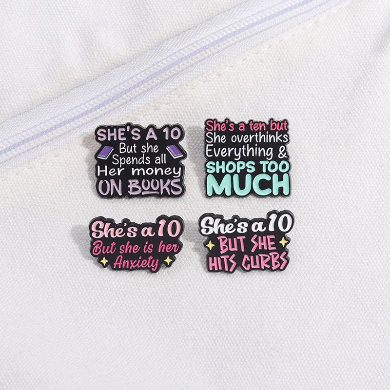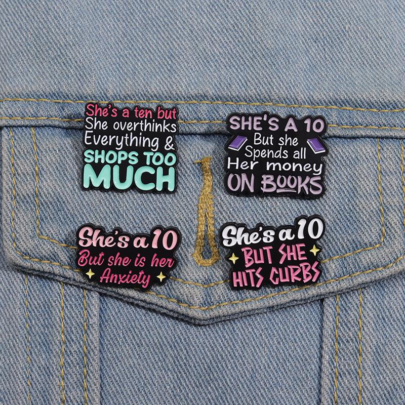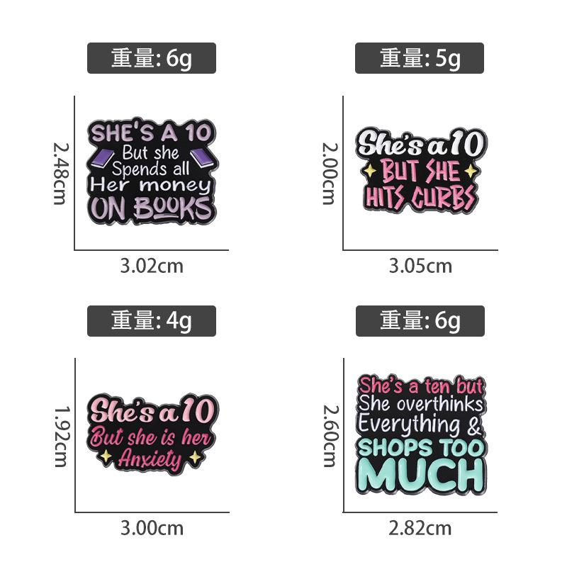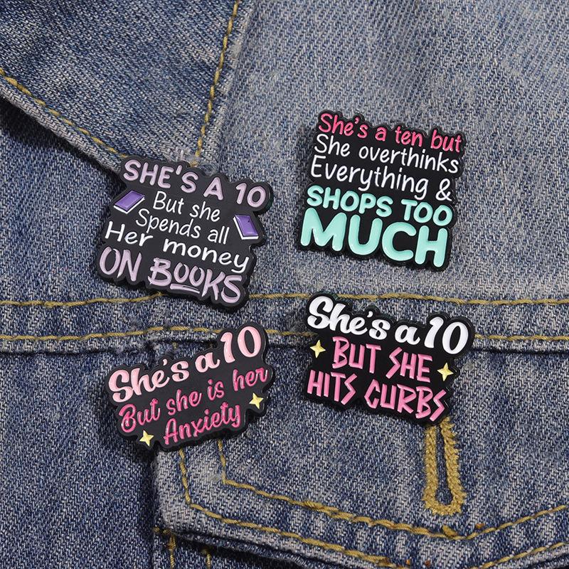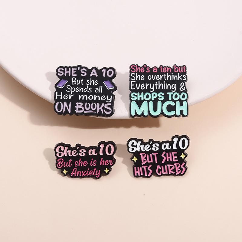 Broche de metal con letras en inglés de colores simples y transfronterizos, serie de 10 años, frase corta, insignia de aleación divertida y con personalidad