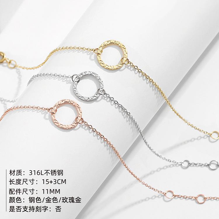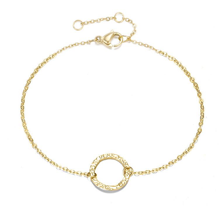 Pulsera Transfronteriza de Acero Inoxidable Moda Europea y Americana Simple Hueca Redonda Patrón Martillado Chapado en Oro de 18K Joyería al por Mayor