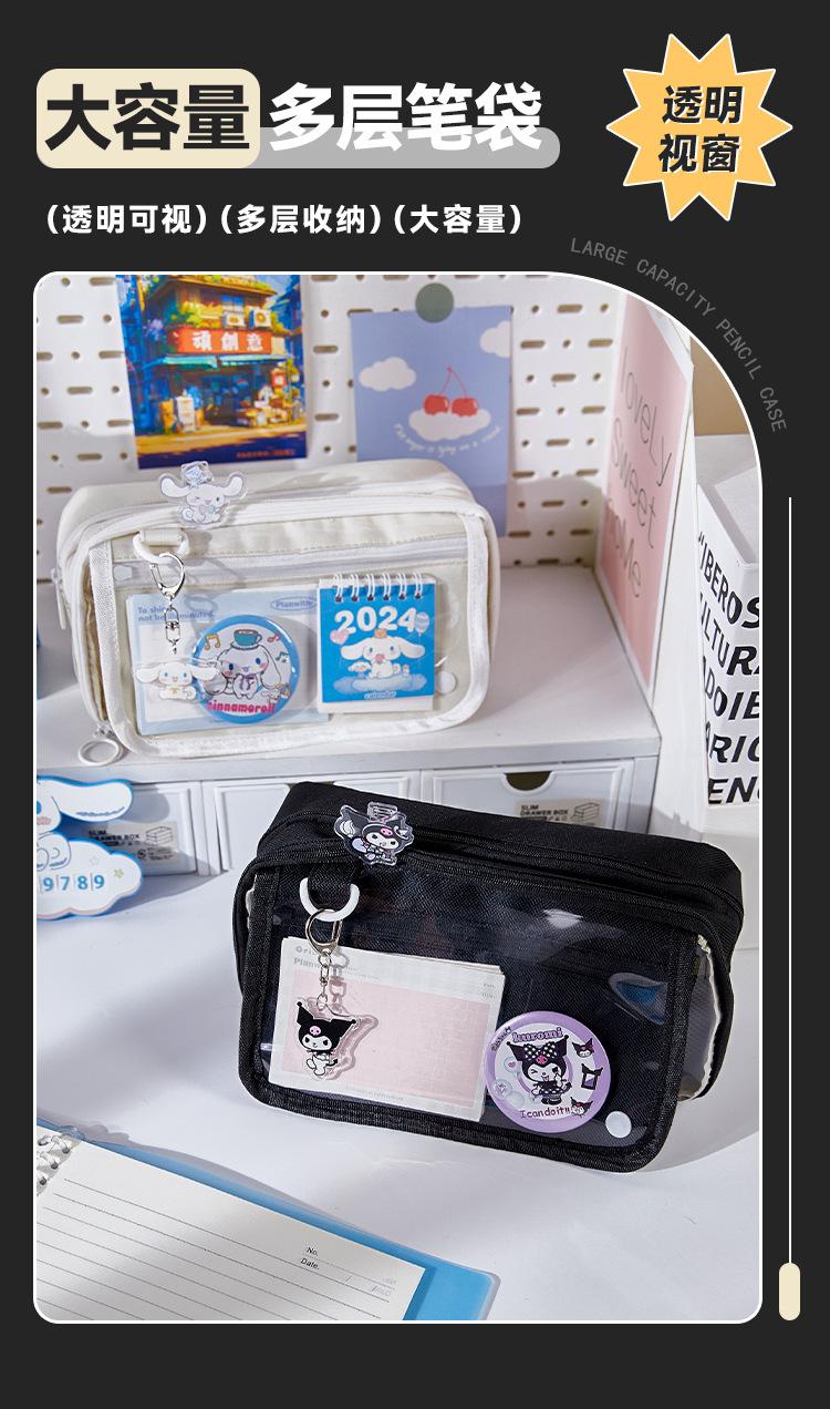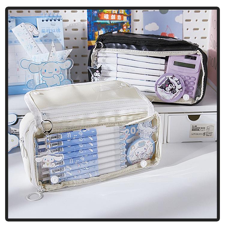 White pencil case + small accessories, Black pencil case + small accessories, White pencil case [large capacit...