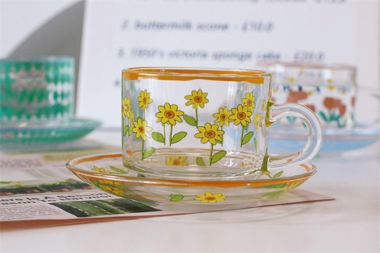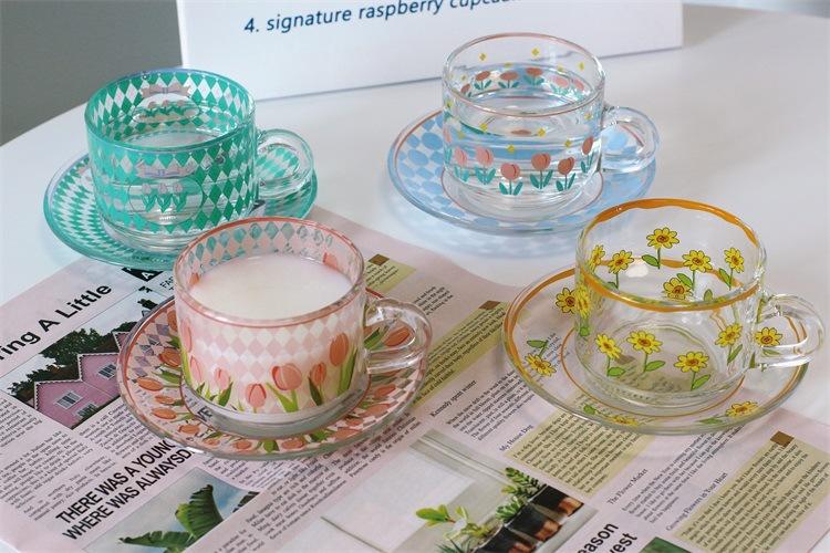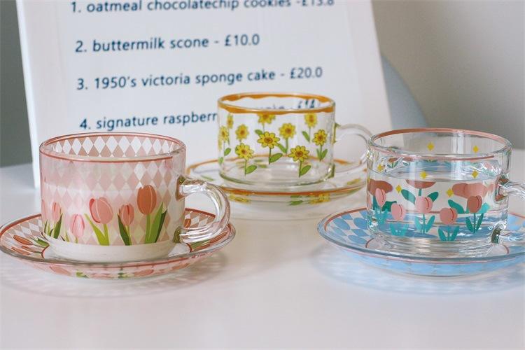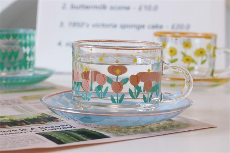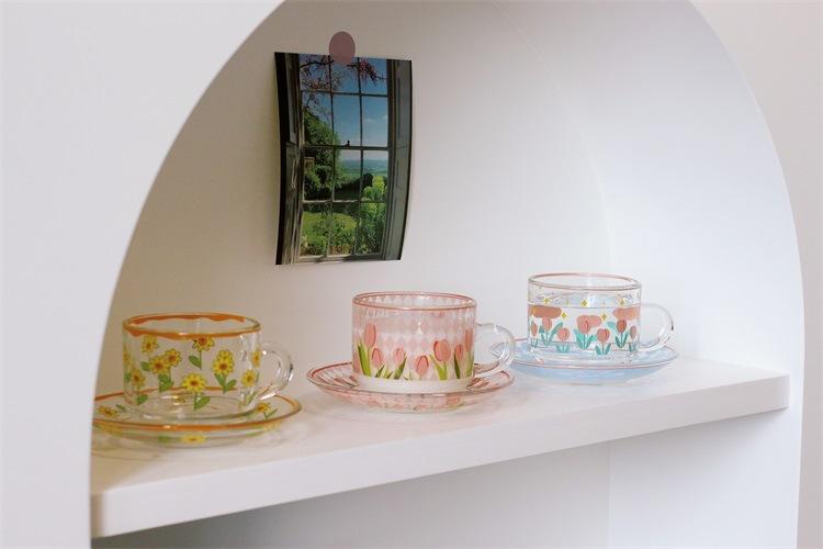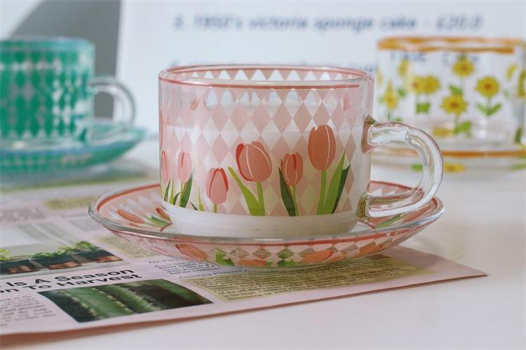 Taza de tulipán al rojo vivo de red, taza de vidrio creativa, taza de café resistente a altas temperaturas de alto valor de color para el hogar, taza de desayuno, venta al por mayor