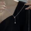 Collar de acero de titanio con borlas de perlas de lujo ligero y moderno para mujer, cadena de clavícula en forma de Y de nicho de lujo ligero, nuevo y ajustable de alta calidad.