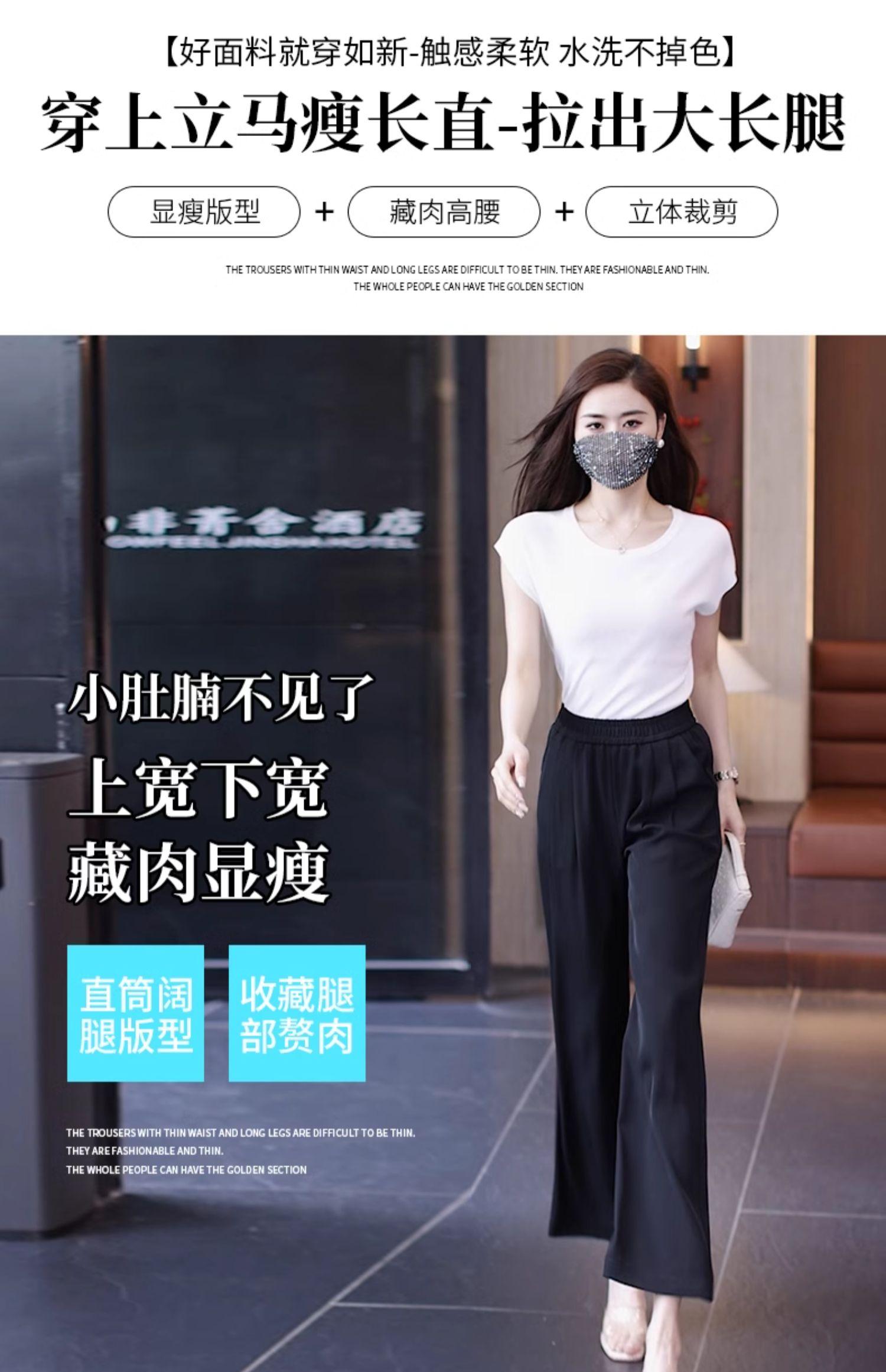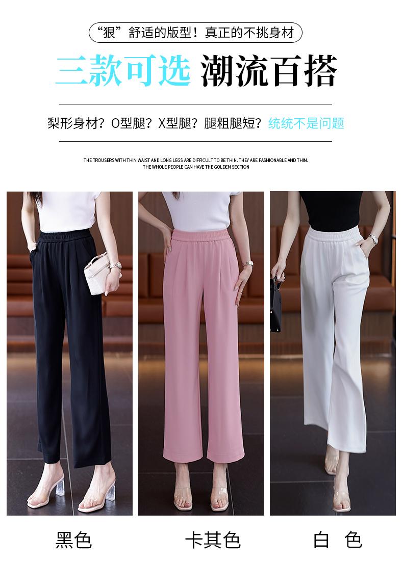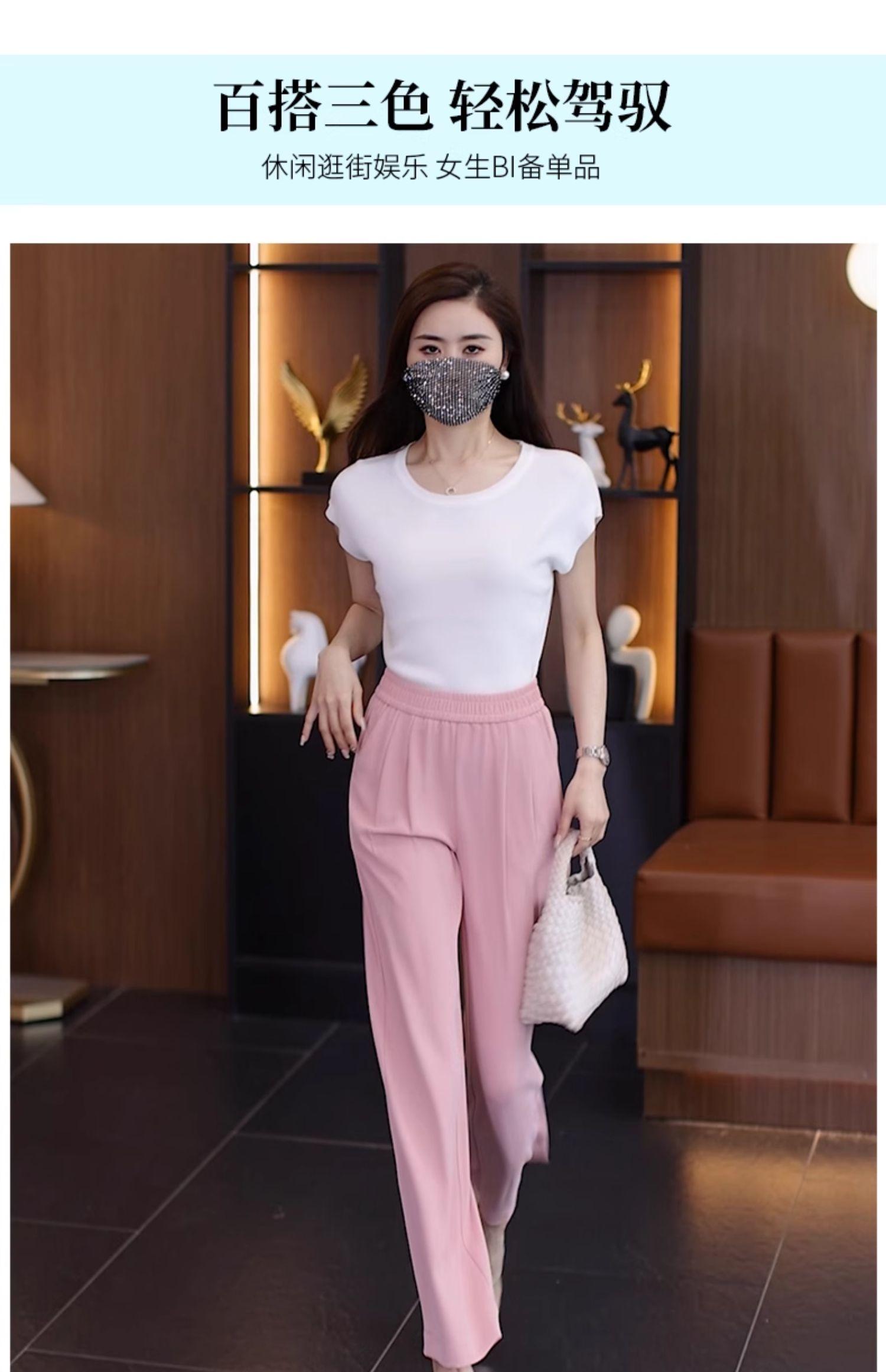 Pantalones casuales de pierna ancha para mujer, pantalones cortos de seda de hielo con cintura alta, novedad de verano 2025, pantalones holgados de cintura holgada para mujer, pantalones que combinan con todo.