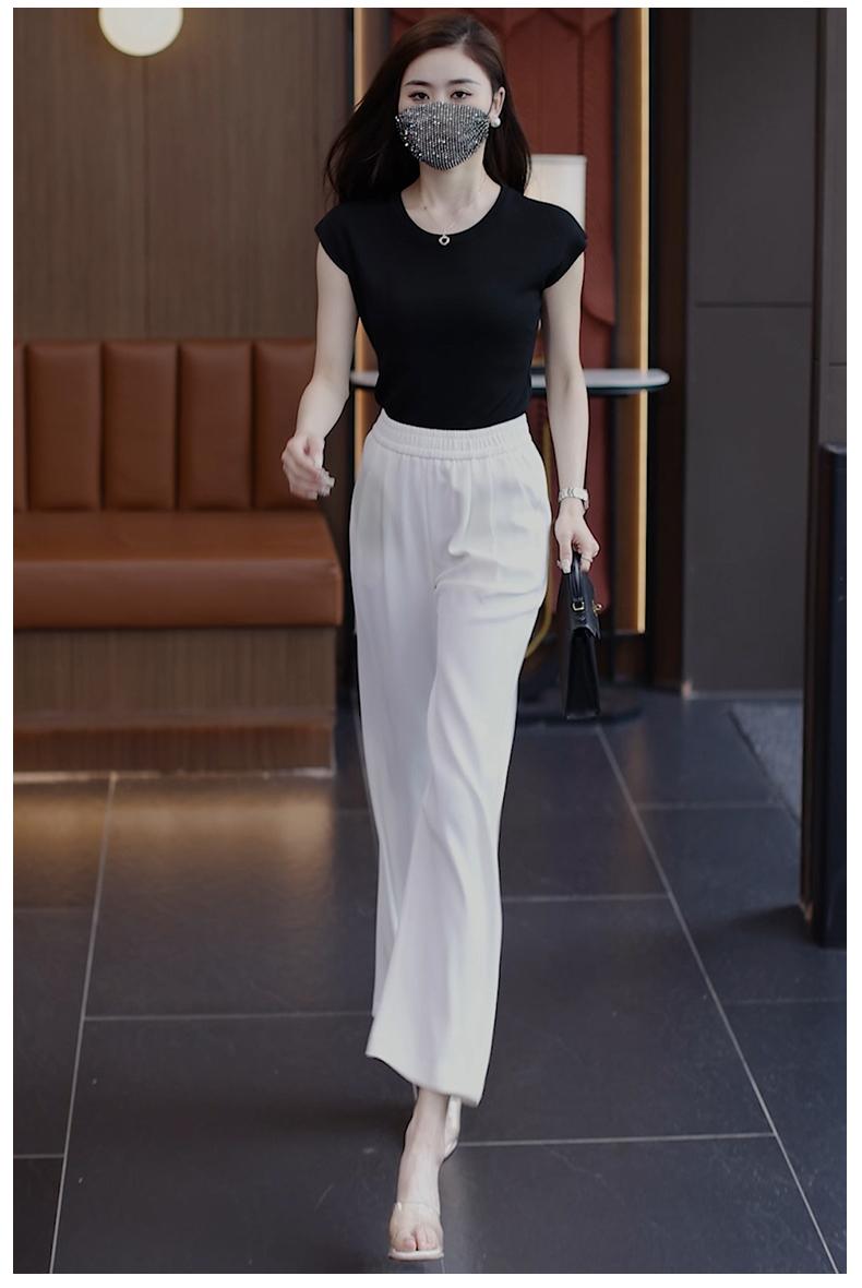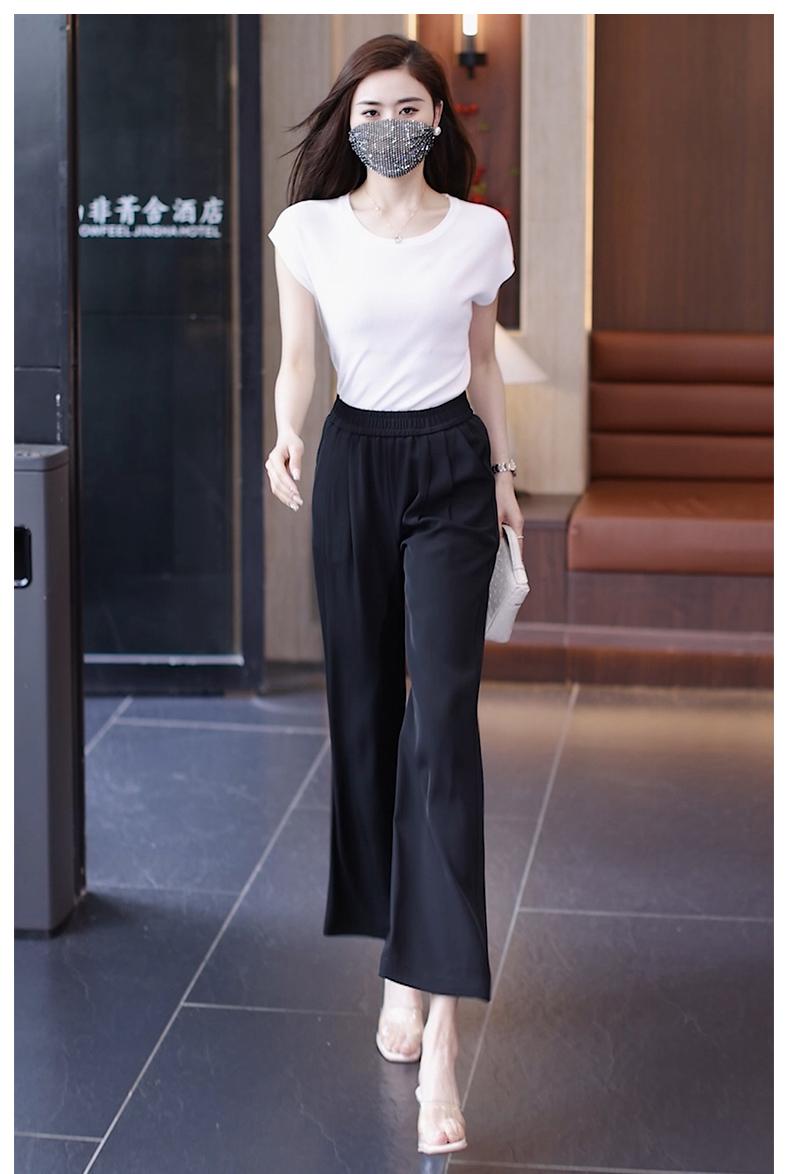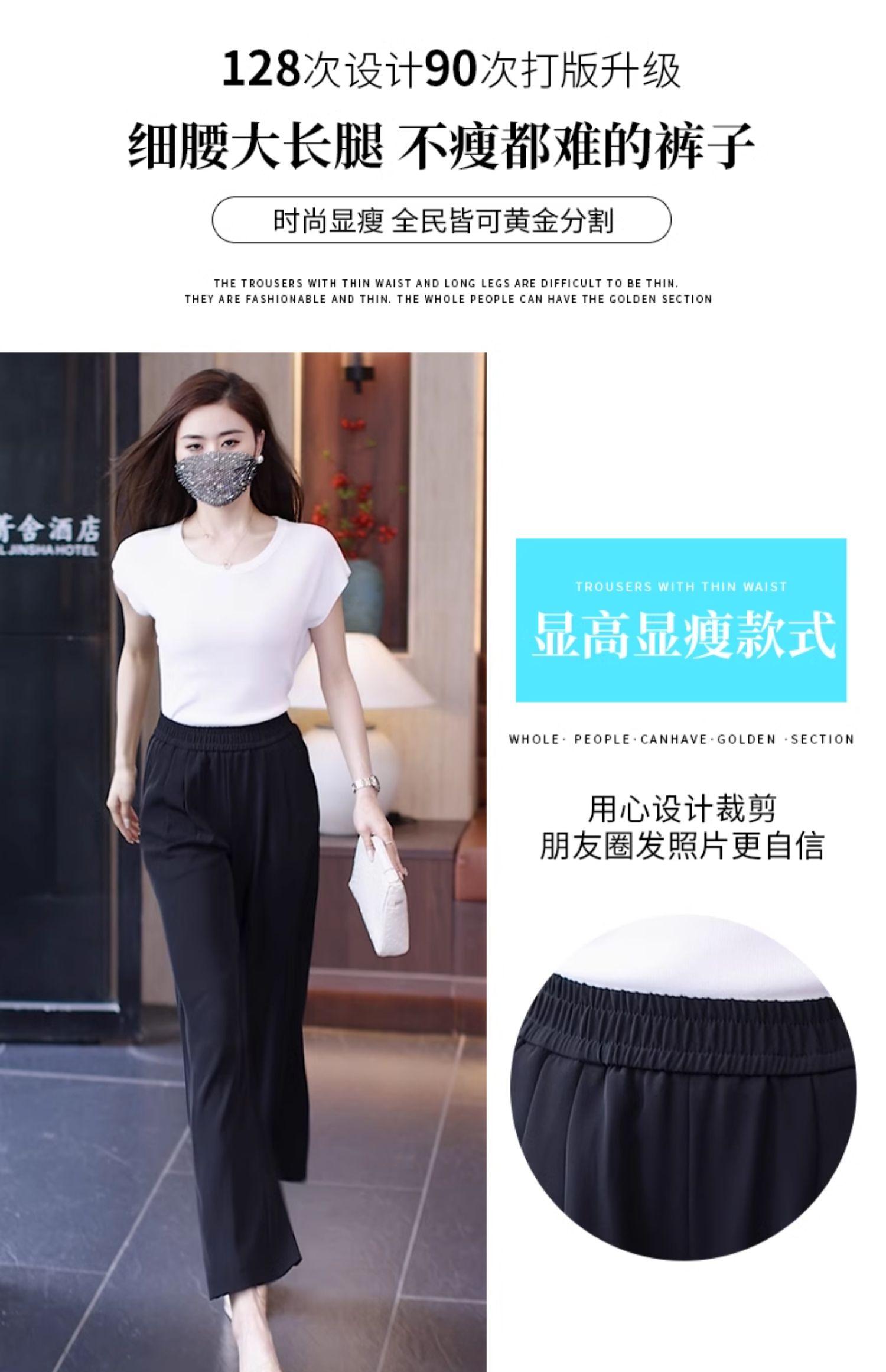Pantalones casuales de pierna ancha para mujer, pantalones cortos de seda de hielo con cintura alta, novedad de verano 2025, pantalones holgados de cintura holgada para mujer, pantalones que combinan con todo.