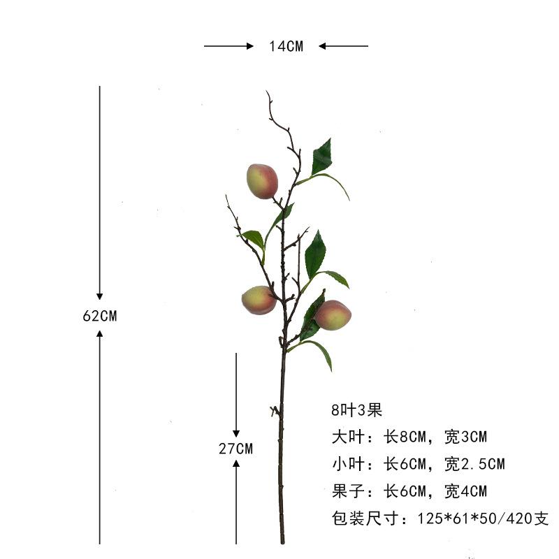 Especificaciones: Rama grande 80CM 12 hojas 5 frutos (2 grandes 3 pequeños), rama pequeña 62CM 8 hojas (3 frutos)
