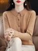 Cárdigan elegante de lana pura con cuello polo estilo camisa para mujer, abrigo de suéter de punto con solapa nuevo para otoño e invierno.