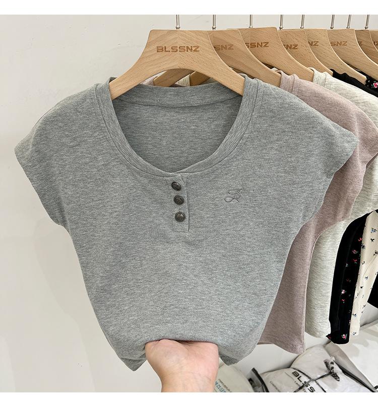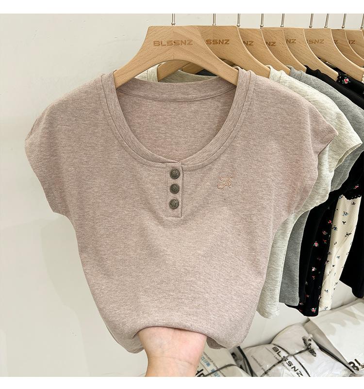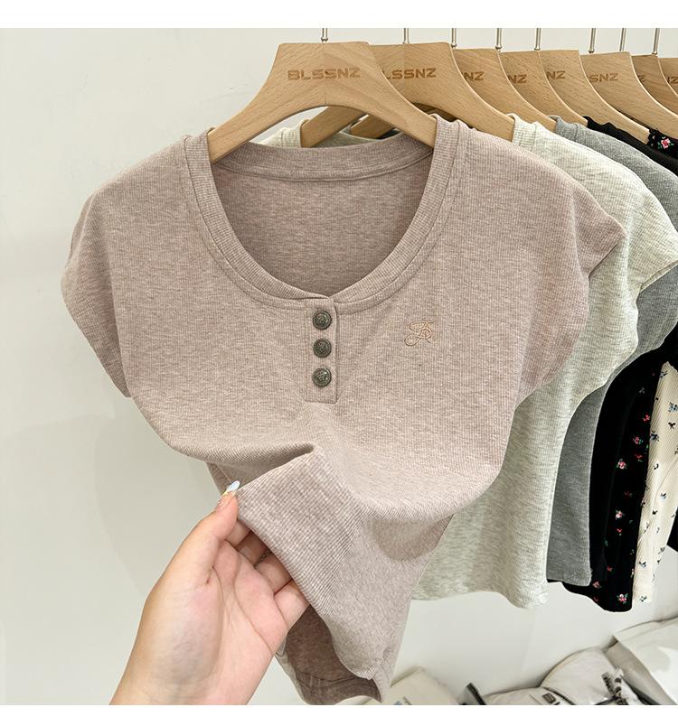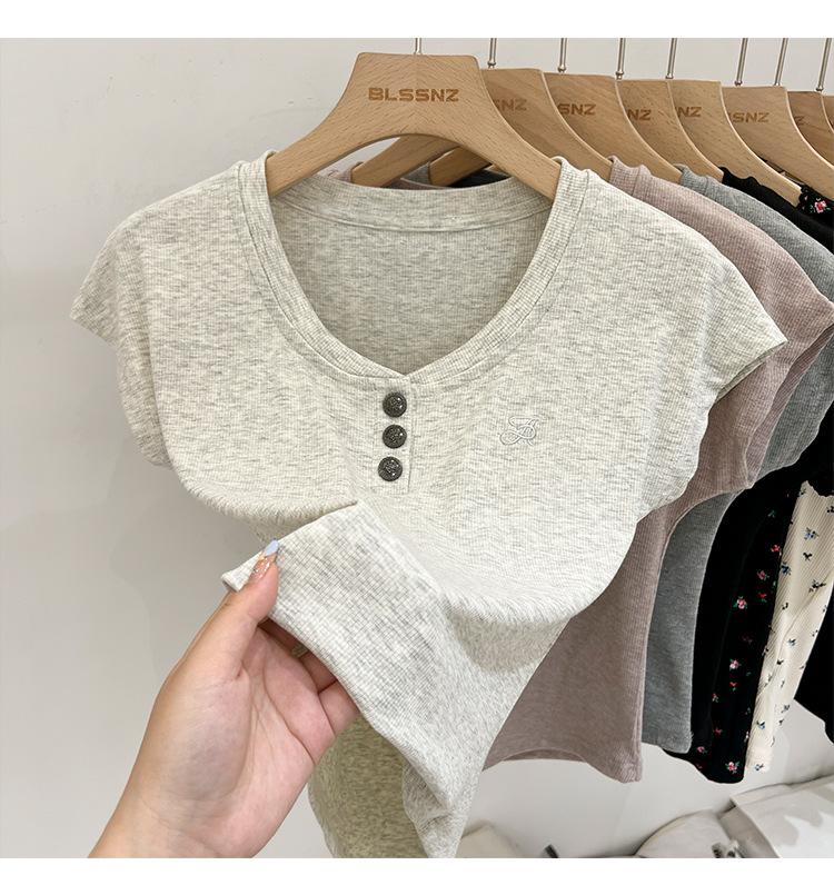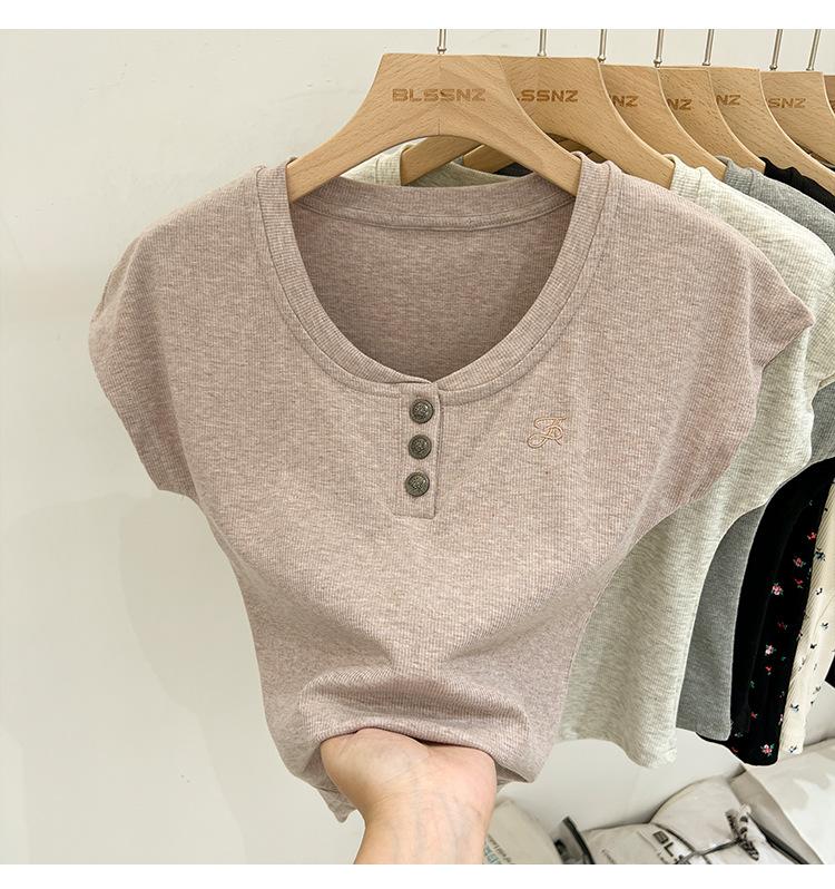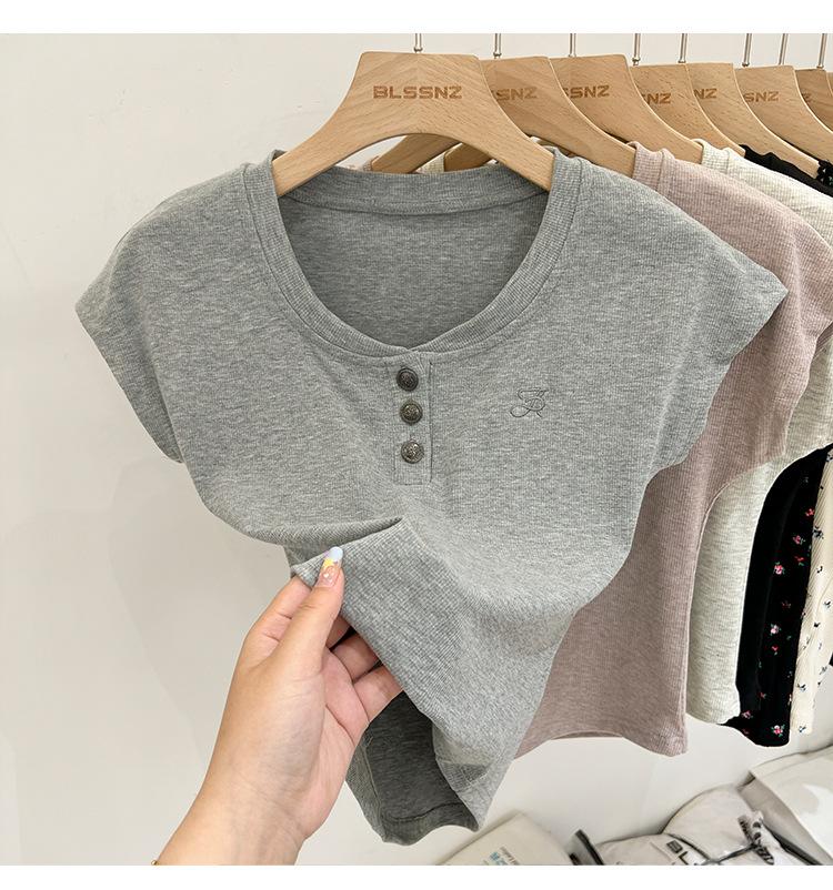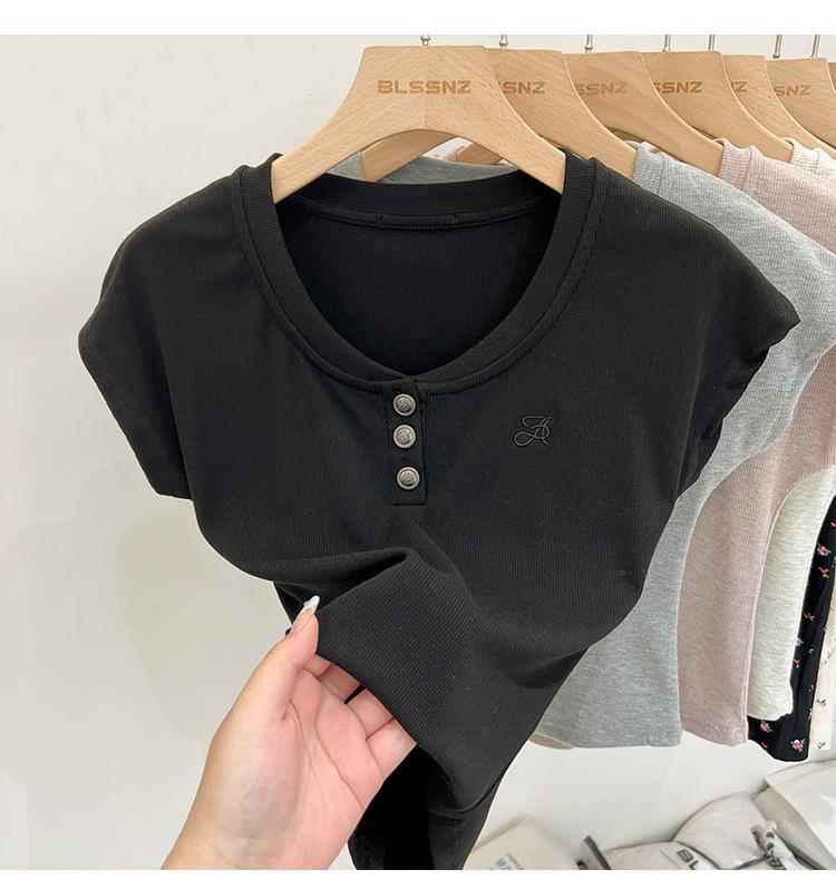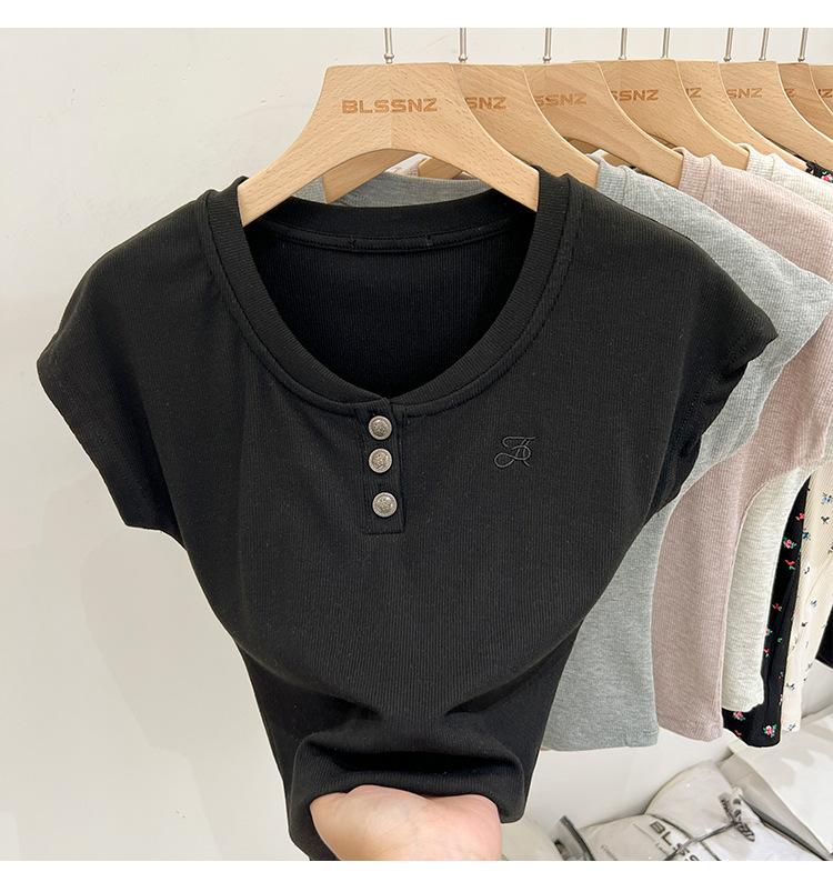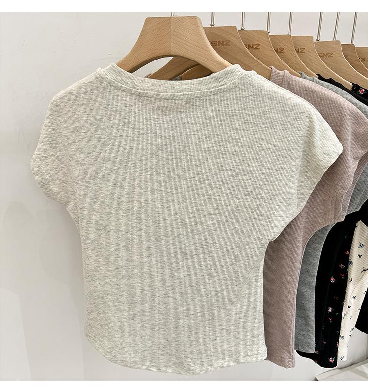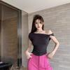 Camiseta de manga corta con hombros descubiertos para mujer, verano 2024, nuevo diseño, camiseta de media manga con corte Sense Niche, tendencia