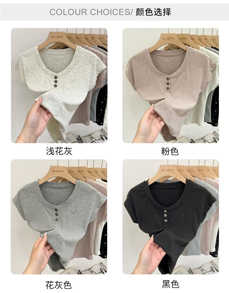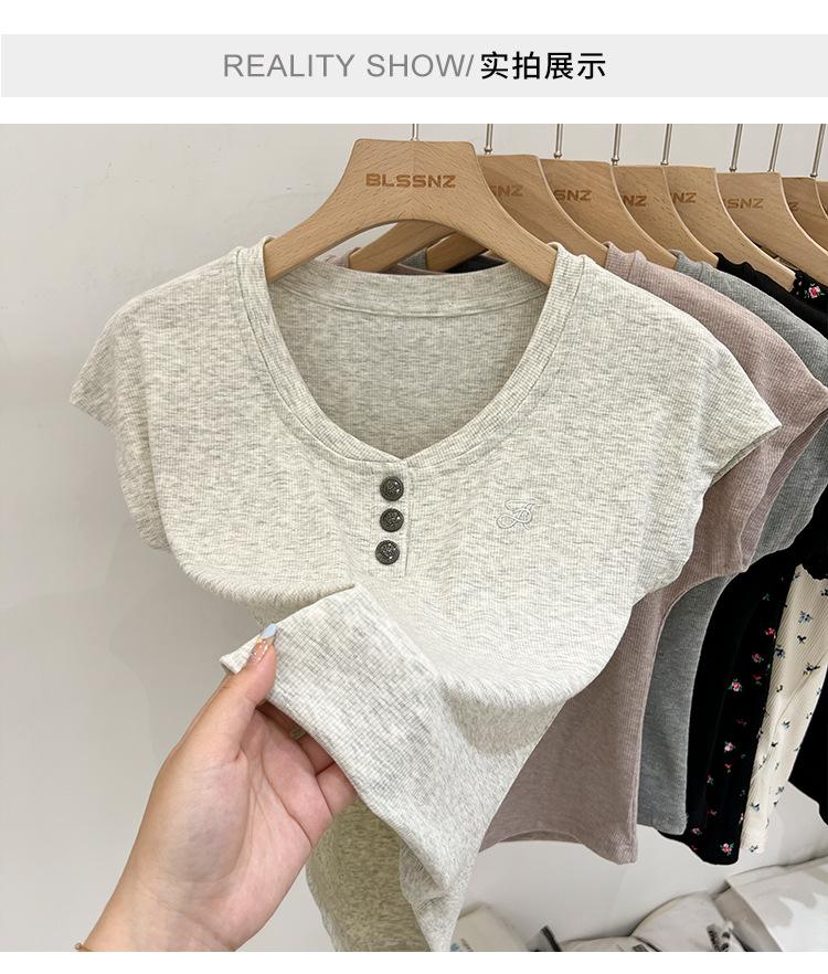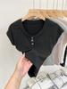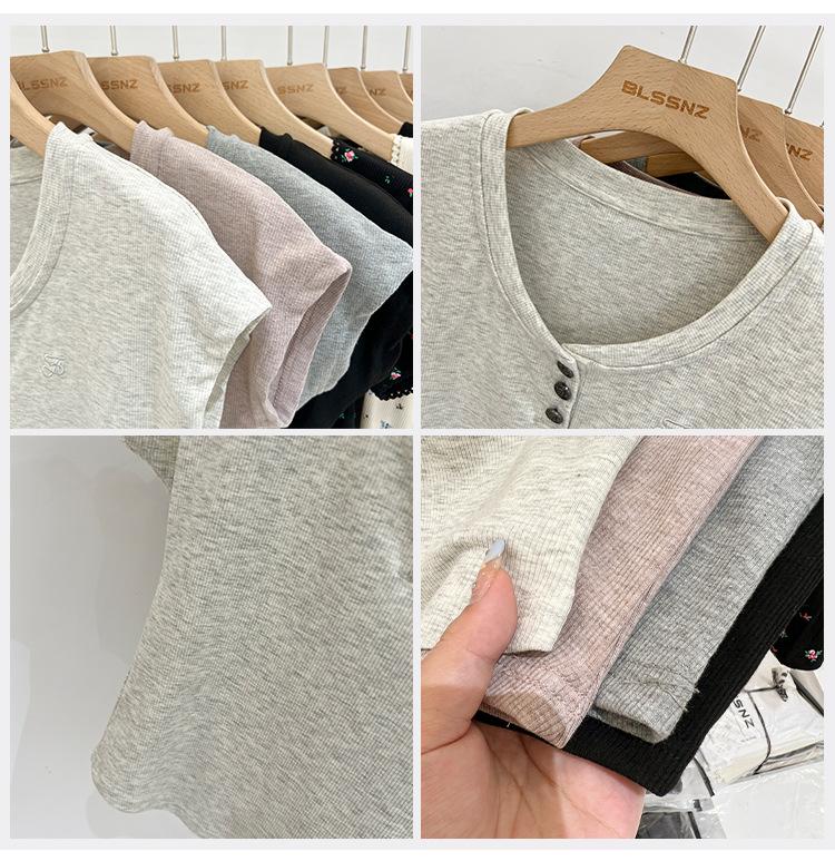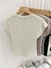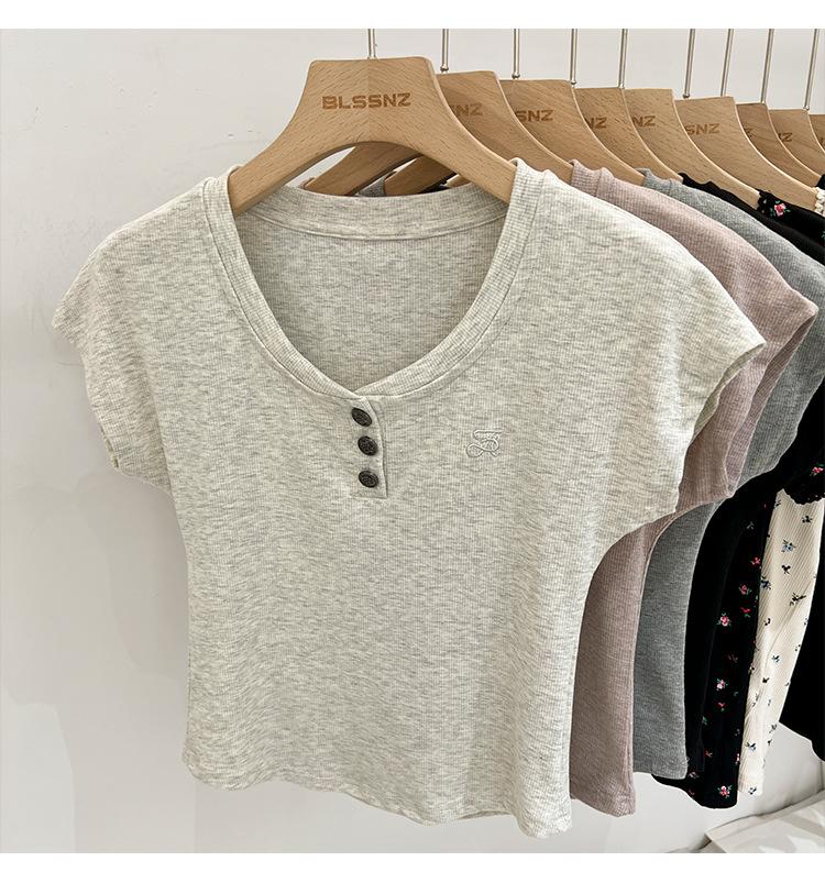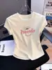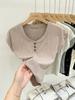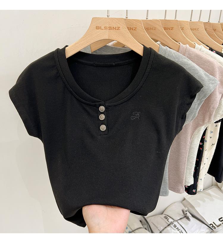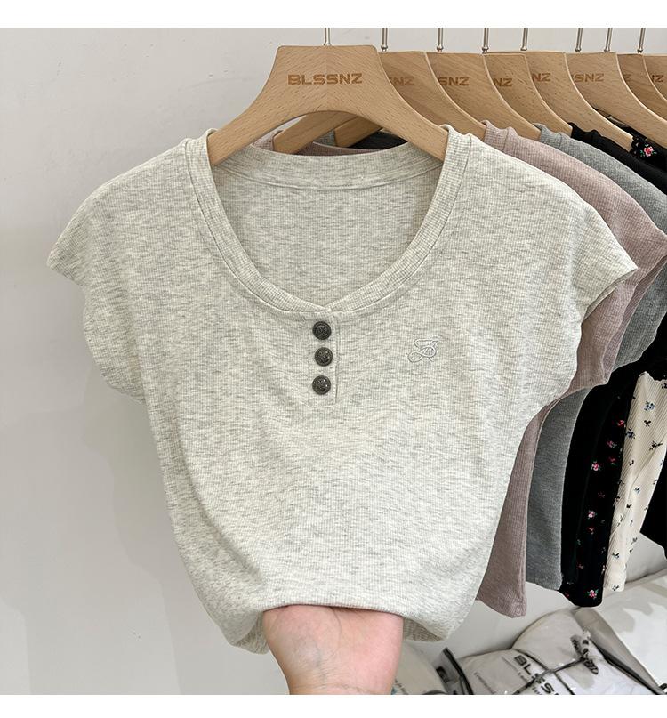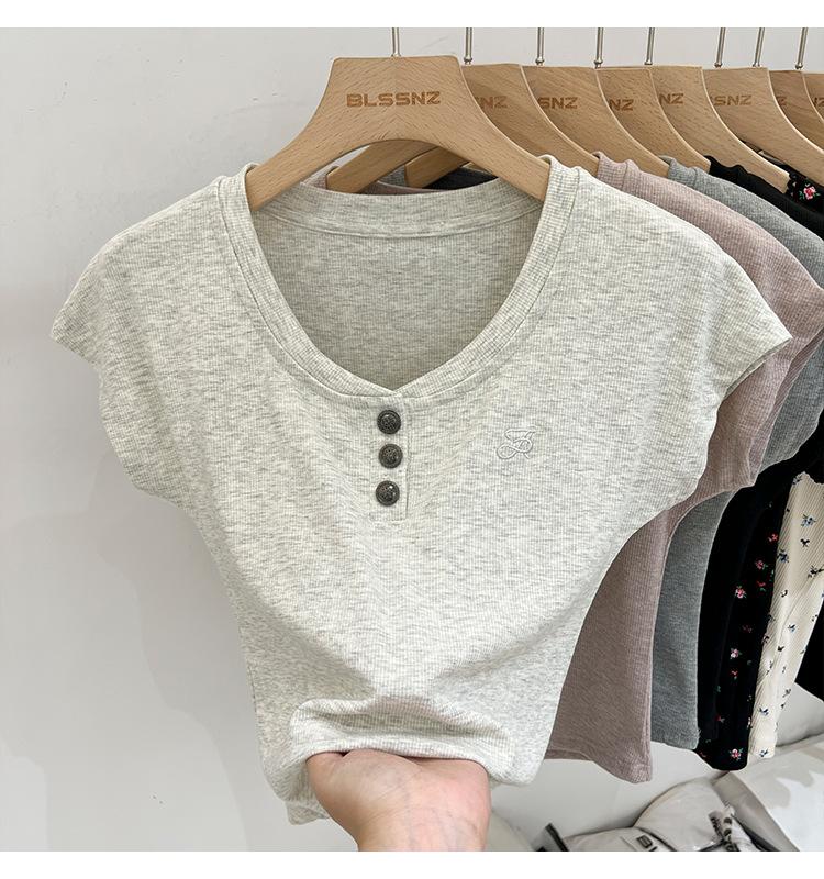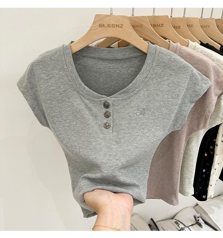 Camiseta de manga corta con hombros descubiertos para mujer, verano 2024, nuevo diseño, camiseta de media manga con corte Sense Niche, tendencia