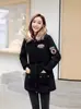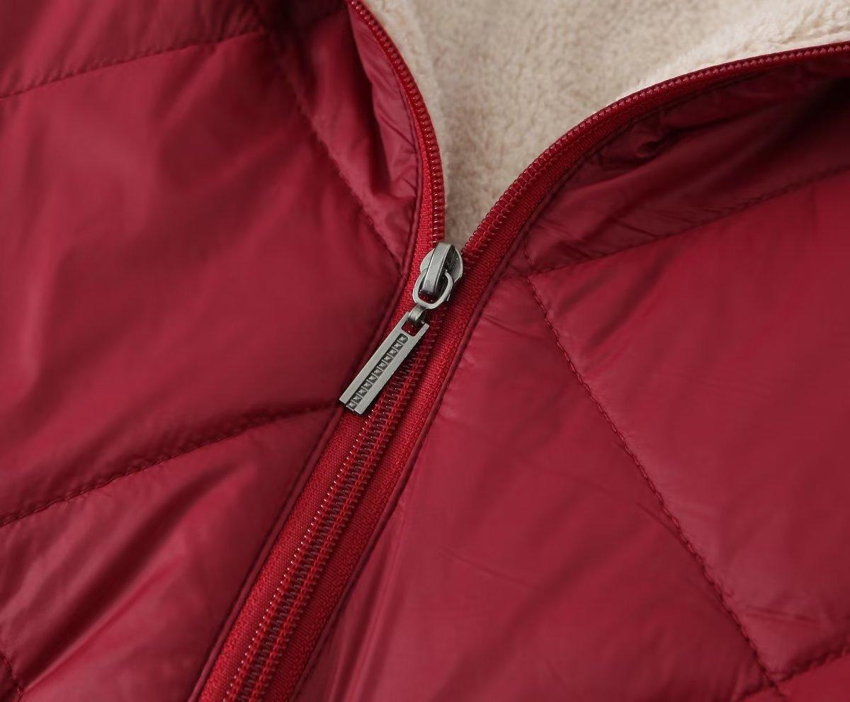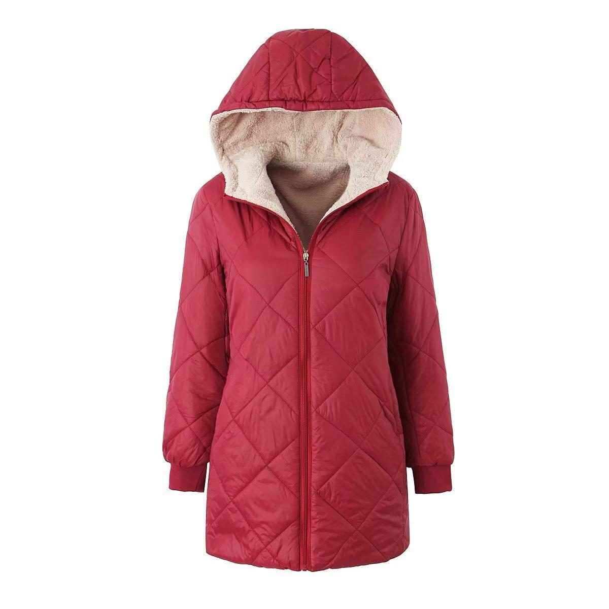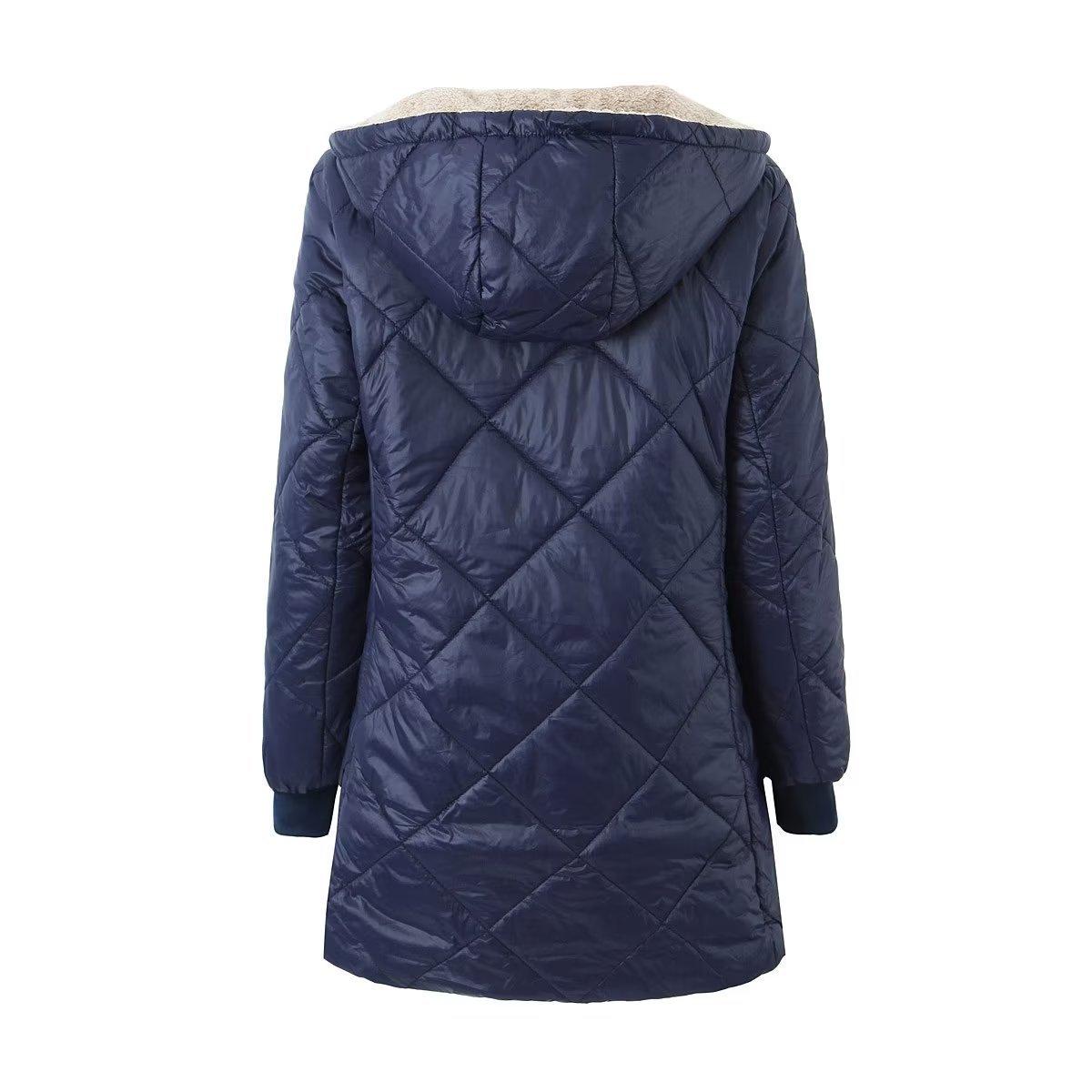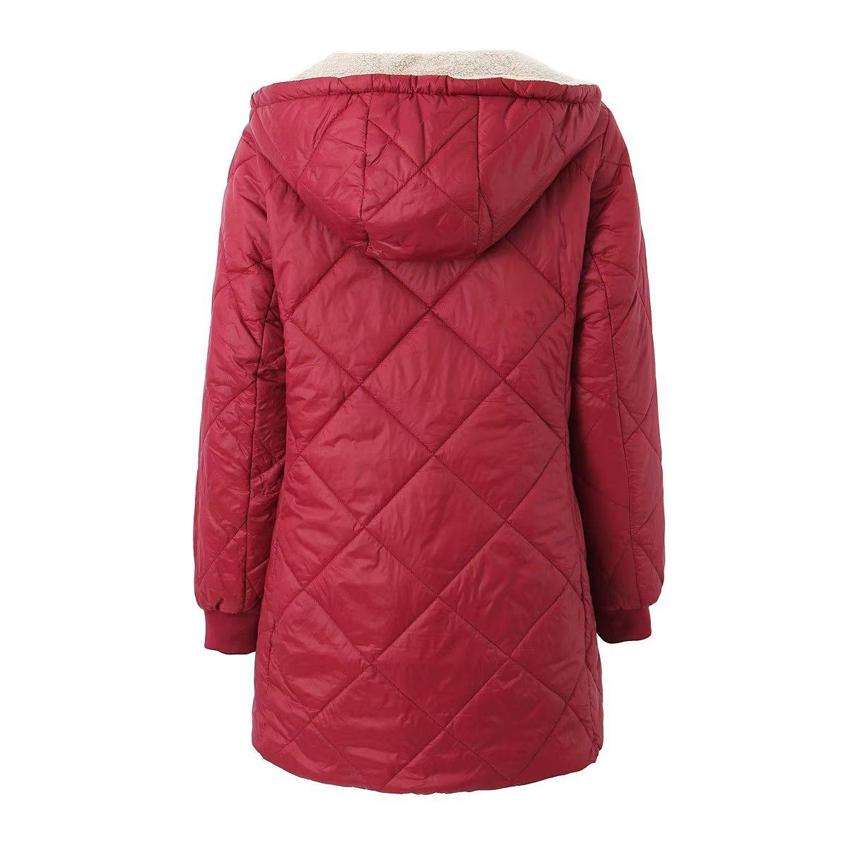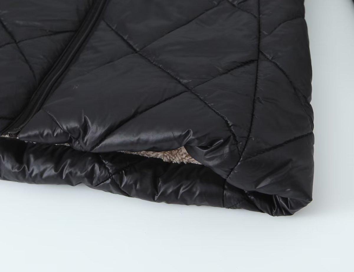 Ropa de Invierno Nueva, Abrigo de Algodón de Longitud Media con Capucha, Impermeable Brillante de Terciopelo de Cordero con Cuadros Geométricos para Mujer