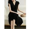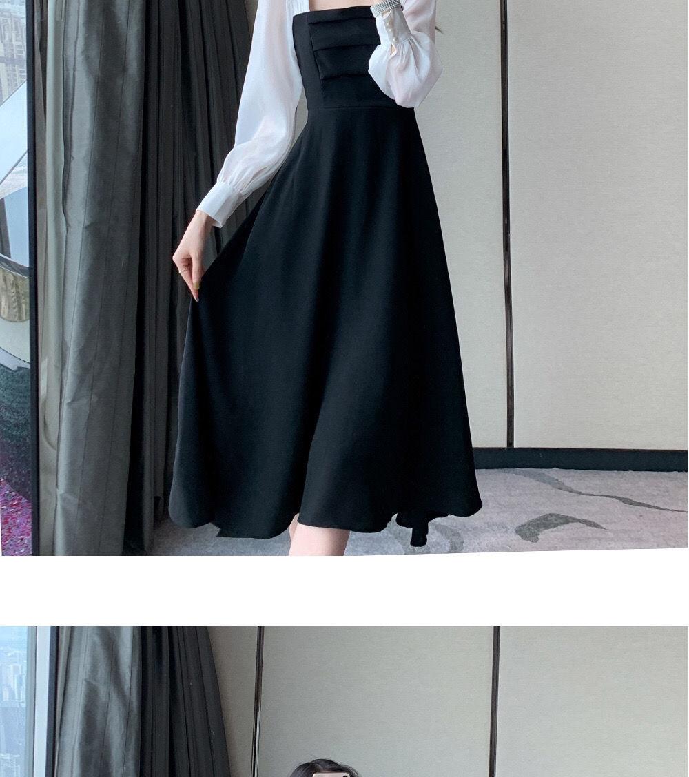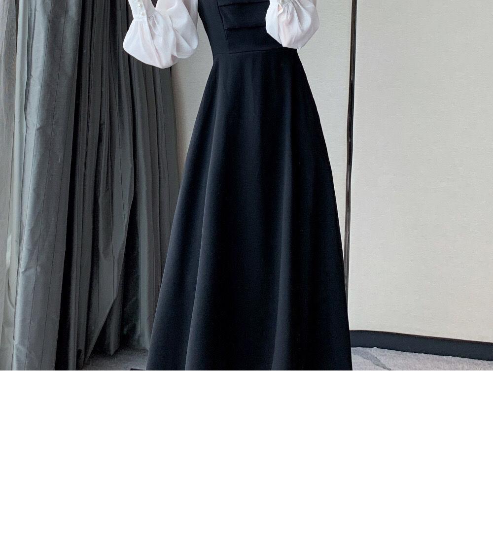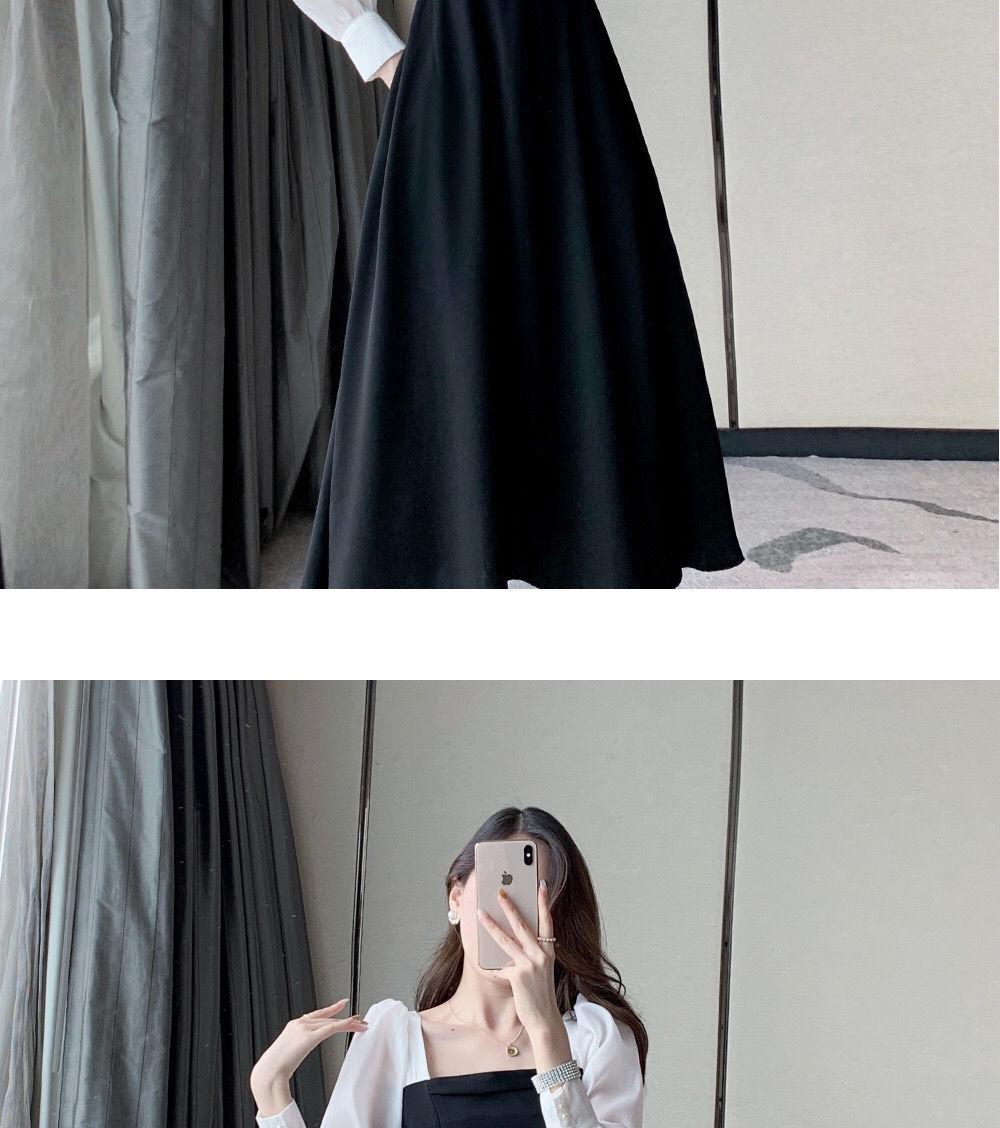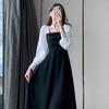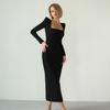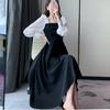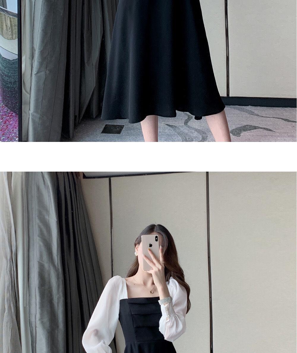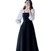 Vestido negro estilo Hepburn de manga larga y escote cuadrado estilo retro francés para mujer, talla grande, para otoño