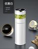Material del producto: revestimiento del cuerpo de la taza 304, película inferior 316 exterior 201, la parte transparente de la tapa del compartimento de té es de plástico.