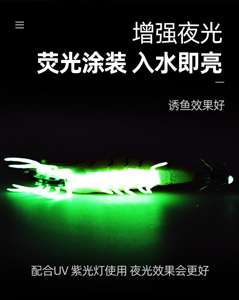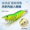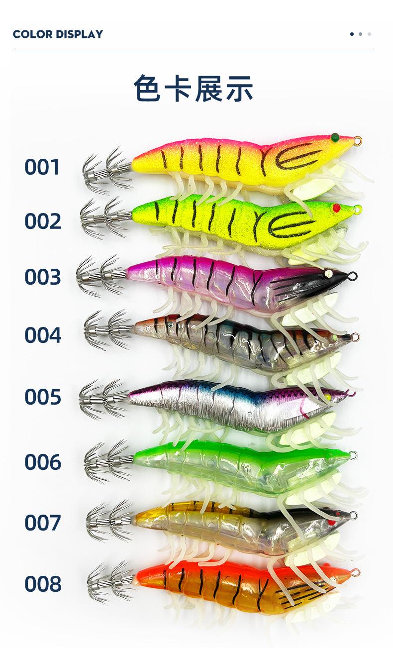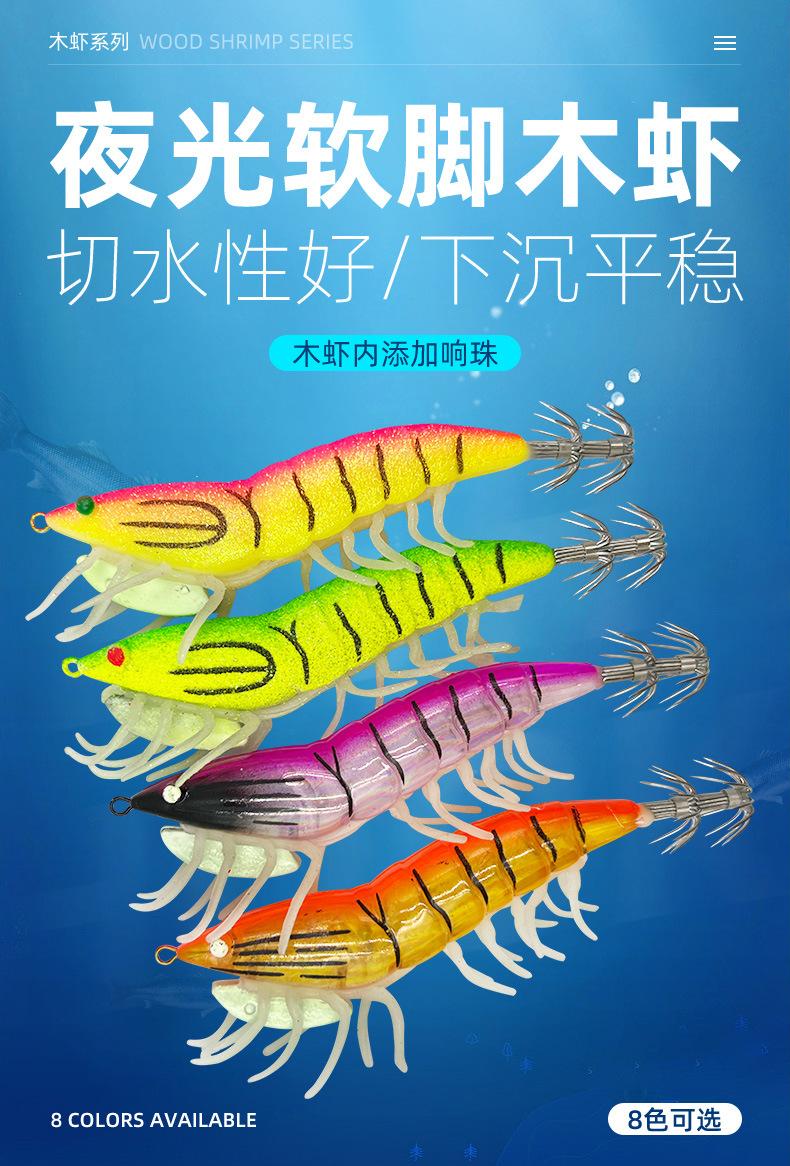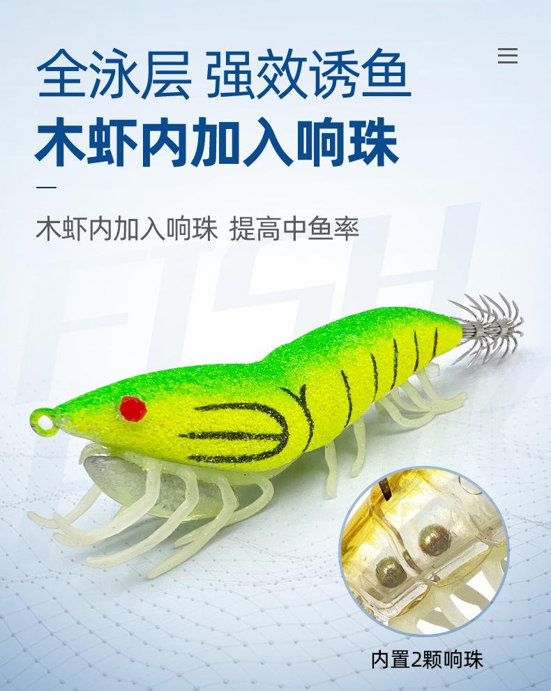 Anzuelo de calamar luminoso de madera para camarones, patas suaves, cebo Luya para camarones de madera, cebo con cuentas resonantes, cebo falso para camarones de madera.