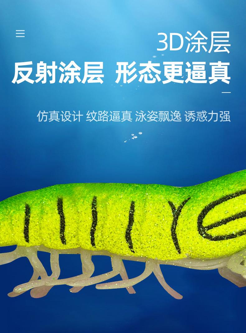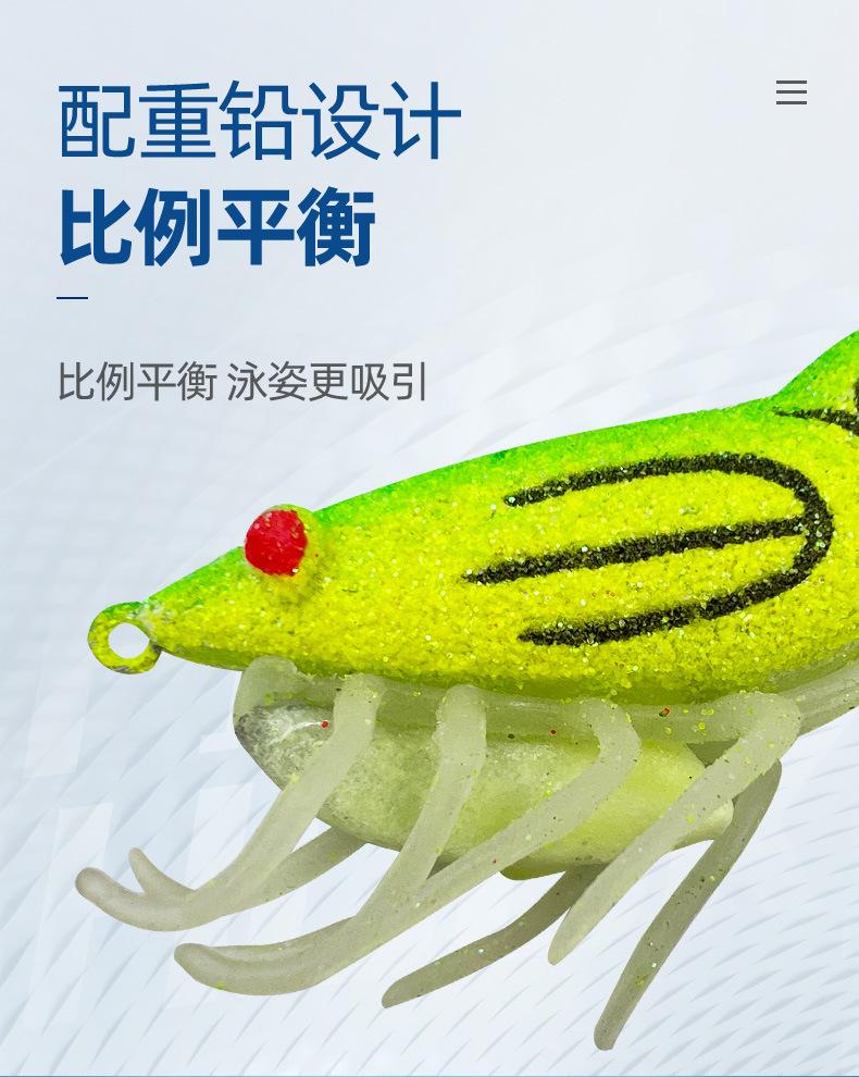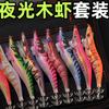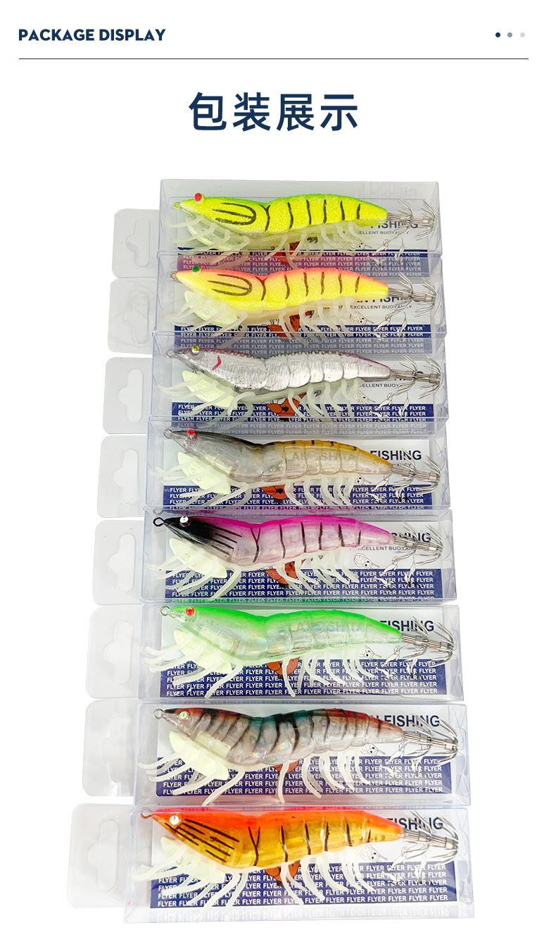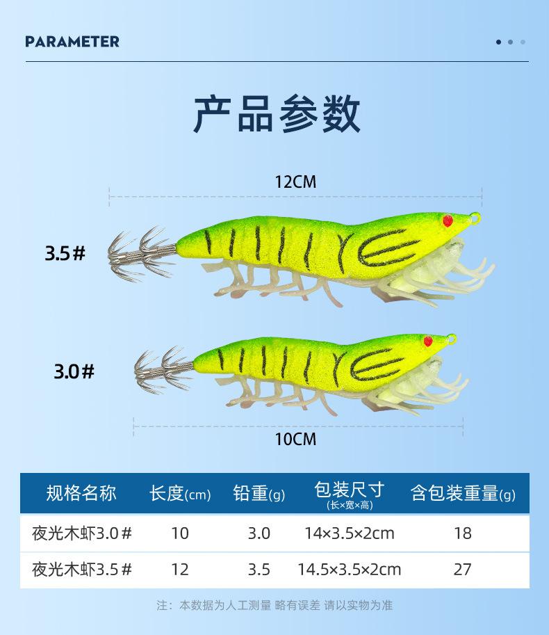 Anzuelo de calamar luminoso de madera para camarones, patas suaves, cebo Luya para camarones de madera, cebo con cuentas resonantes, cebo falso para camarones de madera.