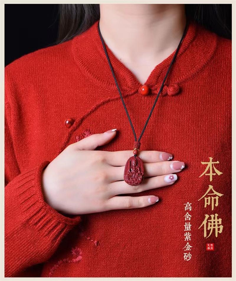 Colgante de Benmingfo de cinabrio natural, Bodhisattva de la vanidad oculta Puxian, Año del Tigre, Benmingfo, deidad patrona del zodíaco para hombres y mujeres.