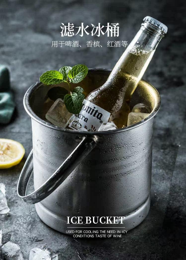 Barril de Hielo de Acero Inoxidable Bar KTV Cubitera Portátil Cubitera Comercial Cubitera para Hielo y Champán Cubitera Creativa para Cerveza y Vino Tinto con Cubeta