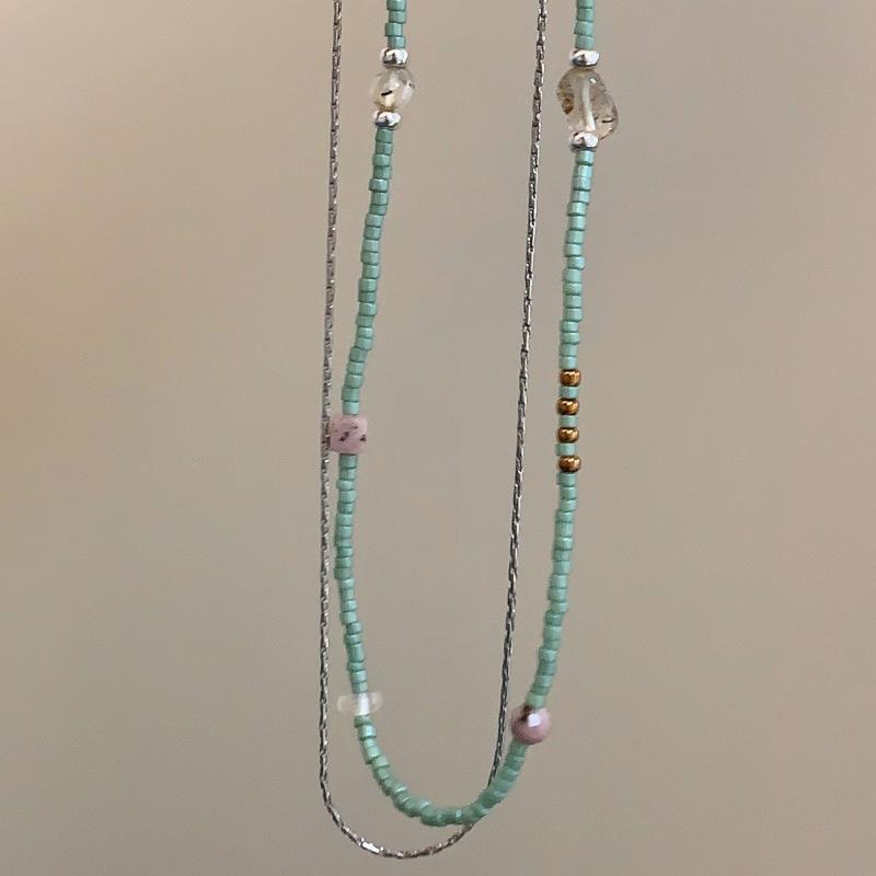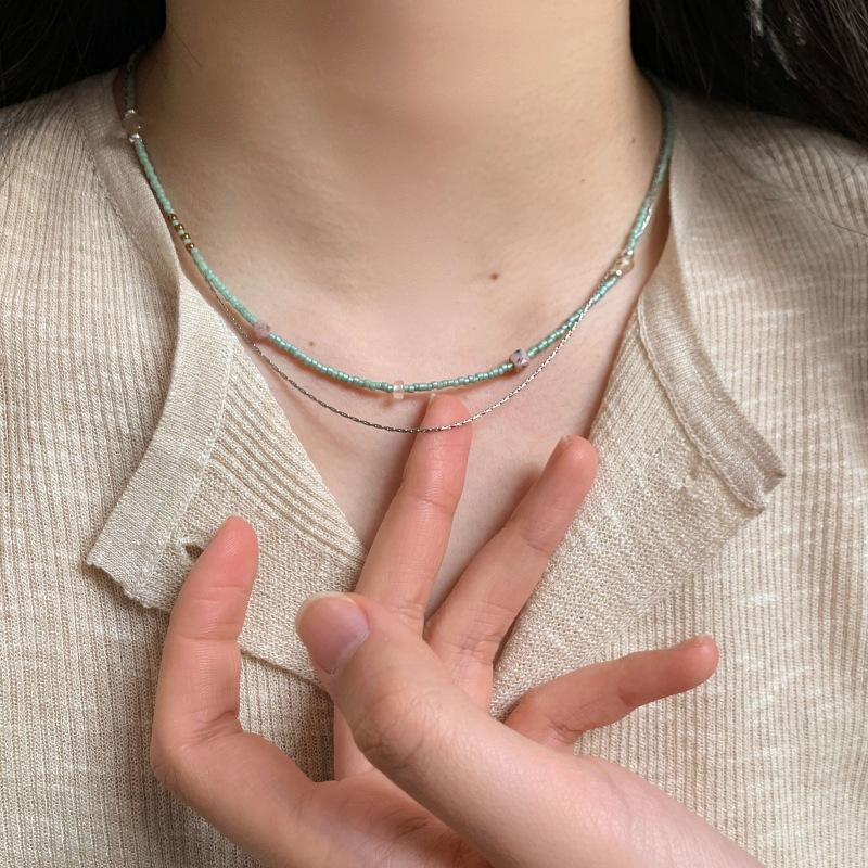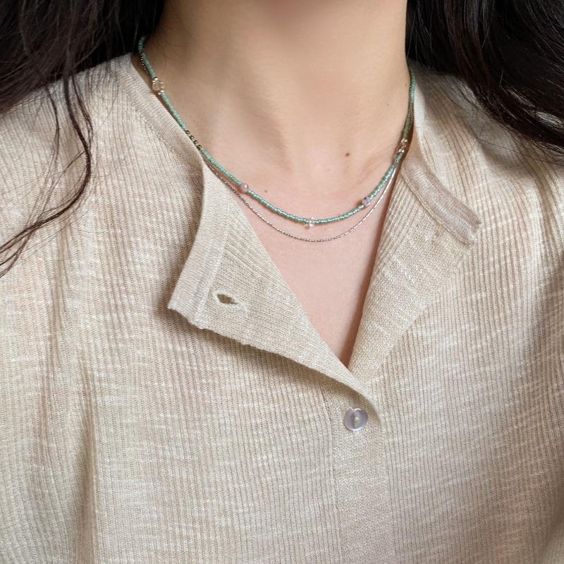 New Chinese style double-layer rice bead necklace