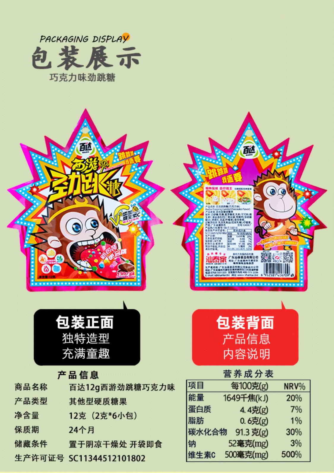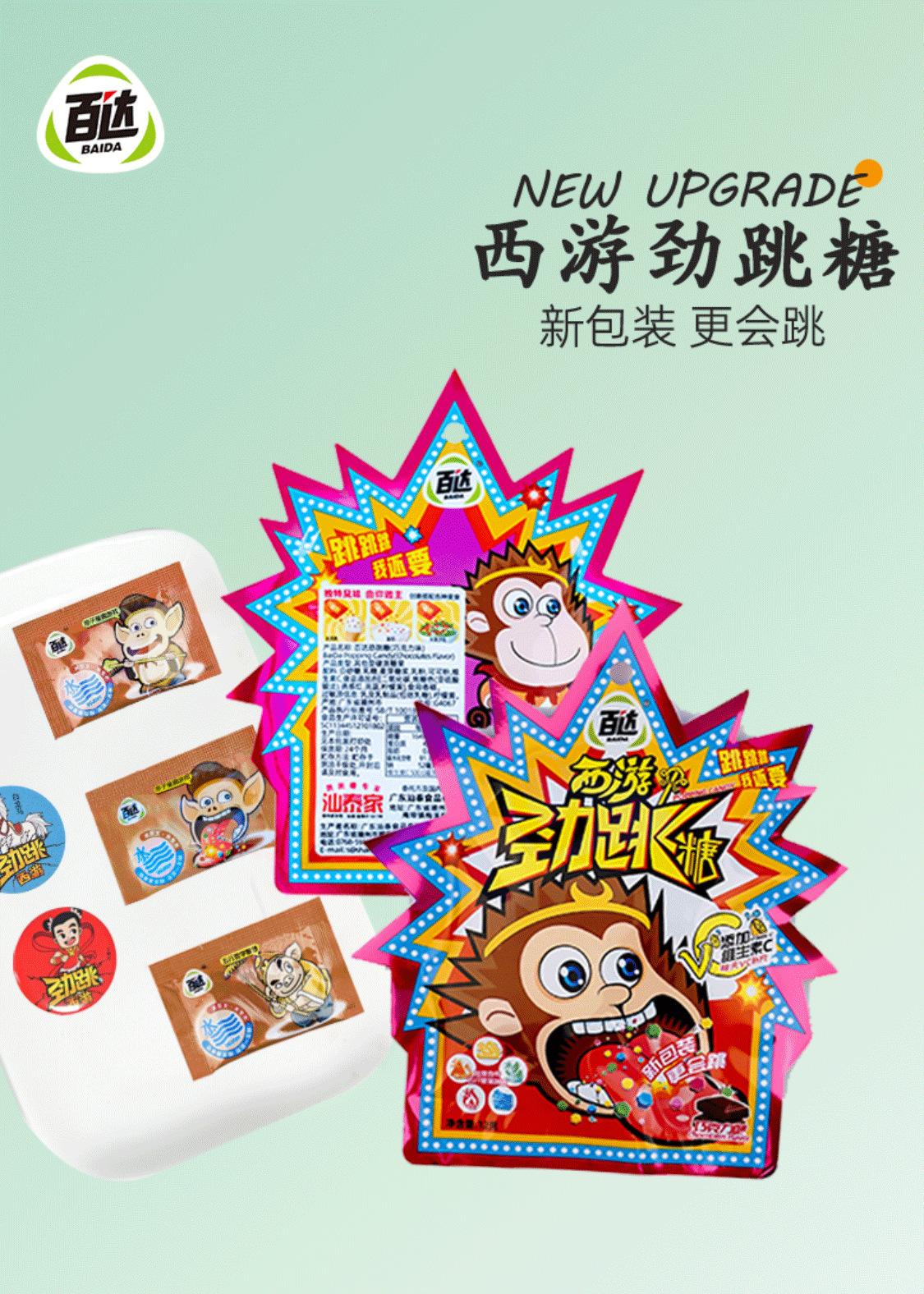 Dulces saltarines Baida, dulces infantiles con sabor a yogur, bocadillos nostálgicos infantiles, comida creativa de supermercado al por mayor