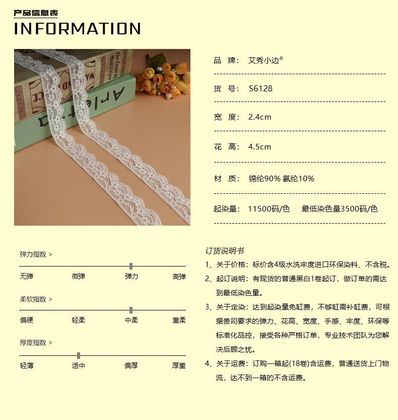 S6128# Encaje elástico de 2,4 cm para ropa interior de mujer, hecho a mano, de nailon.