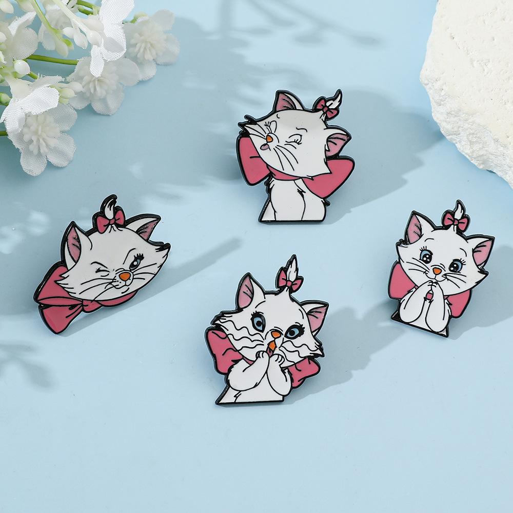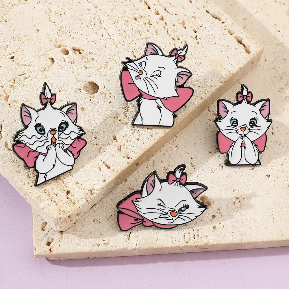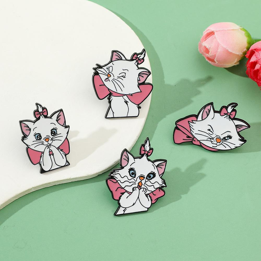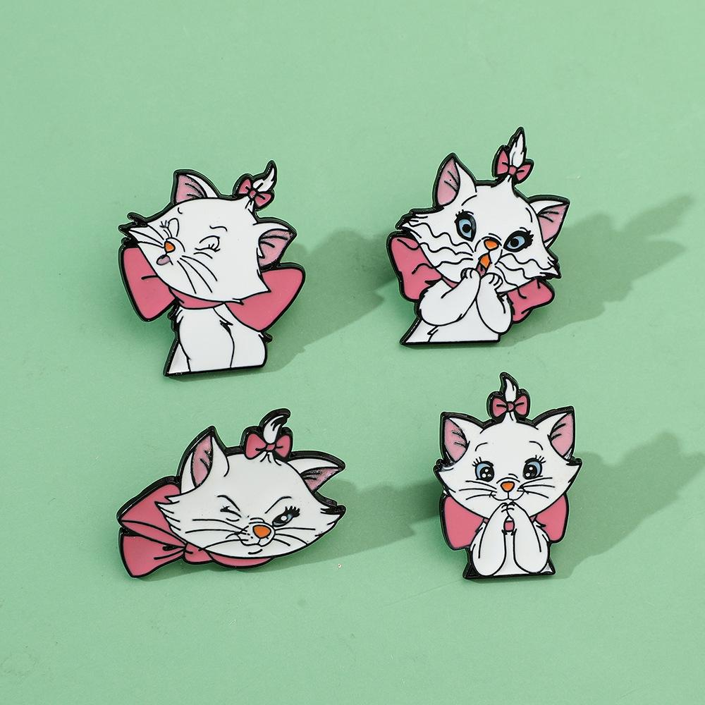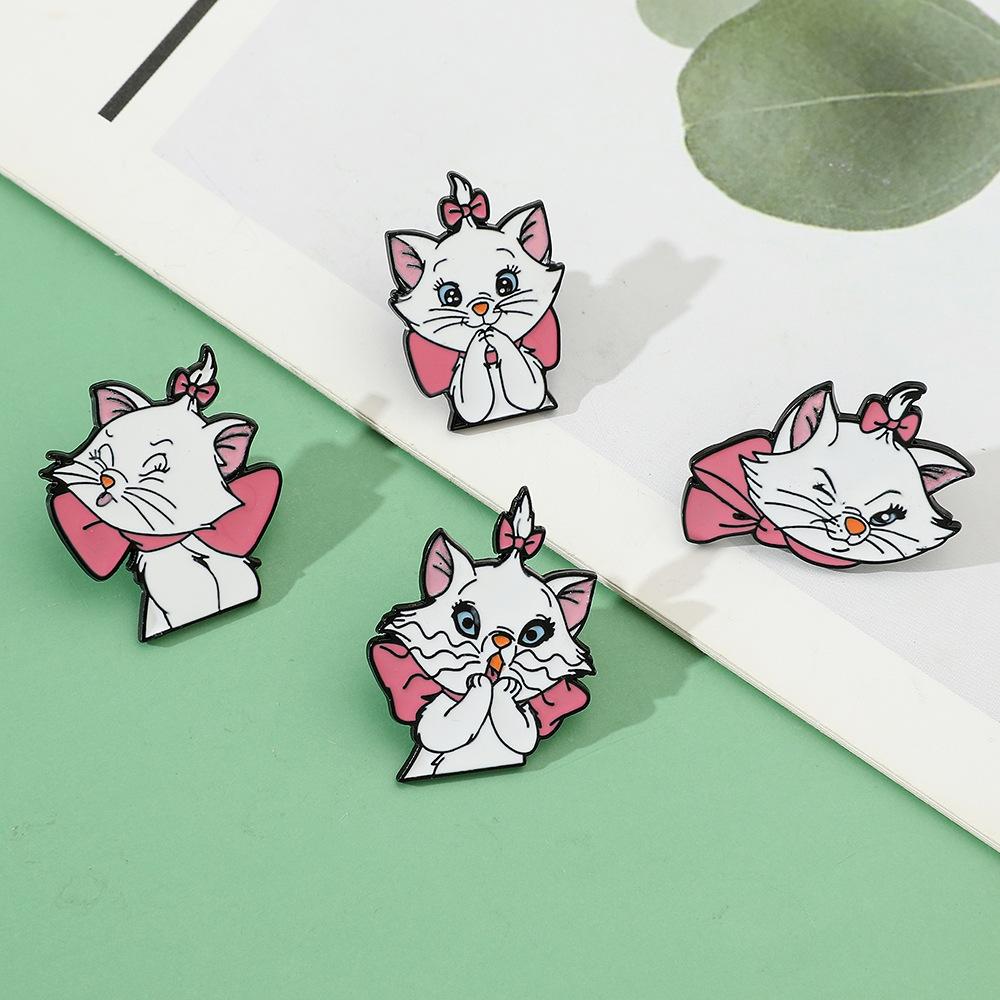 Bonita insignia de metal con forma de gato con lazo de dibujos animados, broche de aleación con forma de gota de aceite, accesorios, pin, insignia, joyería