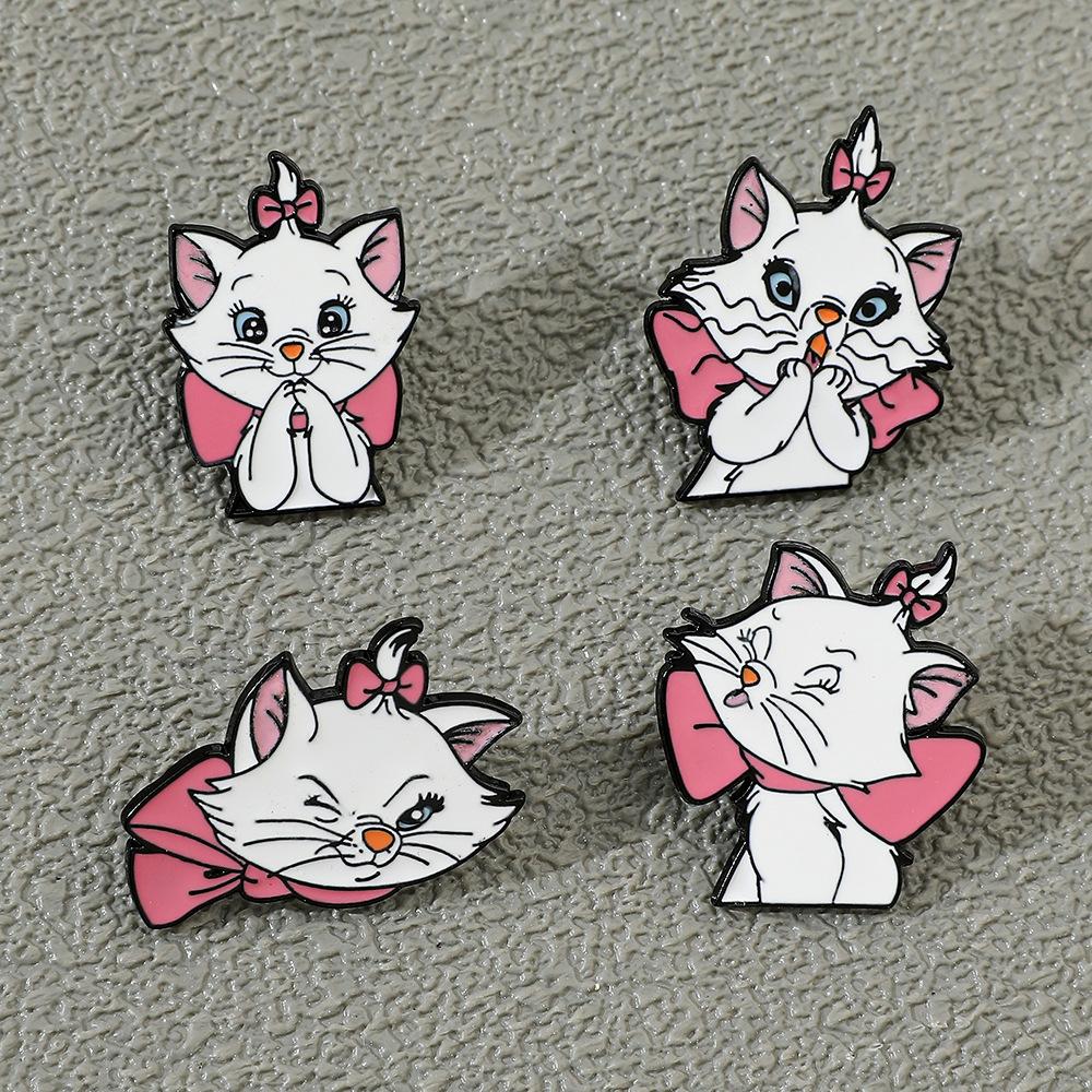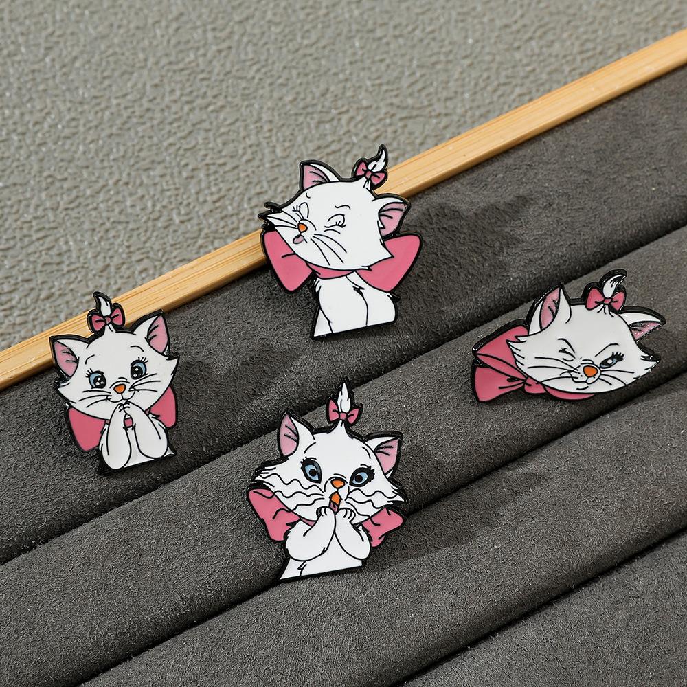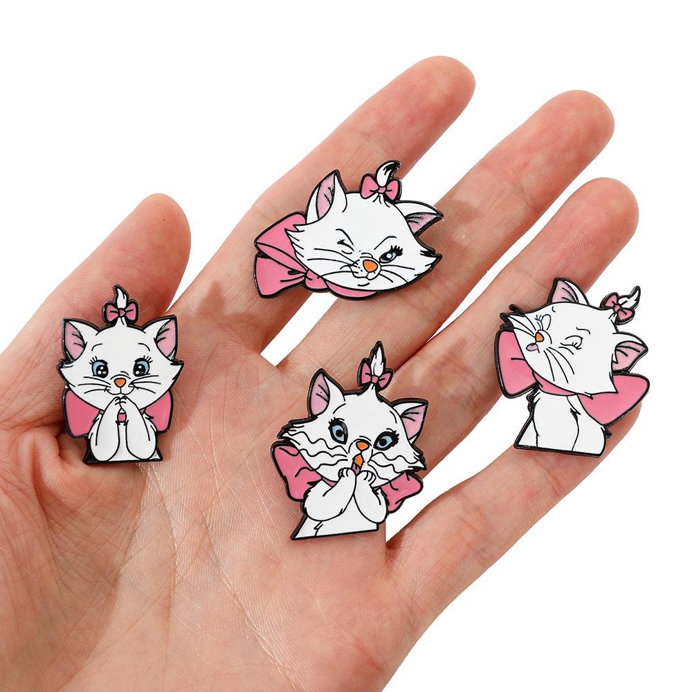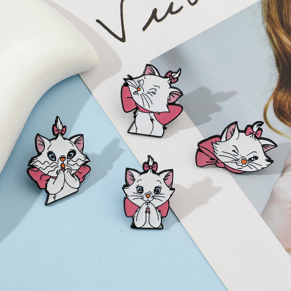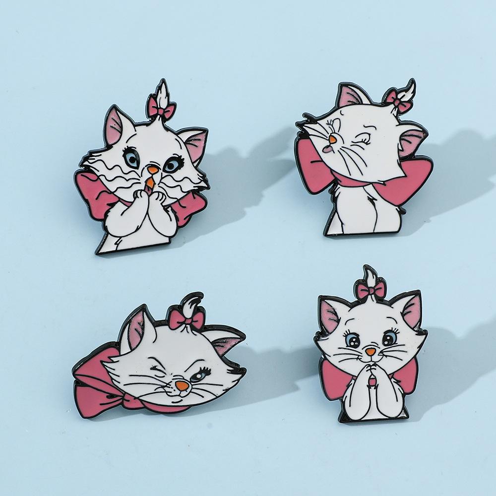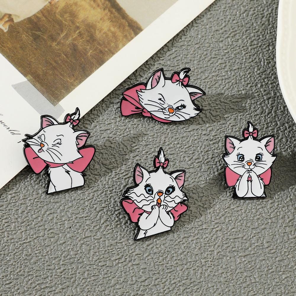 Bonita insignia de metal con forma de gato con lazo de dibujos animados, broche de aleación con forma de gota de aceite, accesorios, pin, insignia, joyería