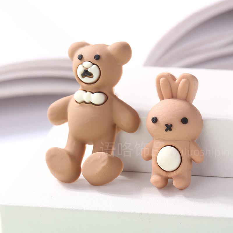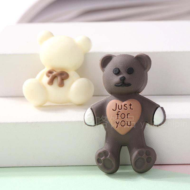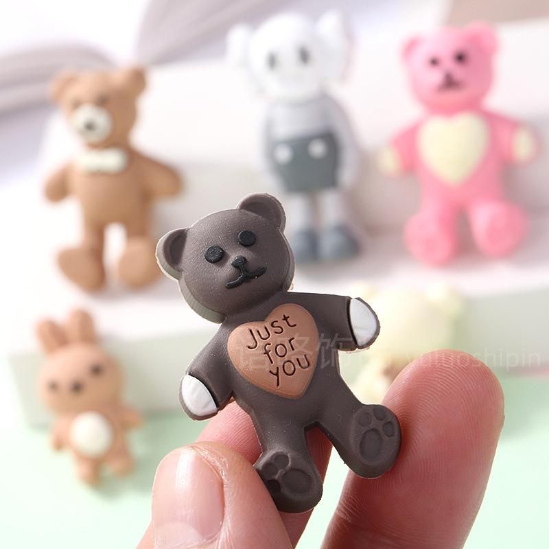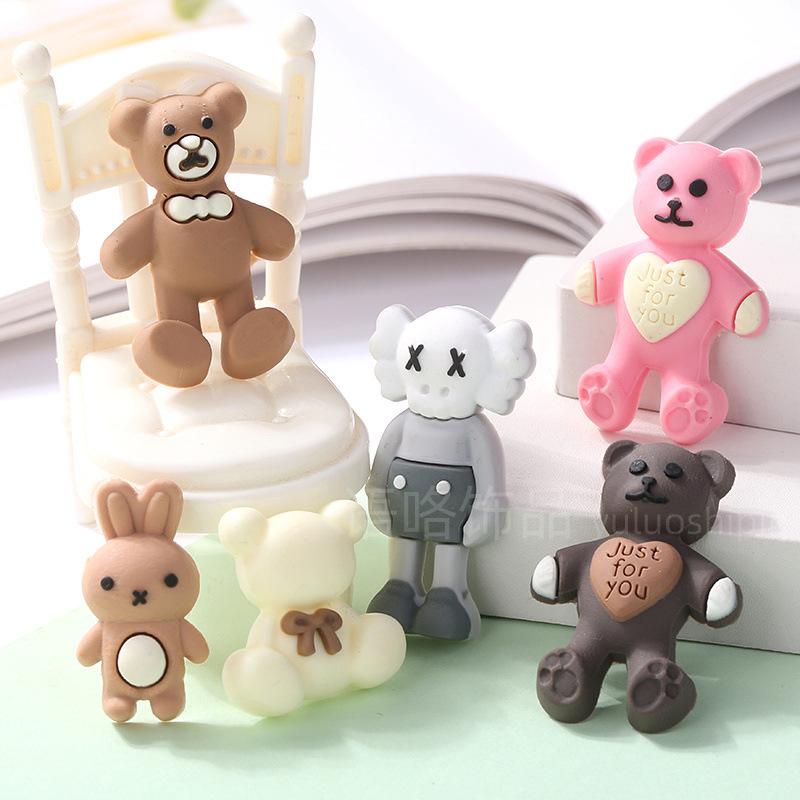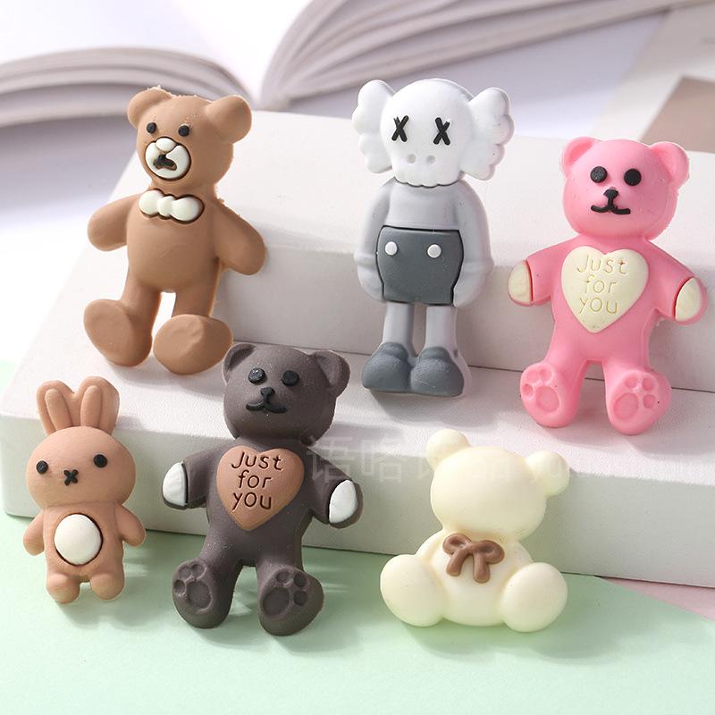 Horquilla de goma suave con forma de oso de dibujos animados de PVC, accesorios de joyería, parche para carcasa de teléfono móvil hecho a mano, accesorios de joyería de oso rosa