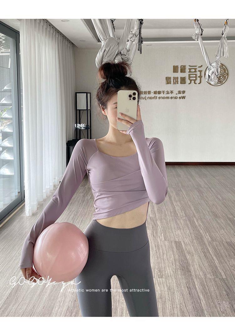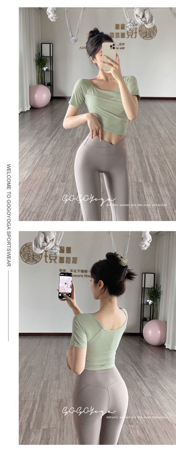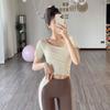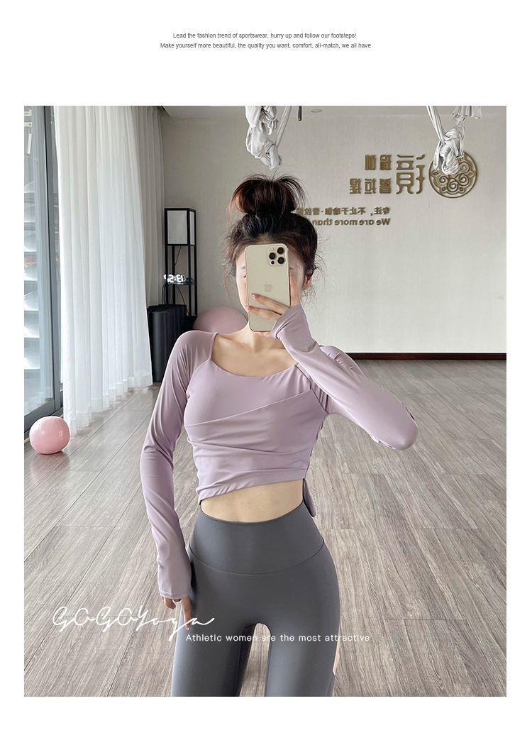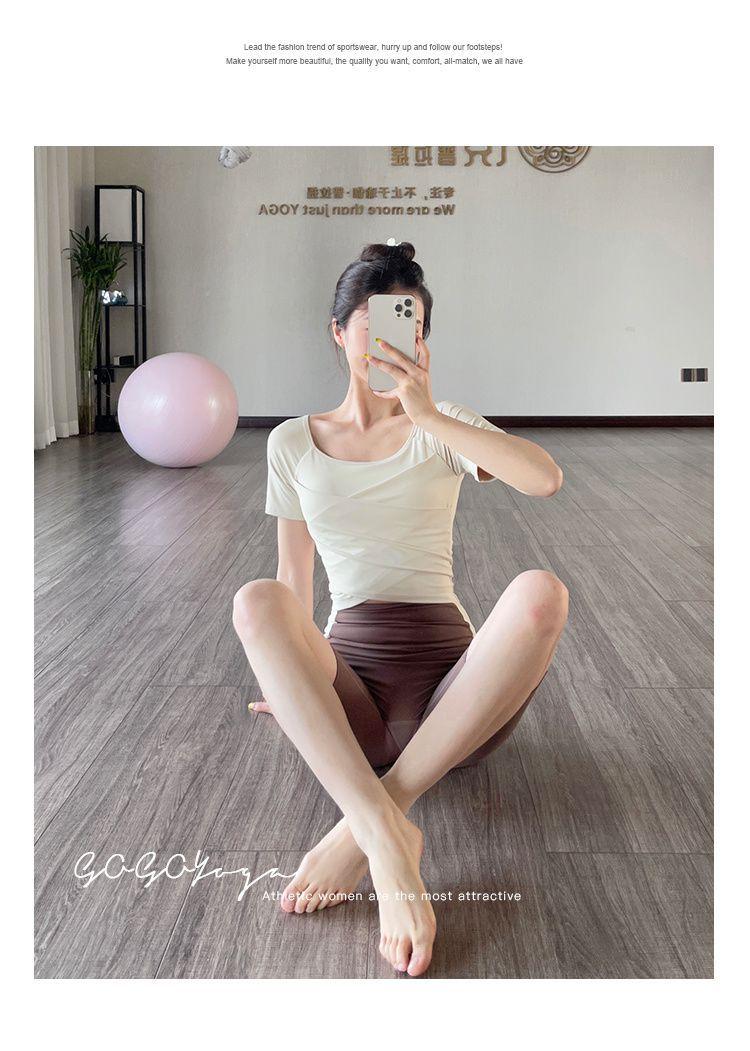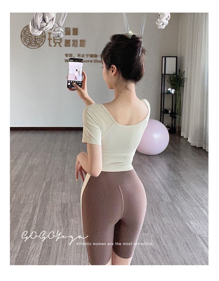 Nuevo estilo de ropa de yoga con traje de tapete para el pecho para mujer, ropa deportiva de verano de manga corta para correr, ropa de fitness de secado rápido, top de manga larga