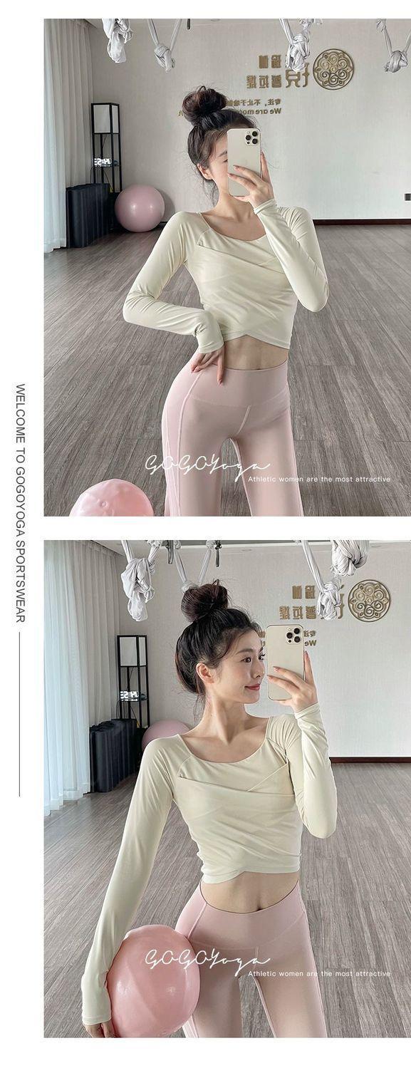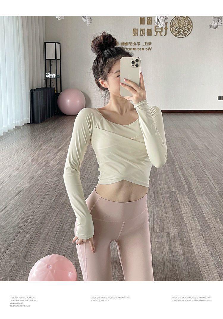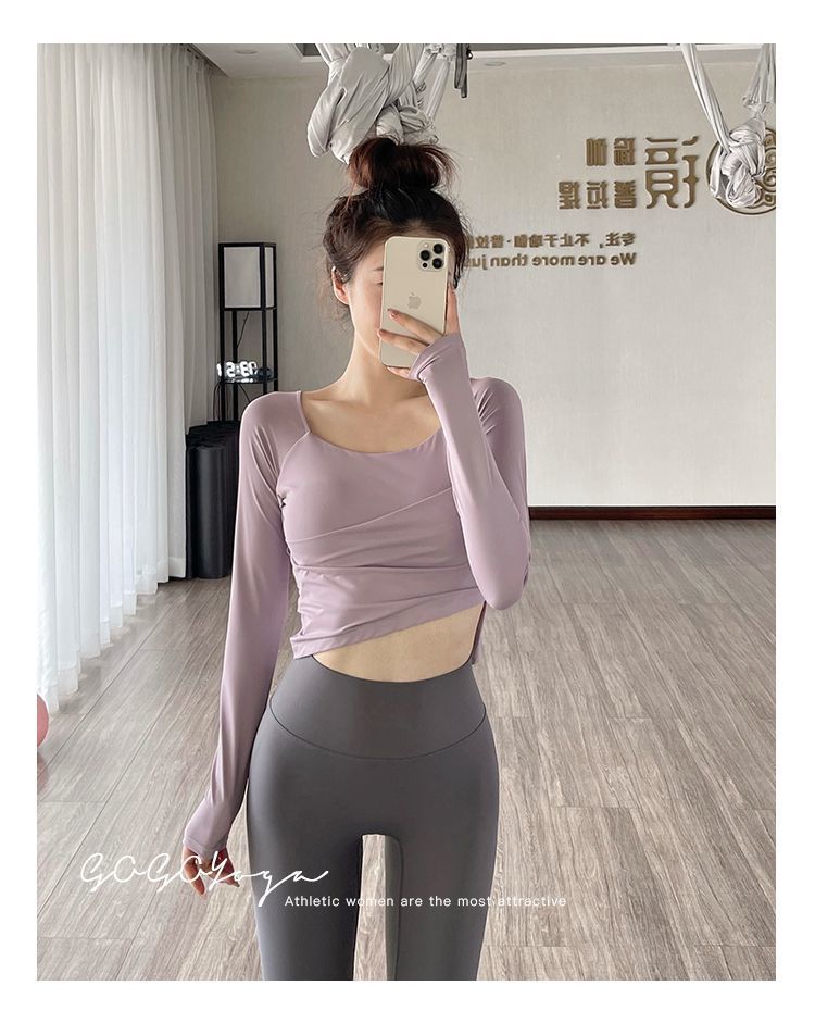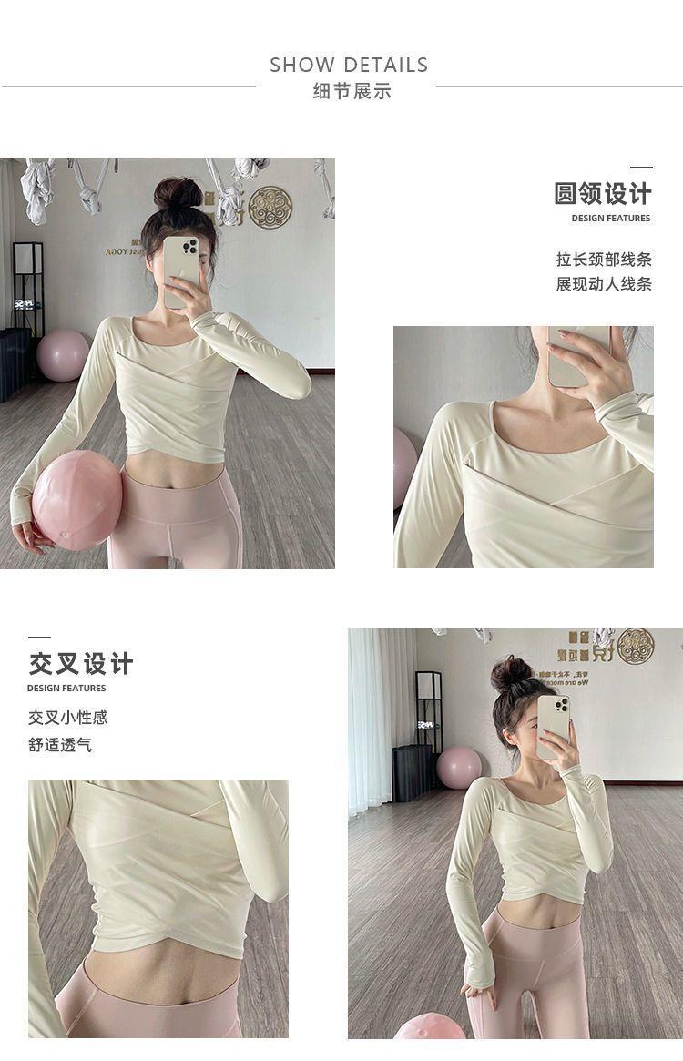 Nuevo estilo de ropa de yoga con traje de tapete para el pecho para mujer, ropa deportiva de verano de manga corta para correr, ropa de fitness de secado rápido, top de manga larga