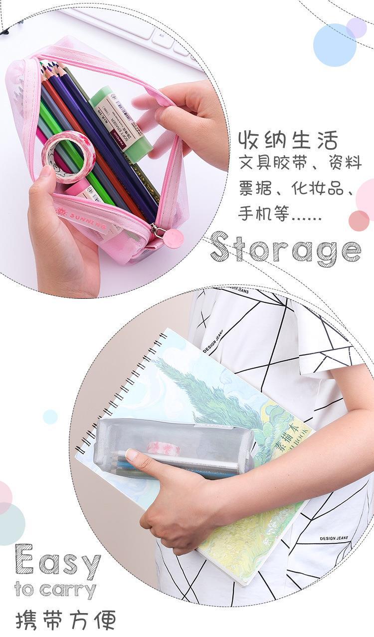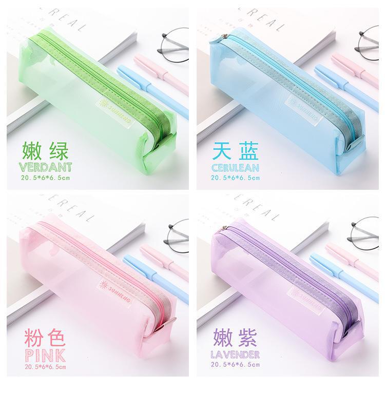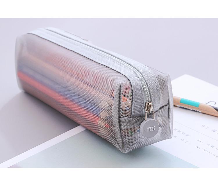 Estuche de malla transparente para lápices de primaria, estilo estéreo sencillo, gran capacidad, para exámenes.