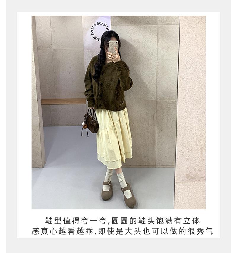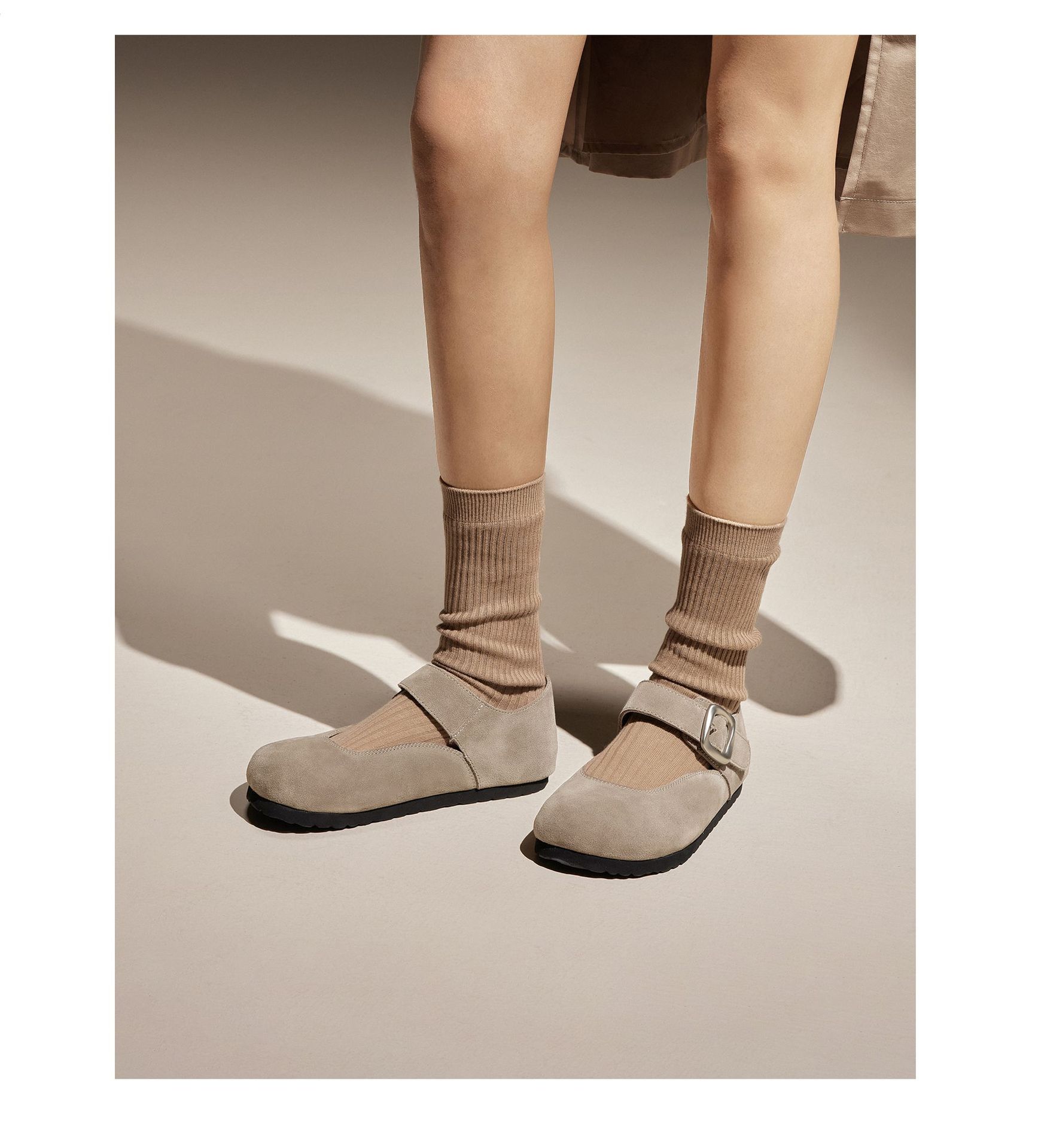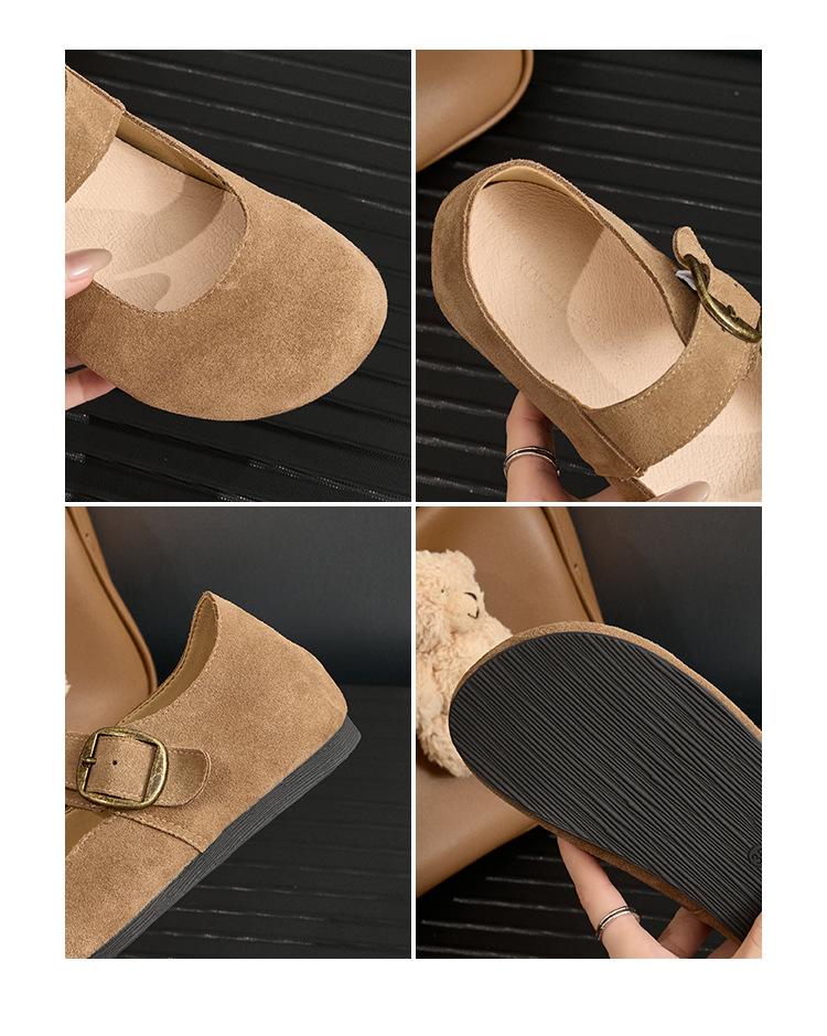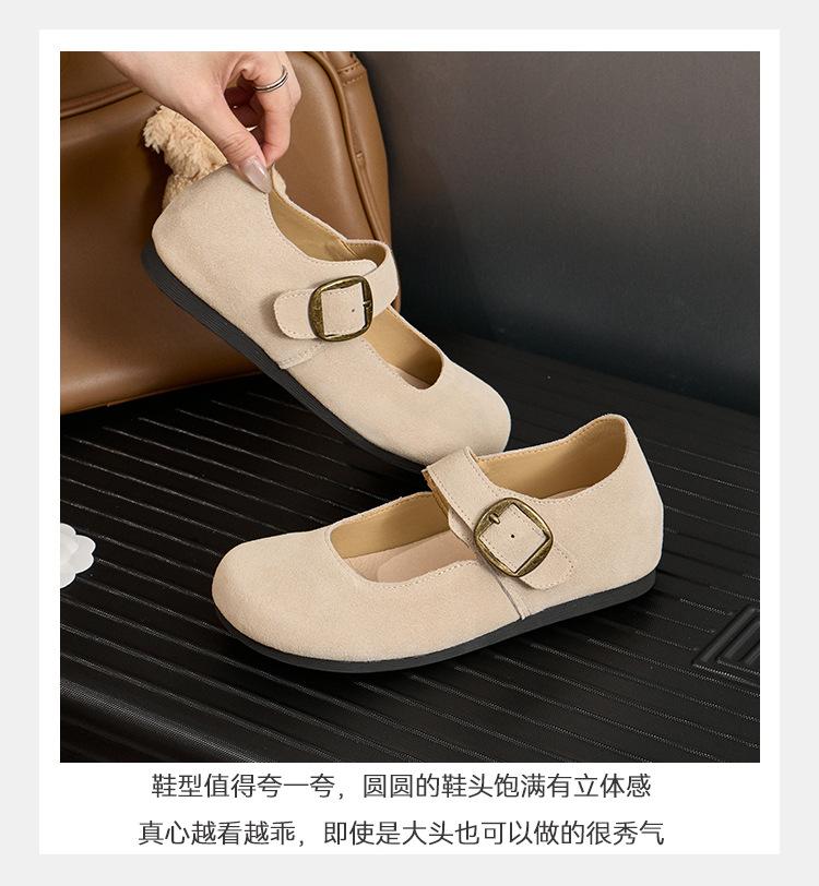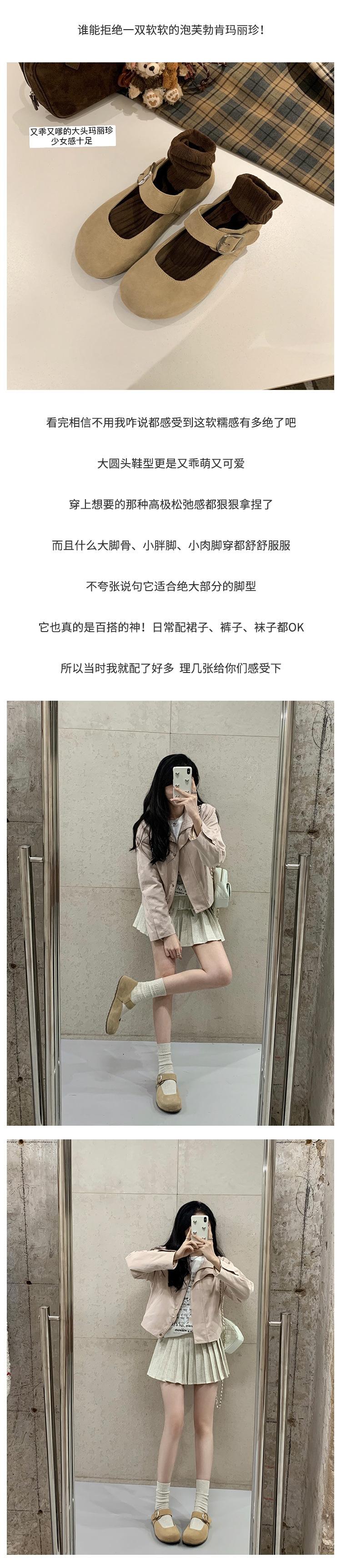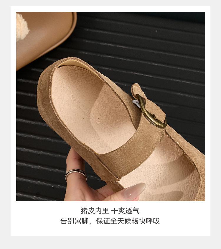 Zapatos Birkenau Terciopelo de Vaca Mary Jane Zapatos de Mujer Otoño 2024 Zapatos Doug Zapatos de Cabeza Grande Suela Gruesa Aumento de Altura Feos Meng Zapatos Individuales para Mujer