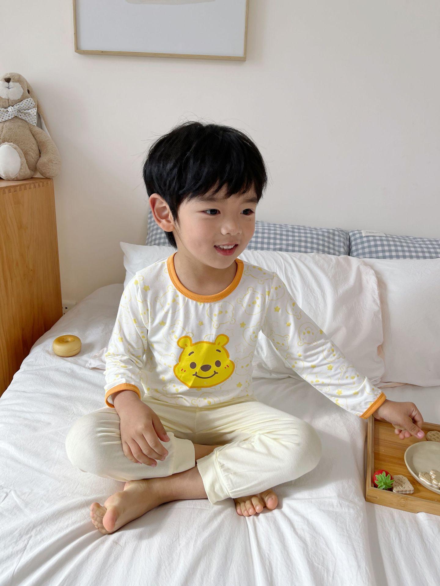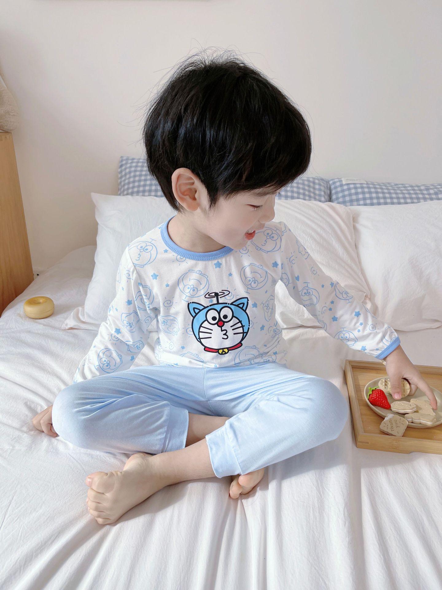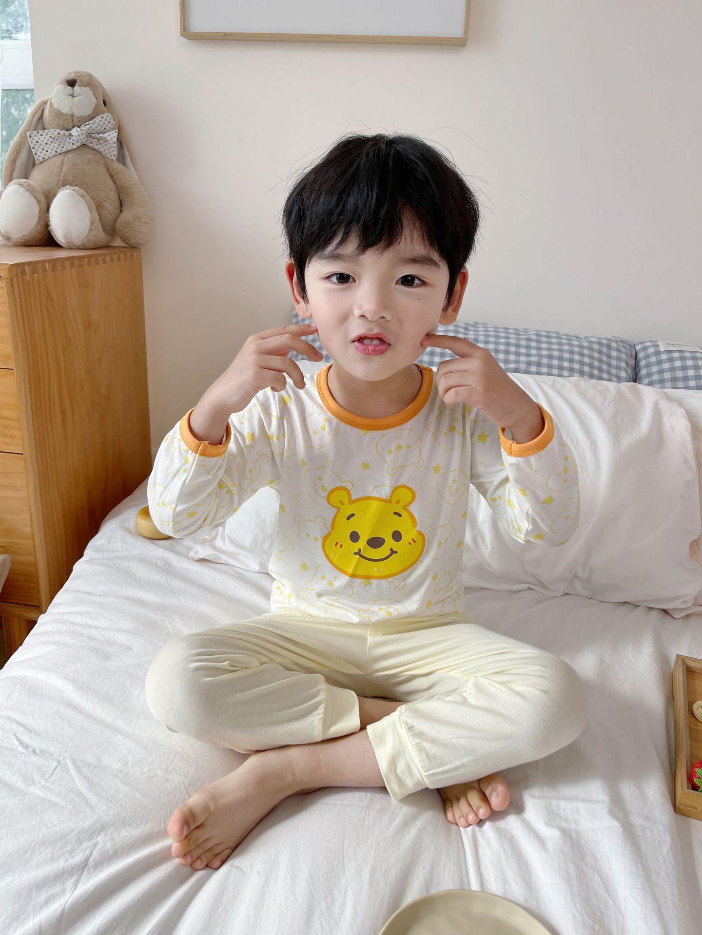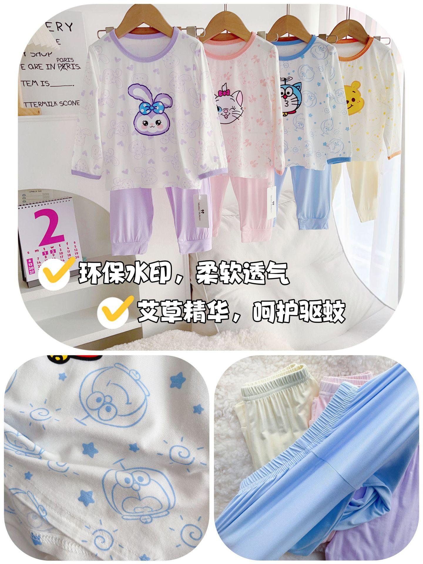 Ropa infantil 2023, nueva ropa de hogar, pijamas modales de primavera y otoño para niños [Wormwood essence], ropa de aire acondicionado de manga larga