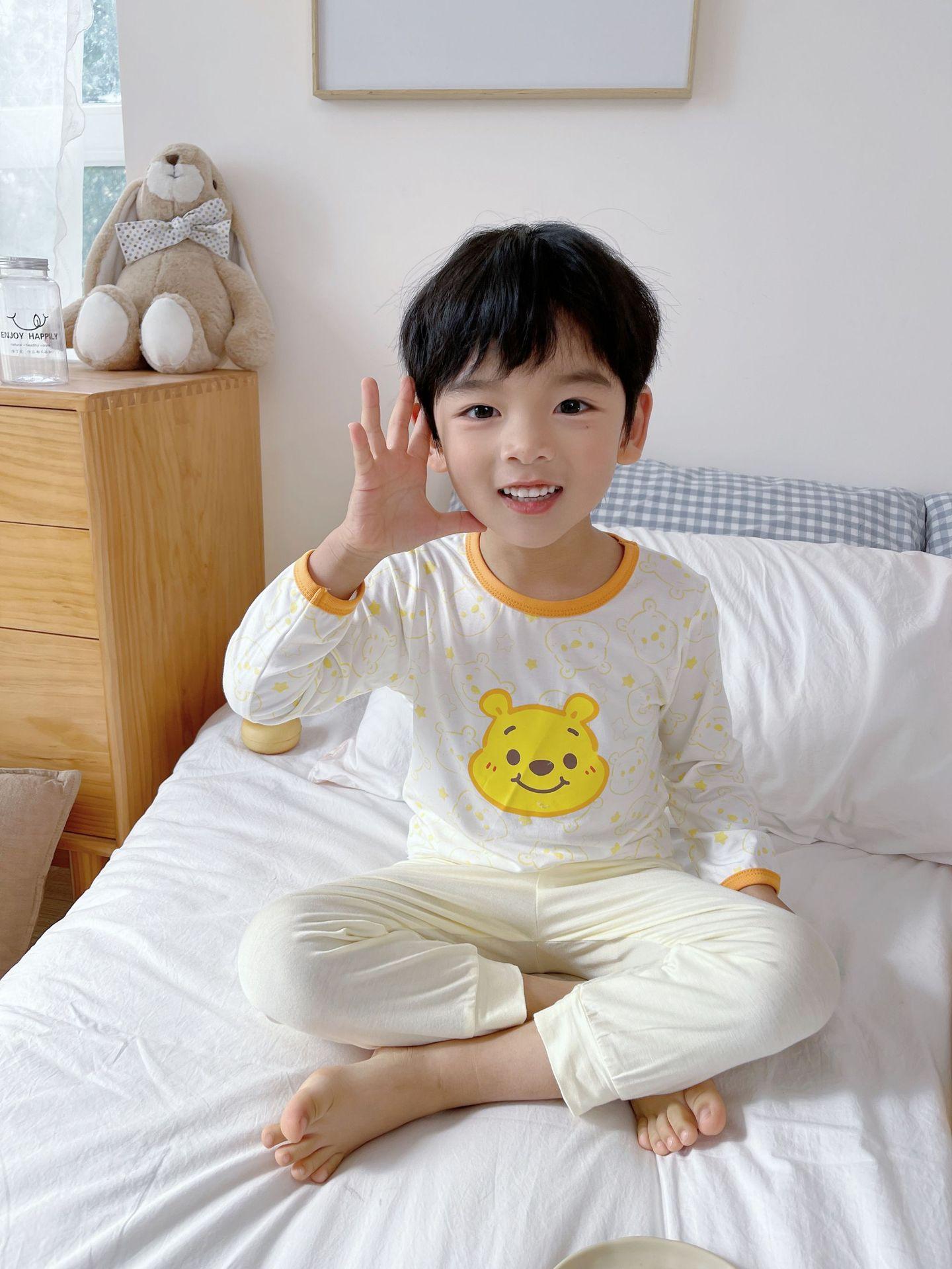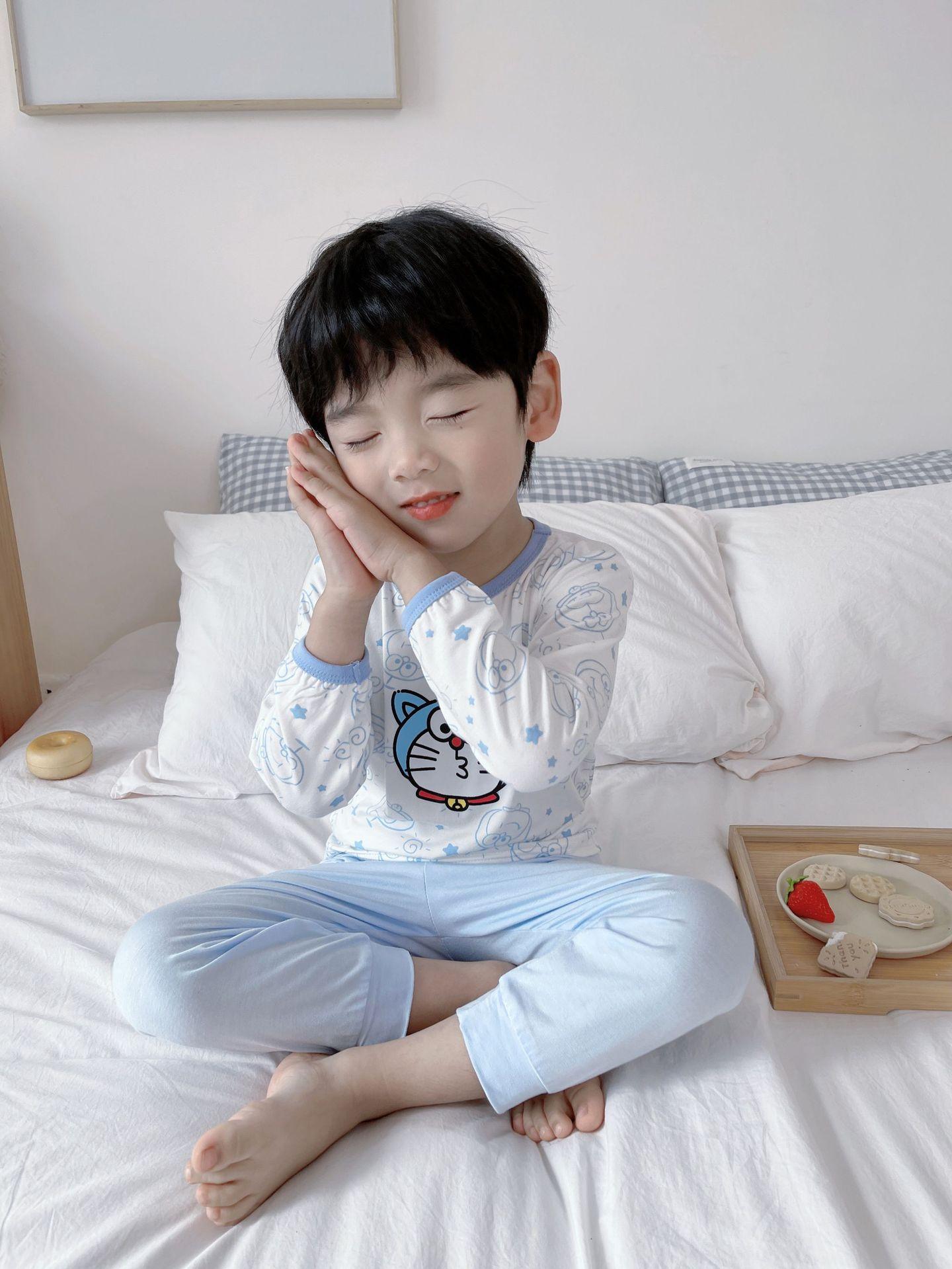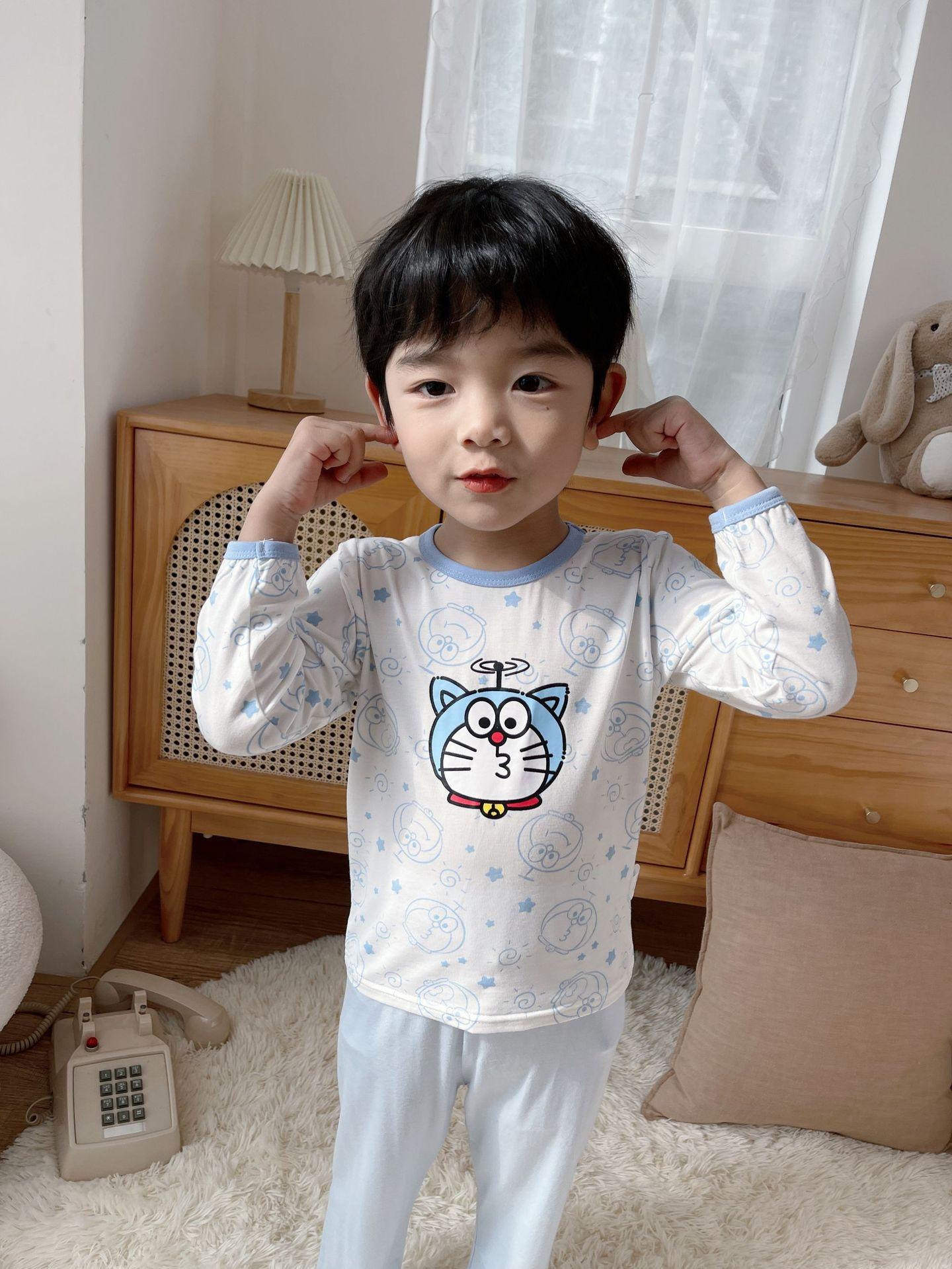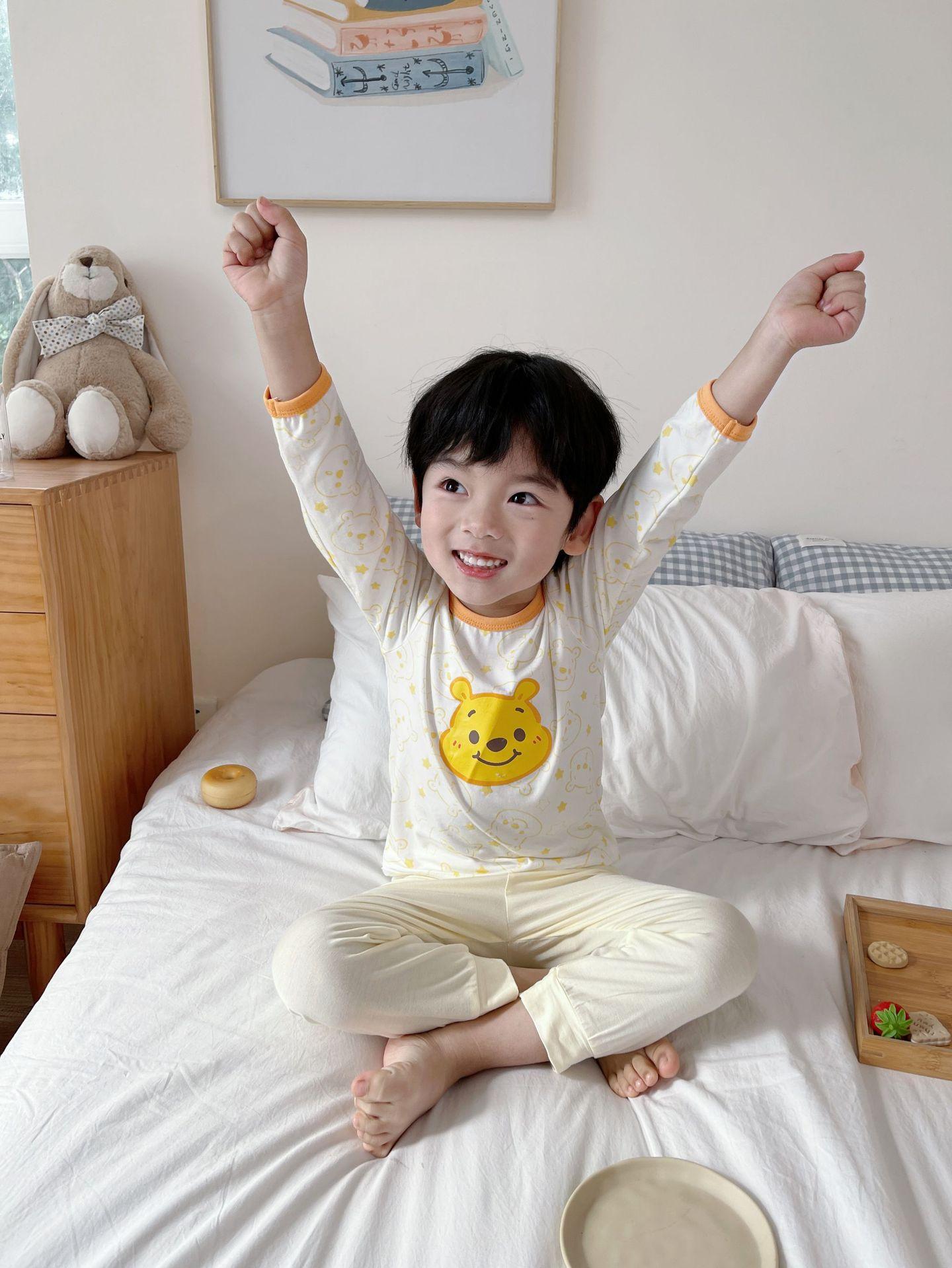 Ropa infantil 2023, nueva ropa de hogar, pijamas modales de primavera y otoño para niños [Wormwood essence], ropa de aire acondicionado de manga larga