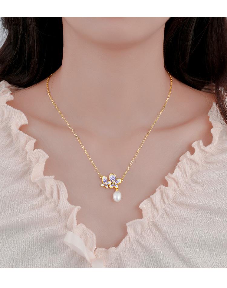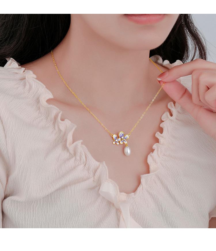 Nuevo Collar de Flor de Glicina China Diseño Nicho de Lujo Ligero Cadena Clavicular de Perlas para Regalo de Cumpleaños de Novia