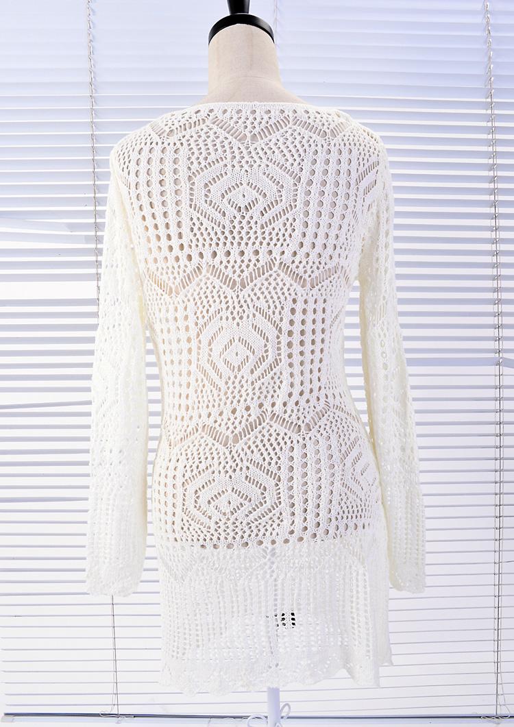Gran oferta, nueva camisa de encaje de algodón en capas, estilo manga acampanada, para playa, protección solar, traje de baño, chaqueta, cárdigan femenino