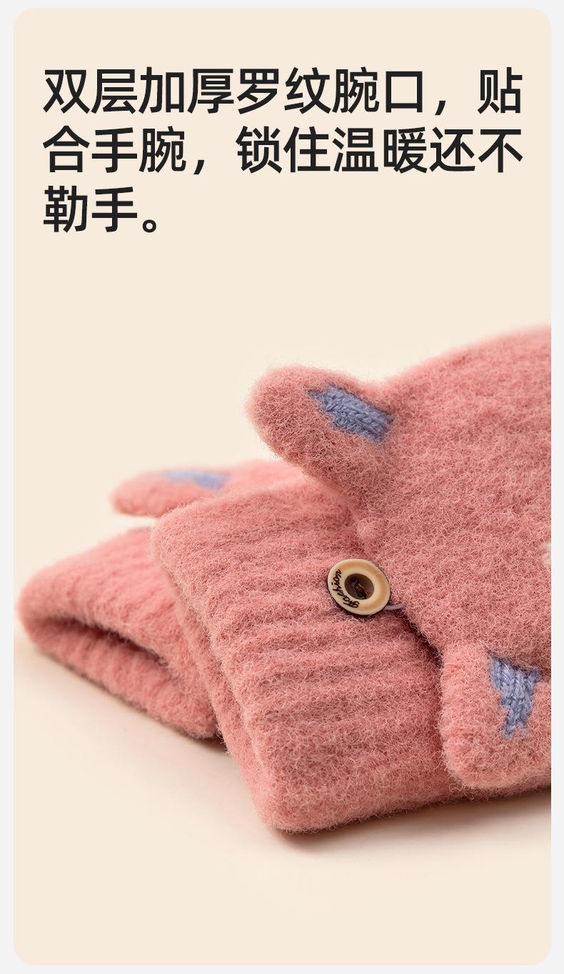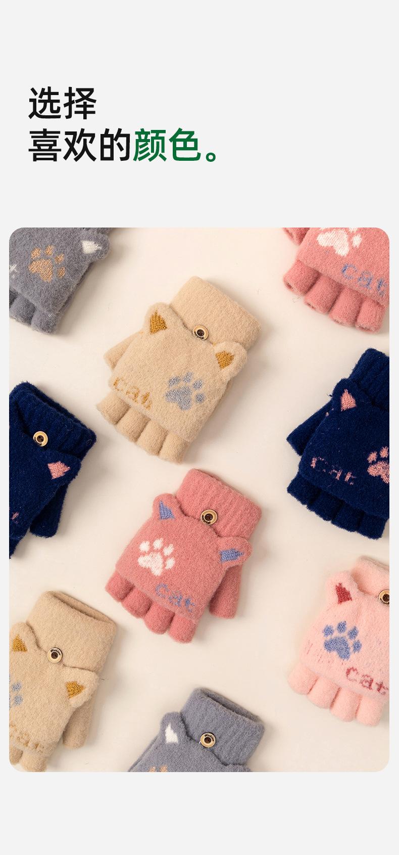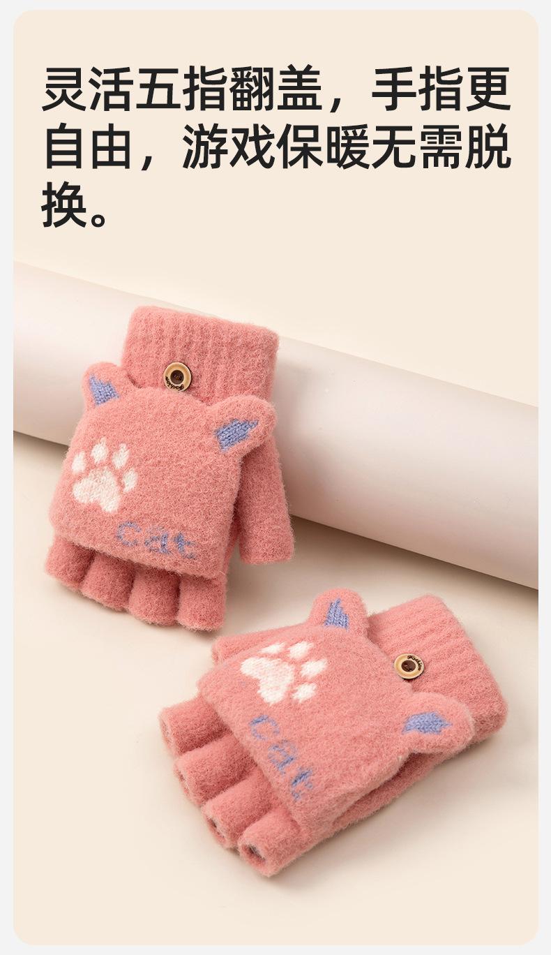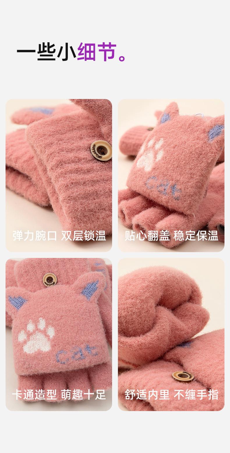 Guantes de invierno con medio dedo abatible, resistentes al frío, gruesos, bonitos, de estilo coreano, para estudiantes, tejidos, con dedos extra grandes, para pantalla táctil, cálidos para niños