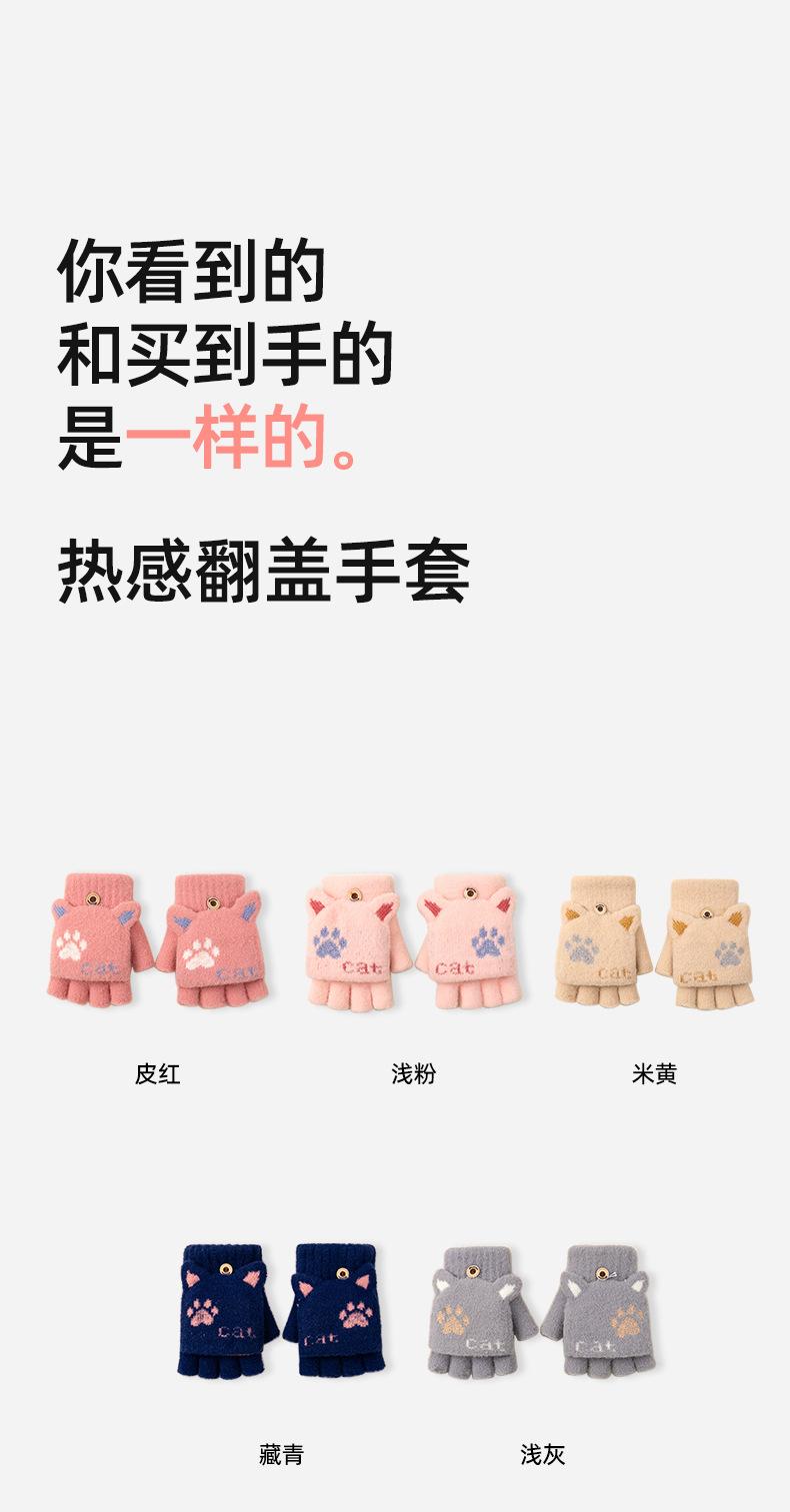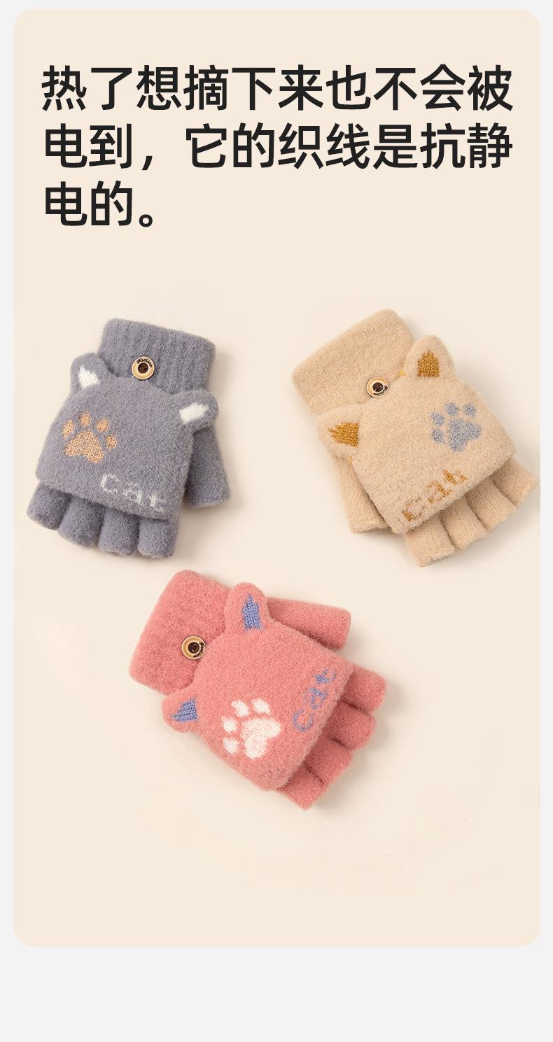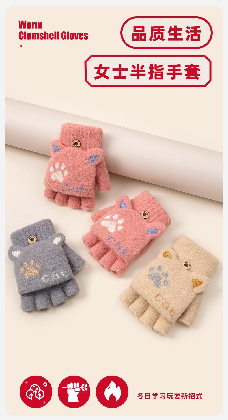 Guantes de invierno con medio dedo abatible, resistentes al frío, gruesos, bonitos, de estilo coreano, para estudiantes, tejidos, con dedos extra grandes, para pantalla táctil, cálidos para niños