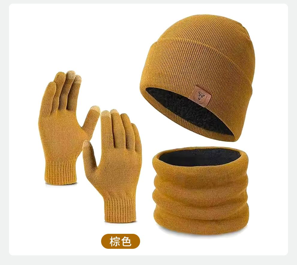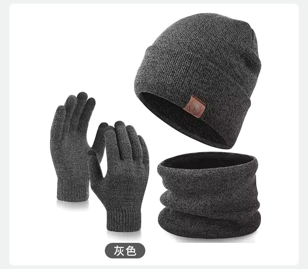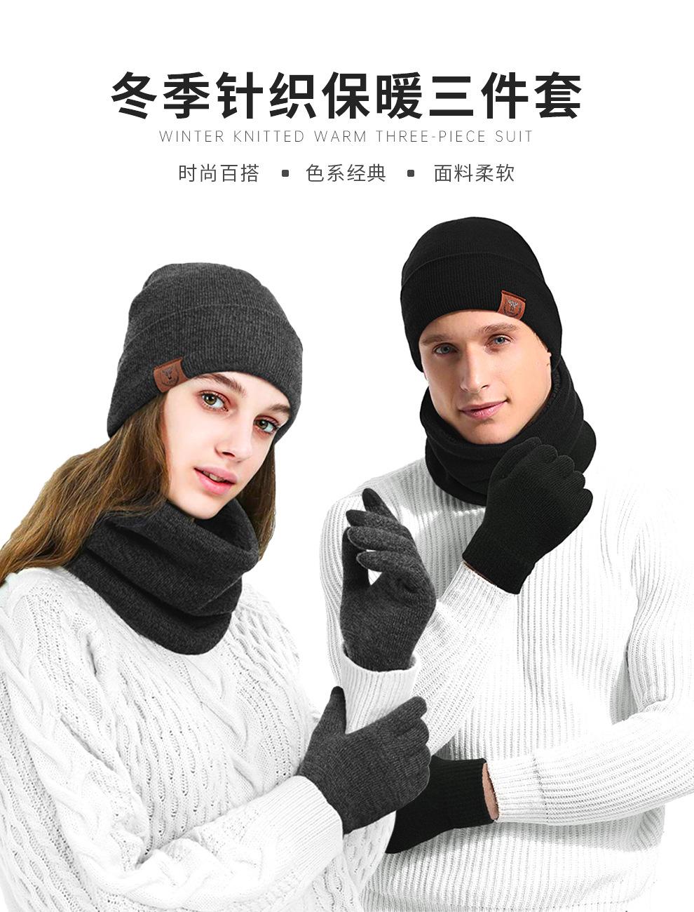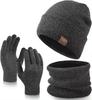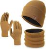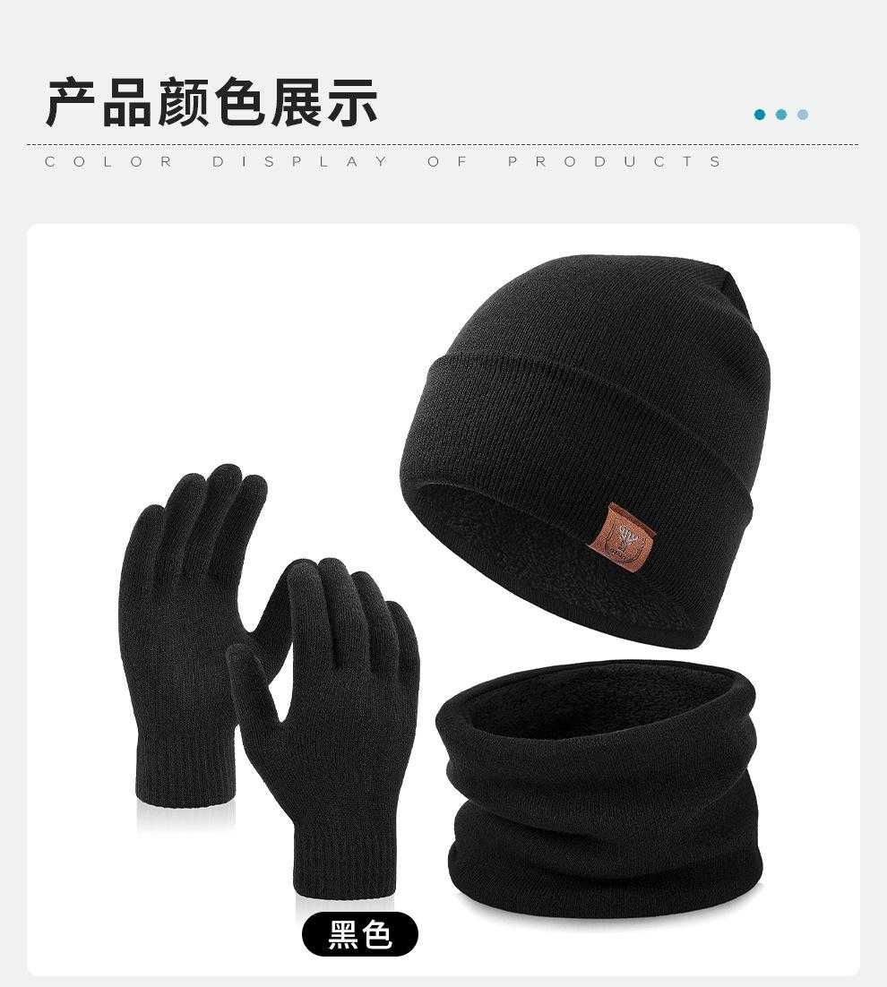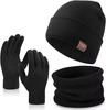 Conjunto de tres piezas de gorro, bufanda y guantes de punto con forro polar para hombre y mujer, jersey grueso y cálido, gorro de lana con protección para las orejas, traje de Halloween