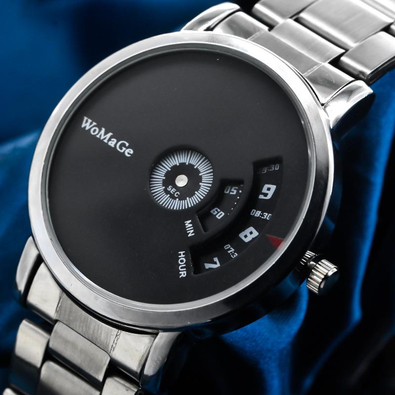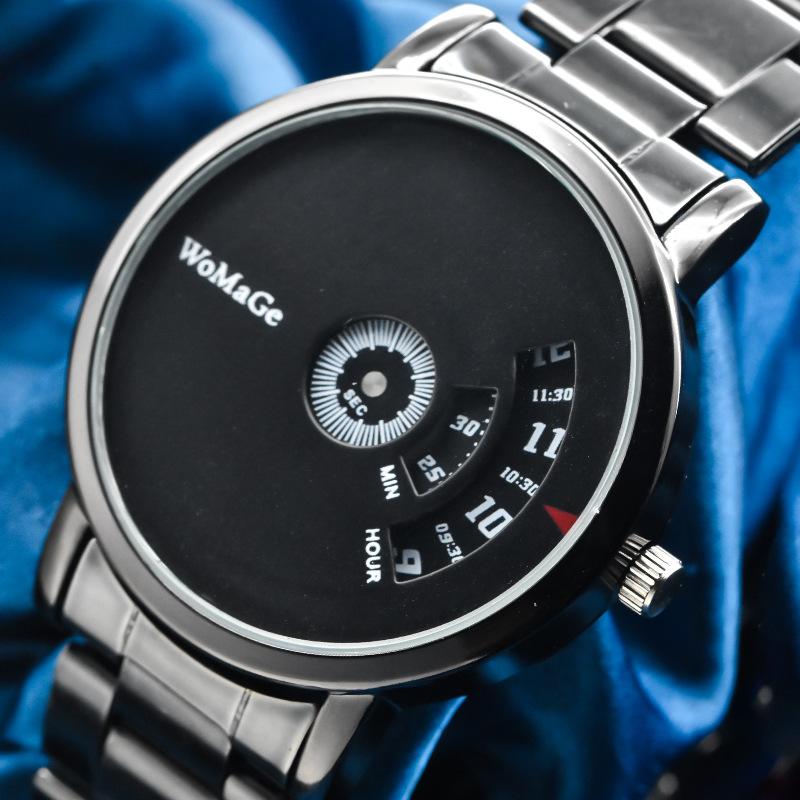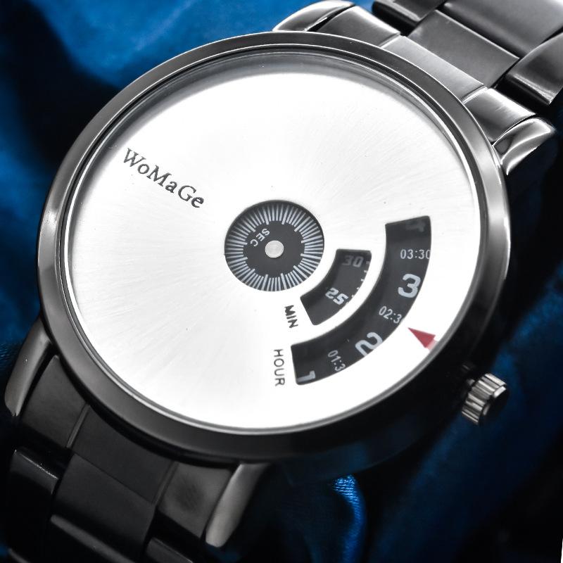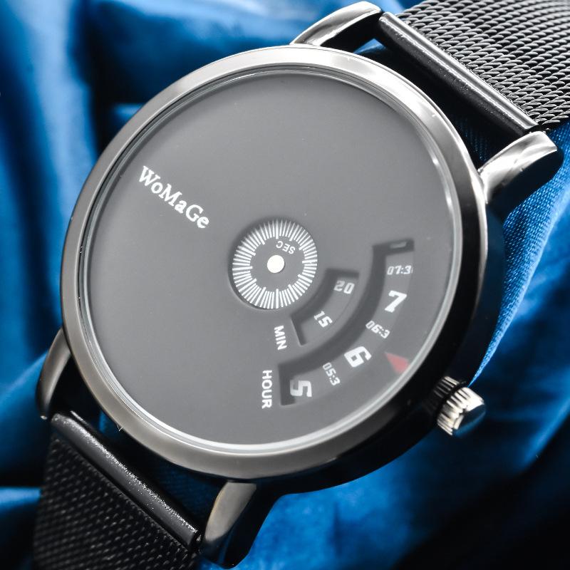 Reloj Unisex de Moda Elegante Estilo K con Dial de Tiempo y Espacio de Banda de Acero para Tocadiscos para Hombres y Mujeres Reloj Negro Reloj para Estudiantes Disco de Segundos Giratorio