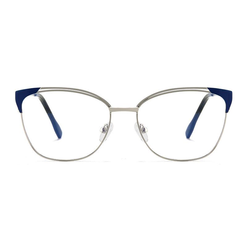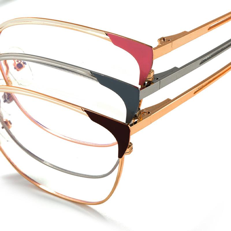 Nuevo negocio transfronterizo europeo y americano montura completa para cejas de montura metálica patillas de resorte bicolor retro montura de gafas anti-luz azul