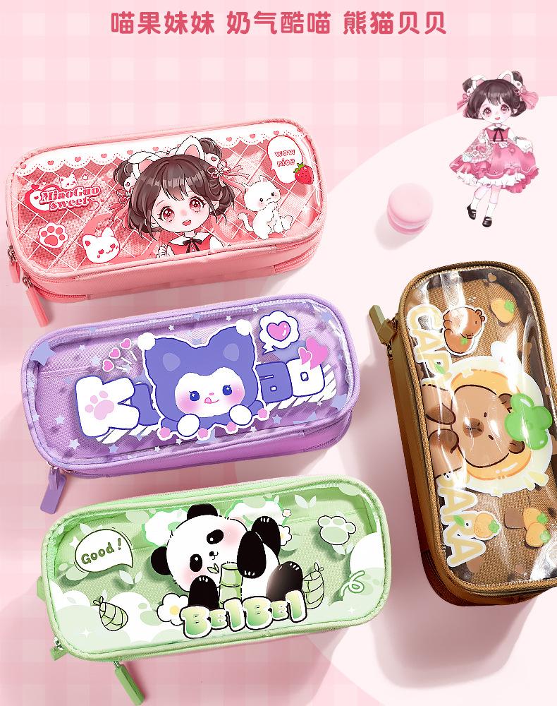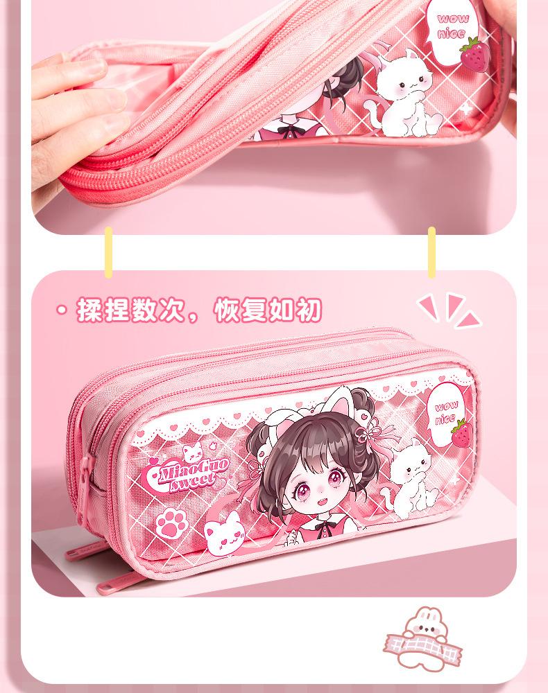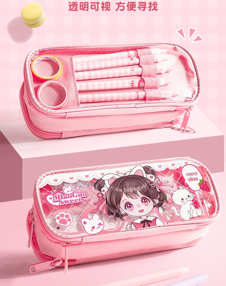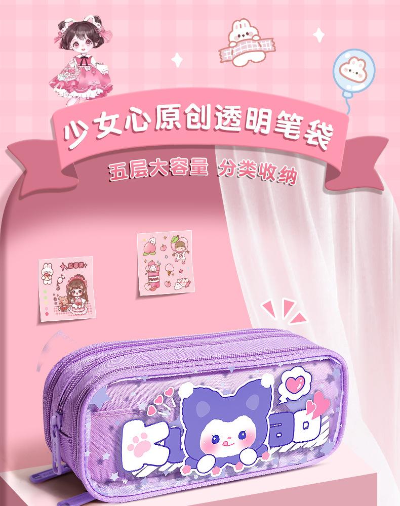 Estuche para lápices con bonito diseño de dibujos animados, transparente, de gran capacidad, para niños y niñas, para estudiantes de primaria, estuche para lápices, almacenamiento multicapa.