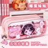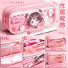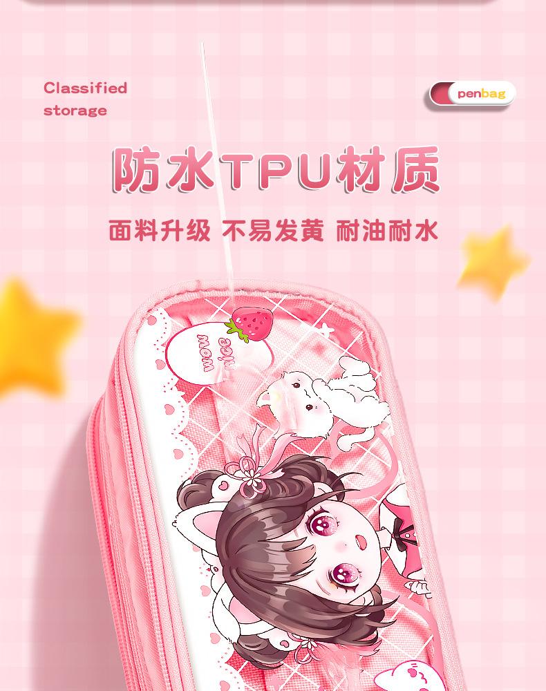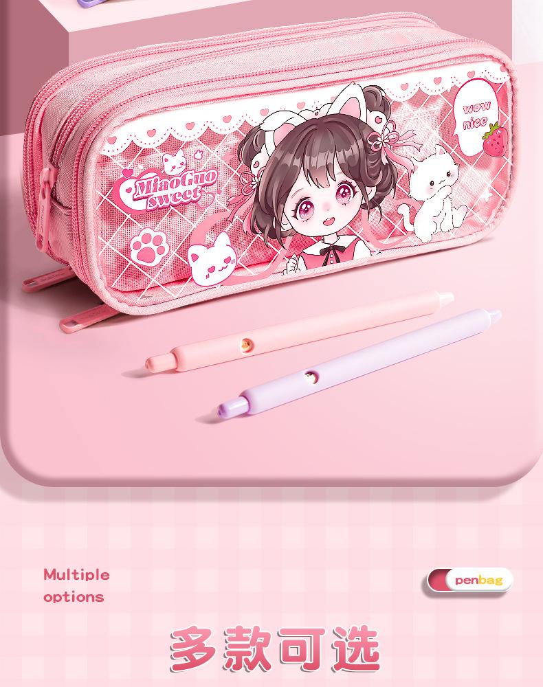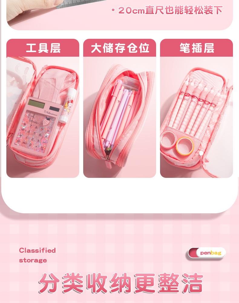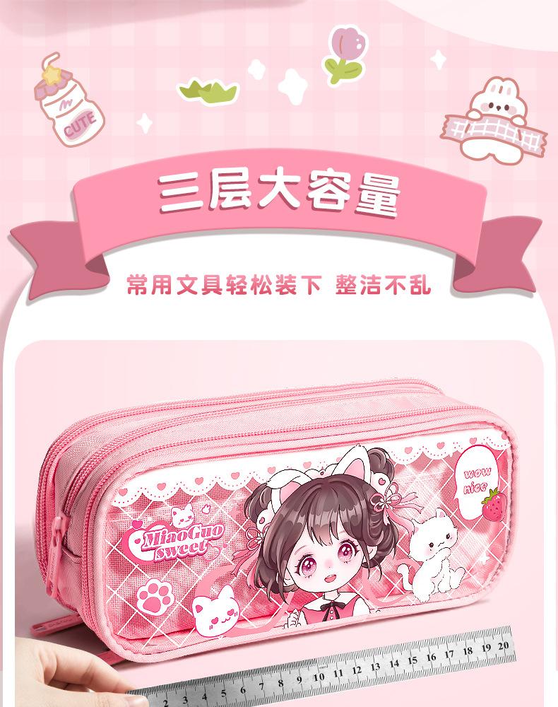 Estuche para lápices con bonito diseño de dibujos animados, transparente, de gran capacidad, para niños y niñas, para estudiantes de primaria, estuche para lápices, almacenamiento multicapa.