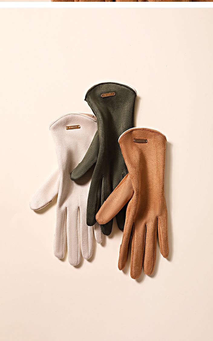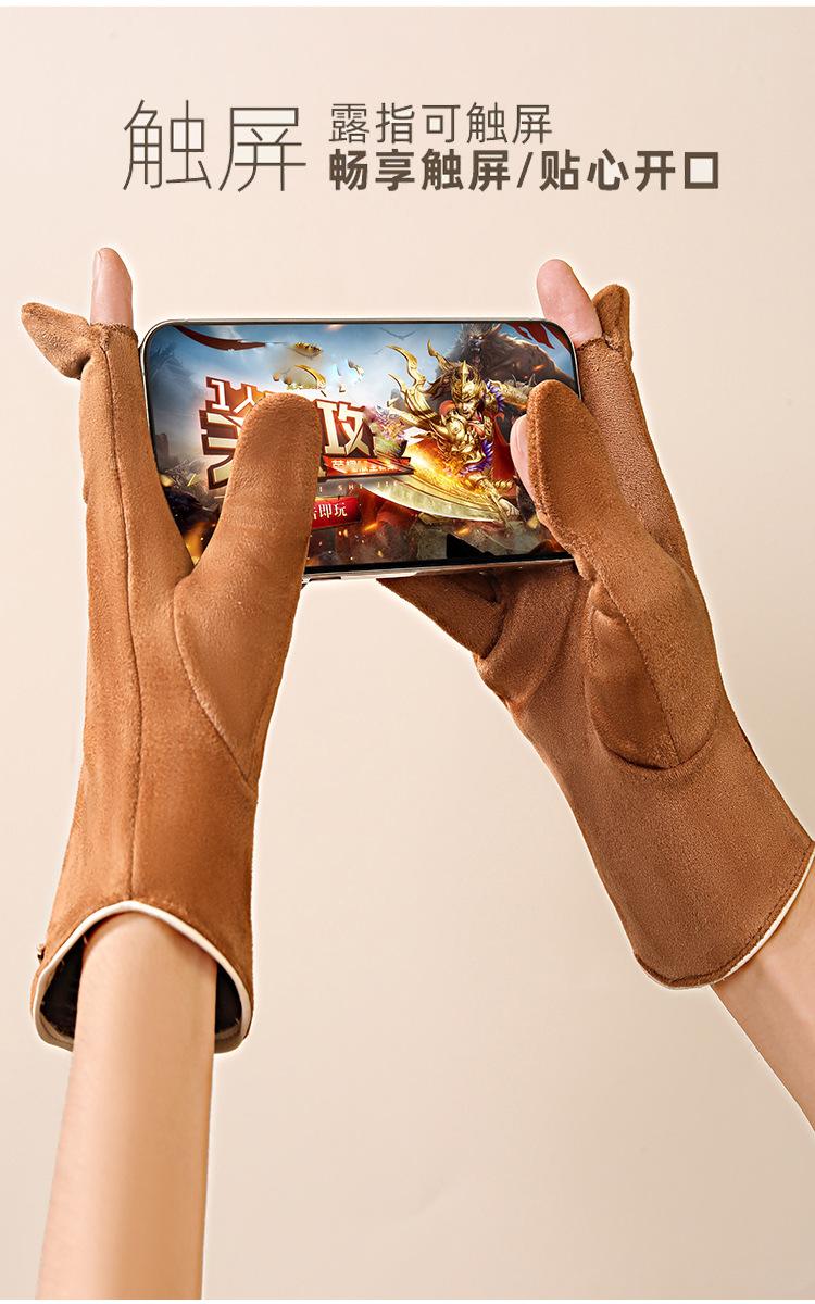 Guantes de gamuza de invierno para mujer, bonitos, resistentes al viento, para conducir, otoño e invierno, de terciopelo, cálidos, para ciclismo, con dedos abiertos, pantalla táctil, para exteriores