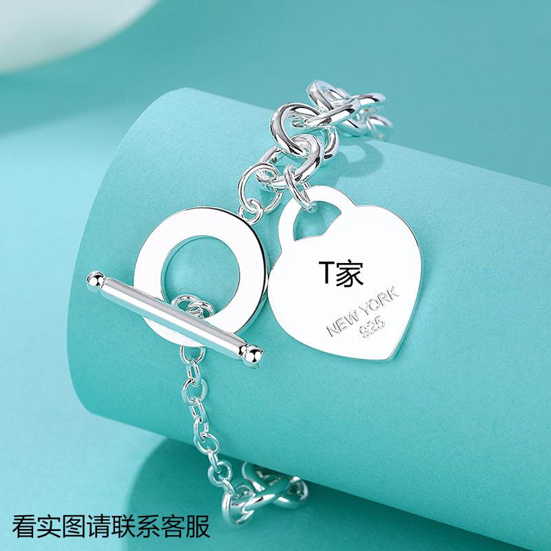 Collar de amor T Home, pulsera de amor, cadena de clavícula para mujer, pulsera en forma de corazón, colgante de marca redonda de moda, fábrica de cabello liso