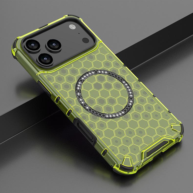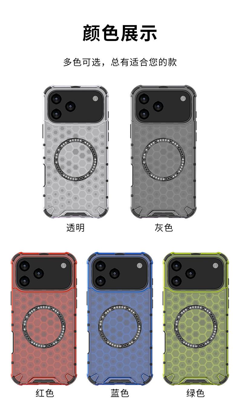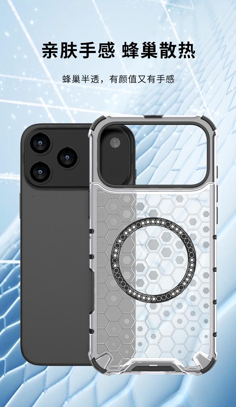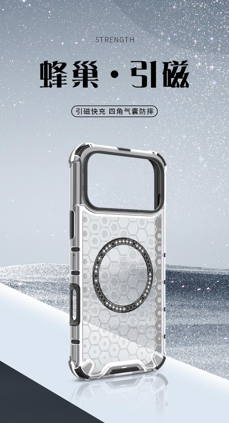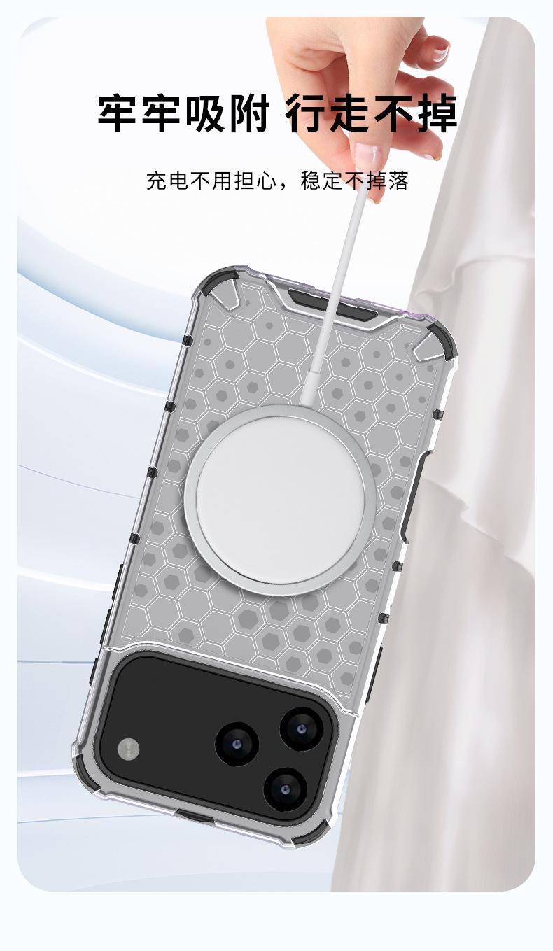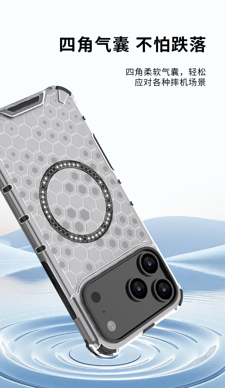 Adecuado para Iphone17Promax Carcasa Magnética de Panal para Teléfono Apple 16Pro Airbag 15 Anticaída 14 Cubierta Protectora