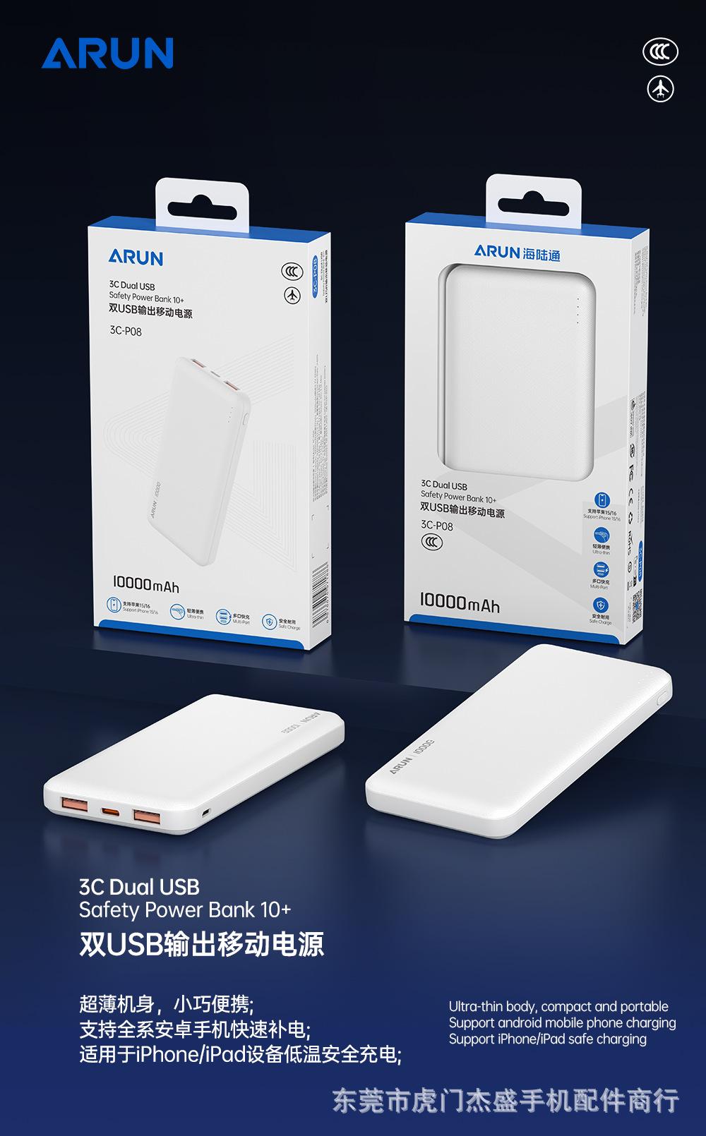 Hailu Tong 3C-P08 Banco de Energía Certificado CCC 10000 mAh Compacto Doble Salida USB 2.1A Carga Rápida