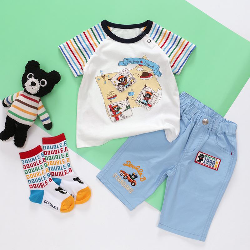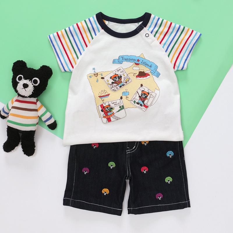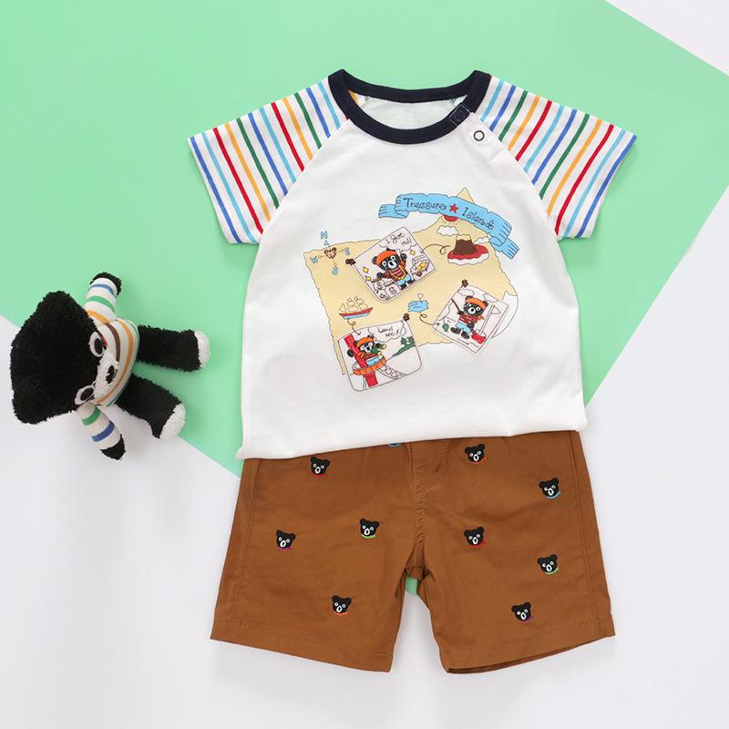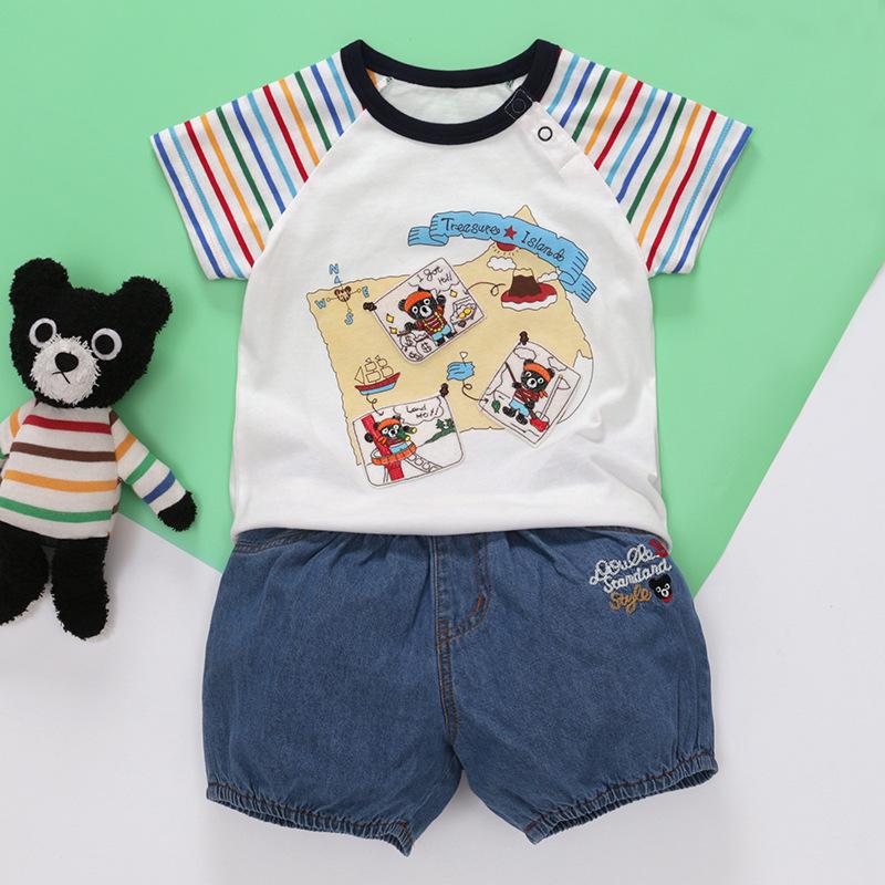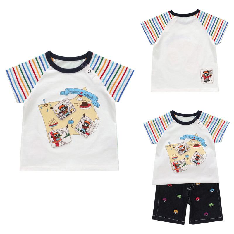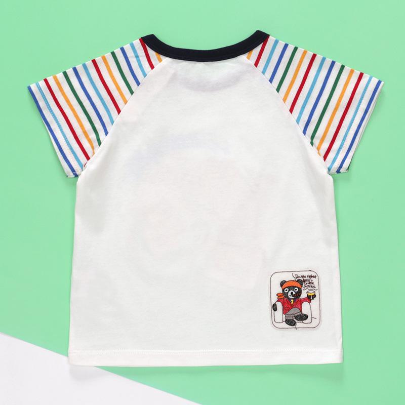 Nueva camiseta de verano de manga corta con estampado de oso de dibujos animados para niños y niñas