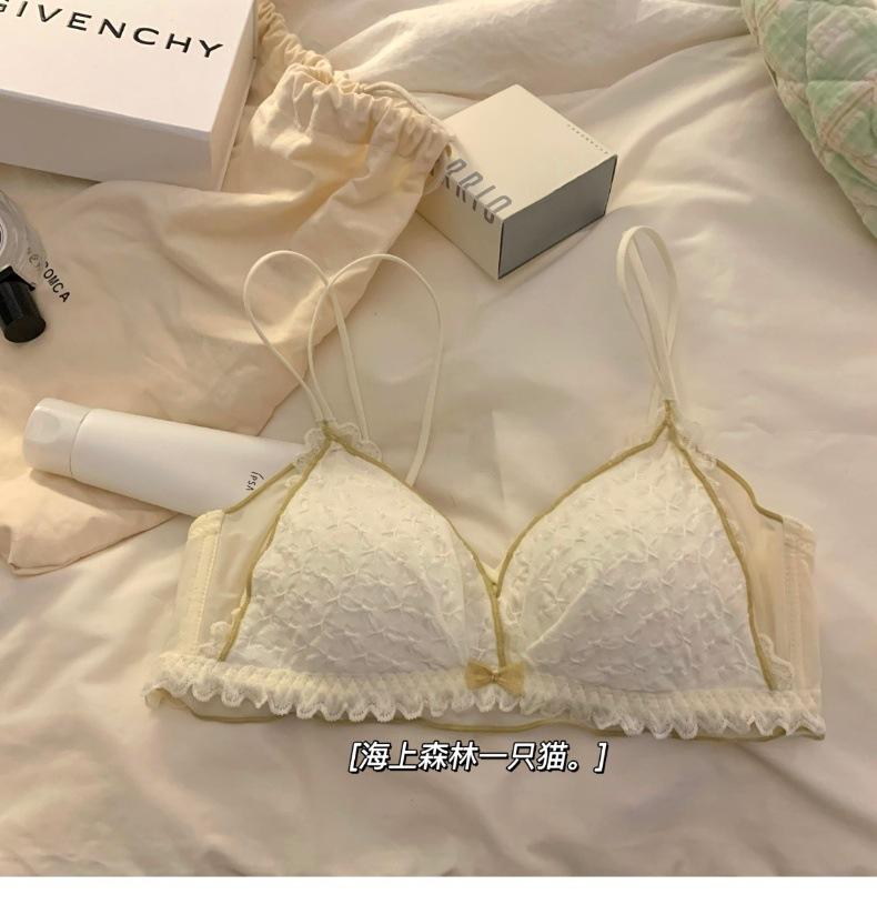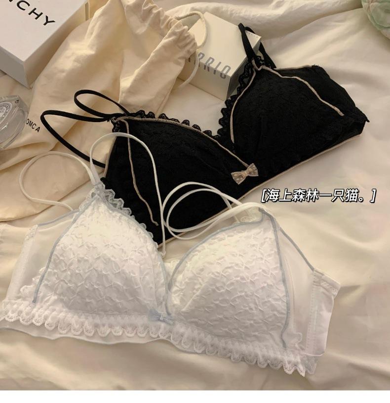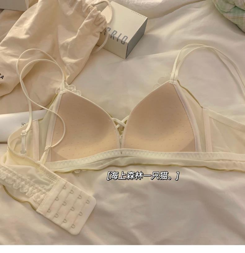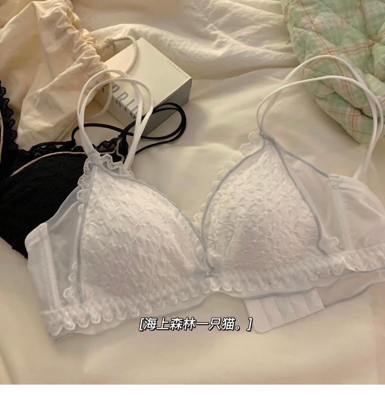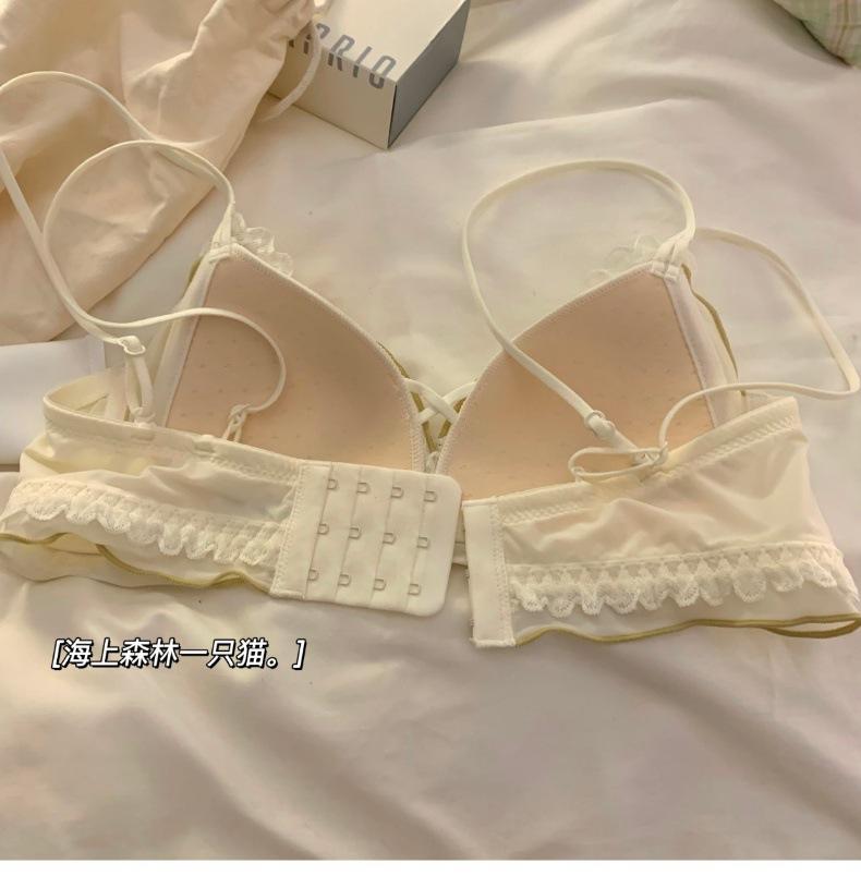 Ropa interior de espalda de belleza para mujer, pecho pequeño, push up, inalámbrico, ajustable, de encaje japonés, sujetador blanco fino para niña