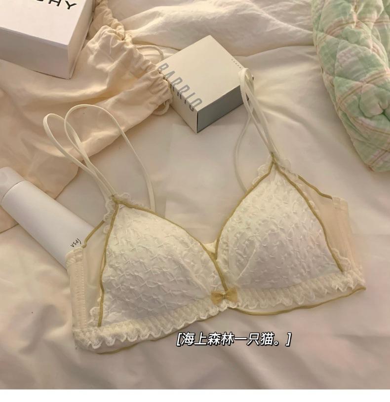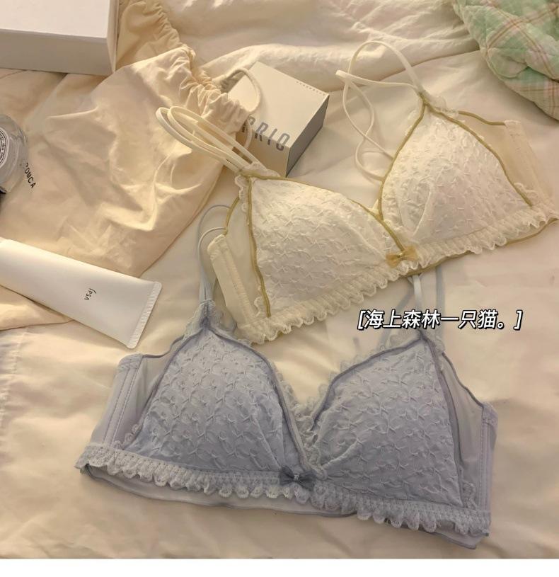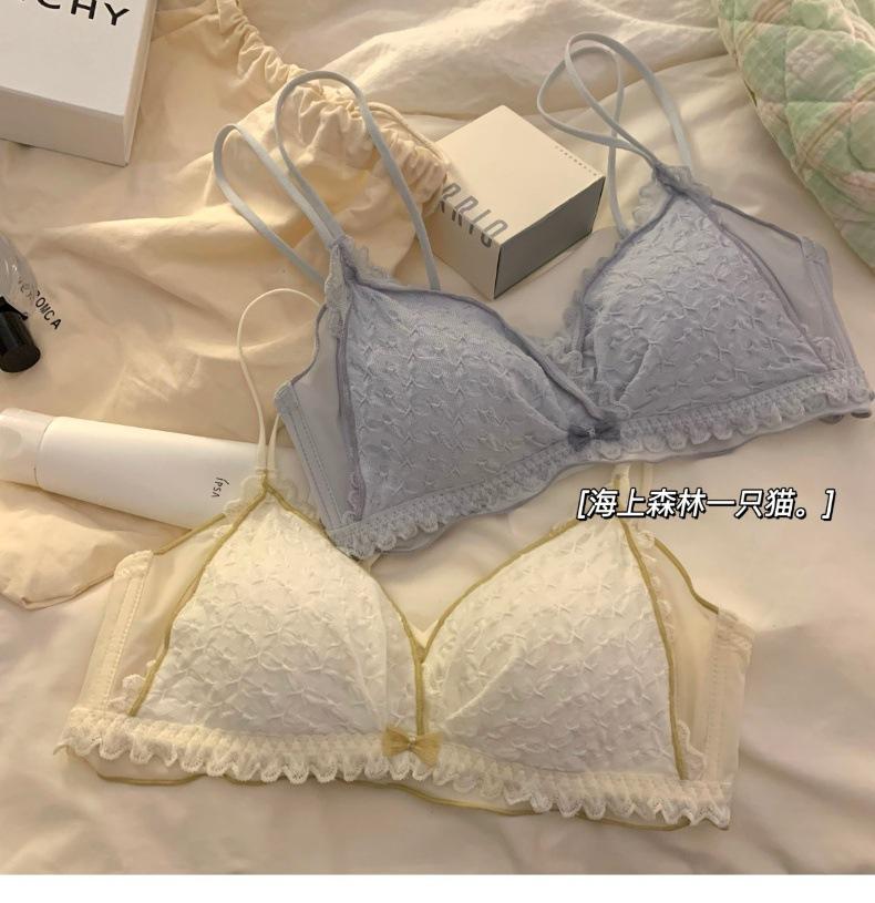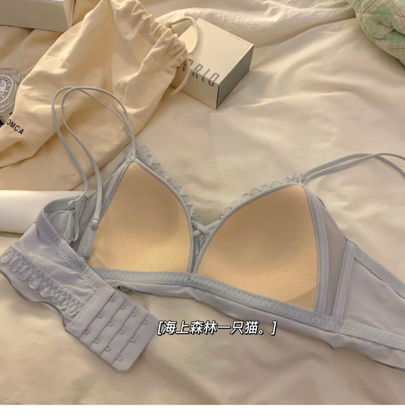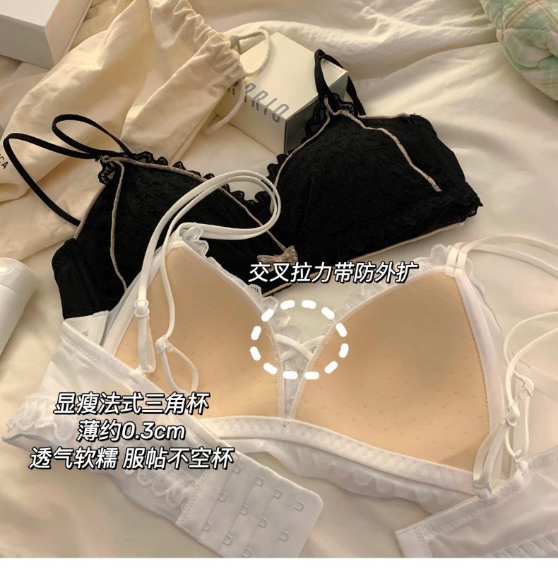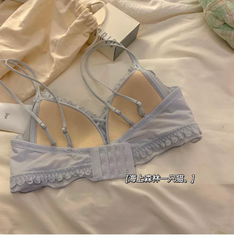 Ropa interior de espalda de belleza para mujer, pecho pequeño, push up, inalámbrico, ajustable, de encaje japonés, sujetador blanco fino para niña