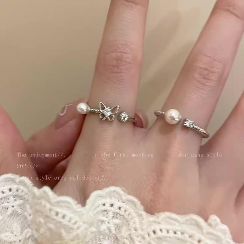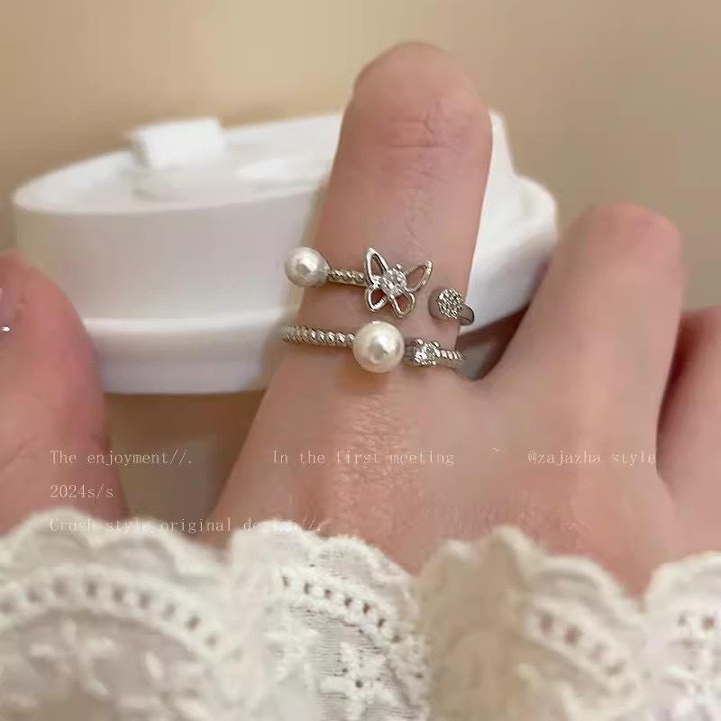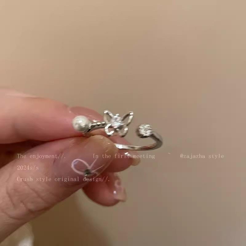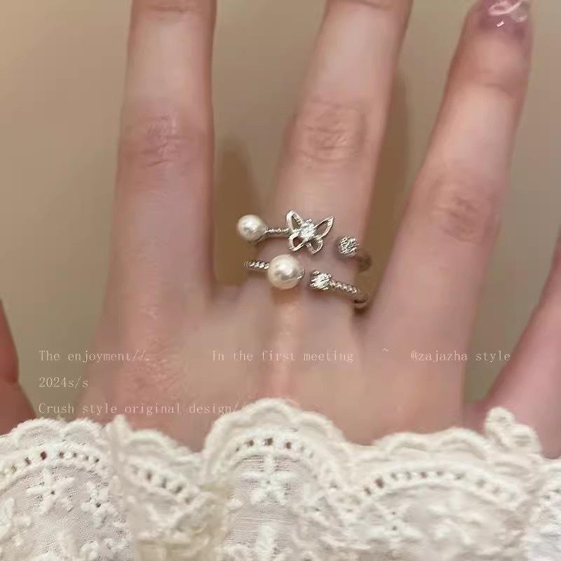 Anillo abierto de mariposa, perla y circón para niñas, de verano, personalizado, combinable, ligero, de lujo, nuevo anillo 2024