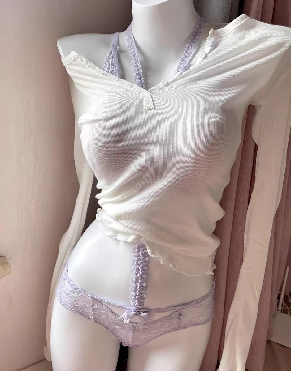 Ropa interior halter desmontable sexy para mujer, calzones de tentación de deseo puro, encaje de talle bajo, media vaina, ropa interior sexy hueca