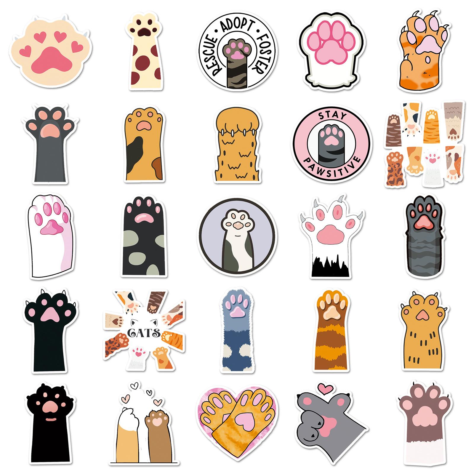 50 pegatinas de grafiti con forma de garra de gato, personalizadas, con dibujos animados de gatos, para decorar cuadernos, maletas y cualquier otro objeto impermeable.