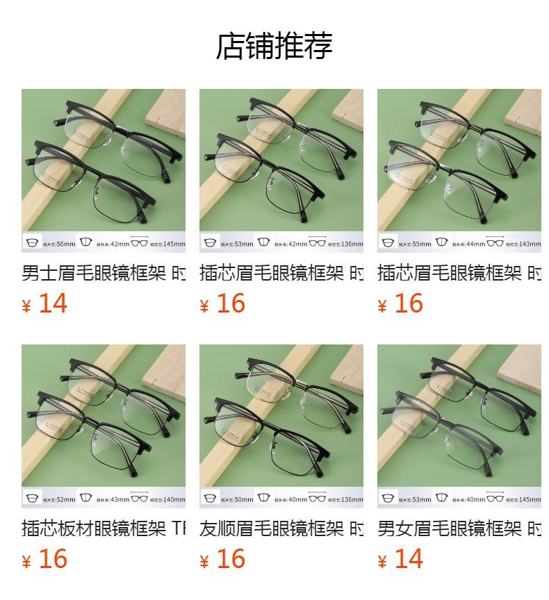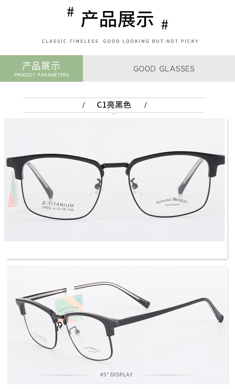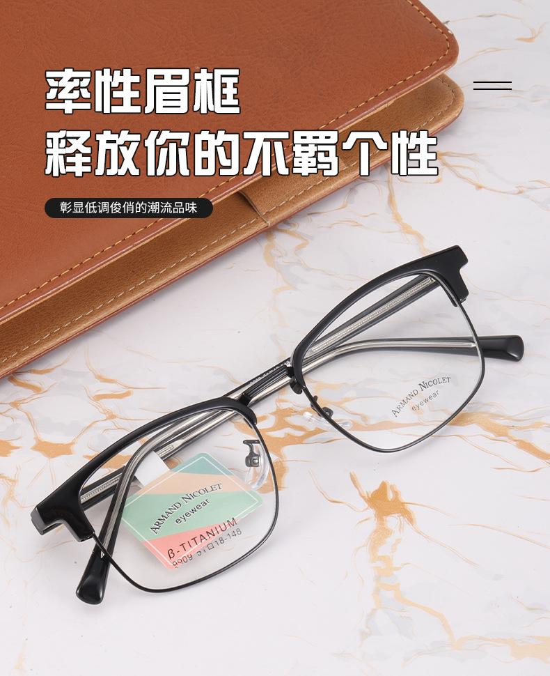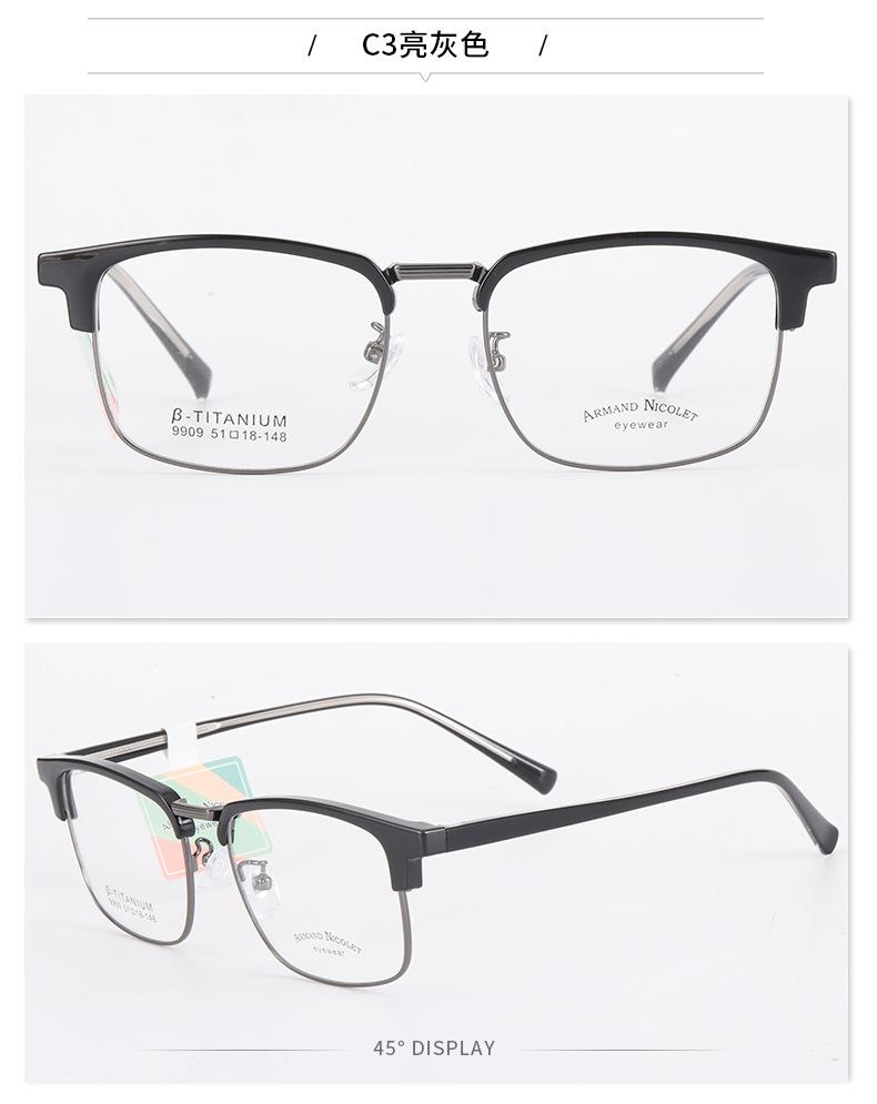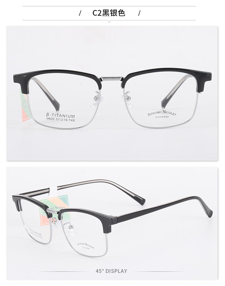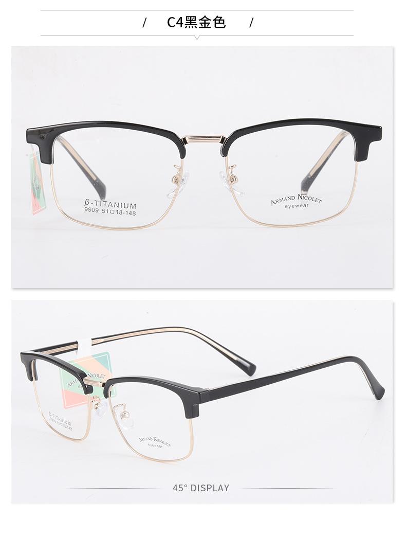Montura de gafas para cejas Youshun, moda de fábrica Danyang 9909, montura de línea de cejas con placa, gafas retro de cara pequeña de moda